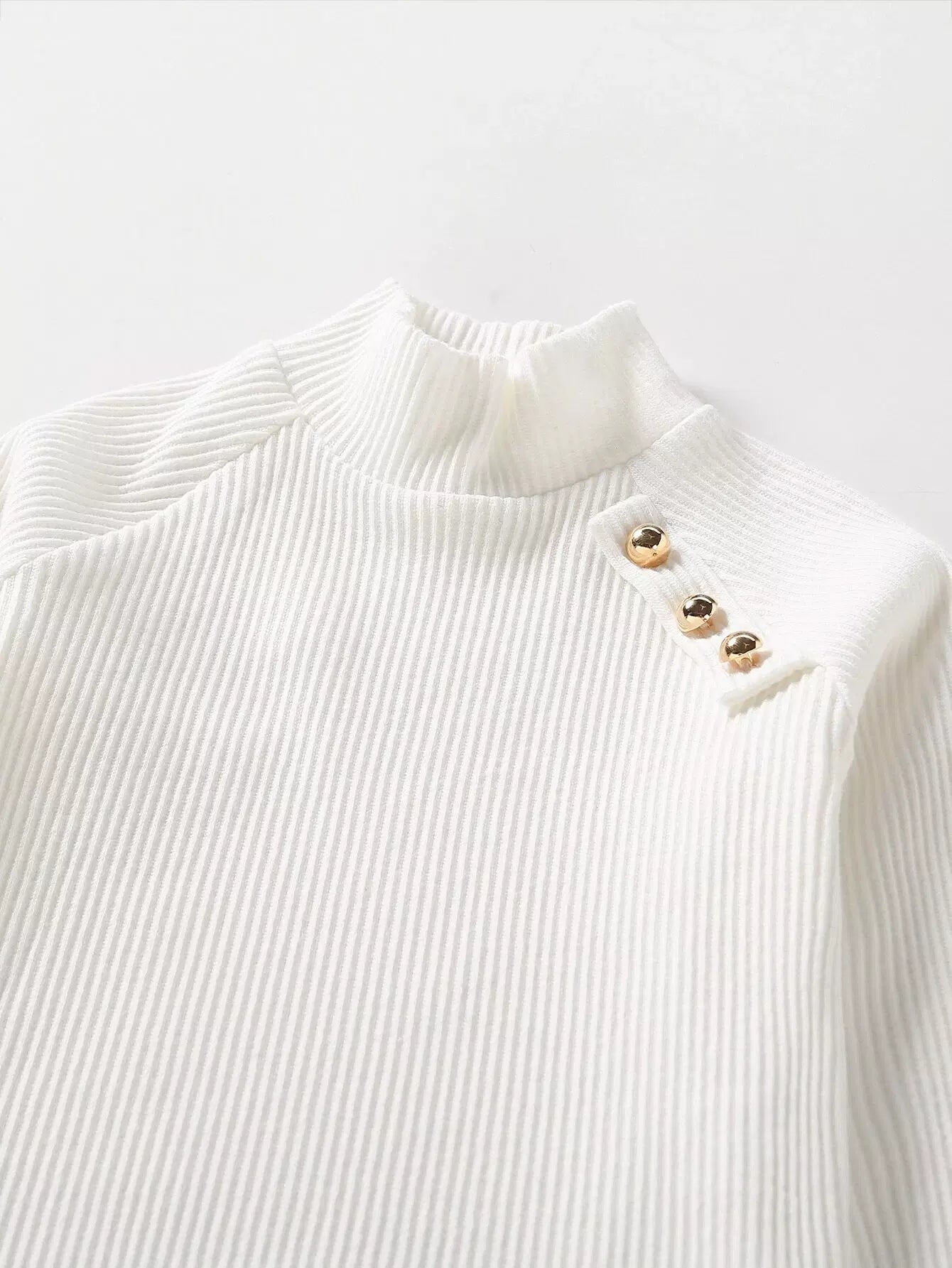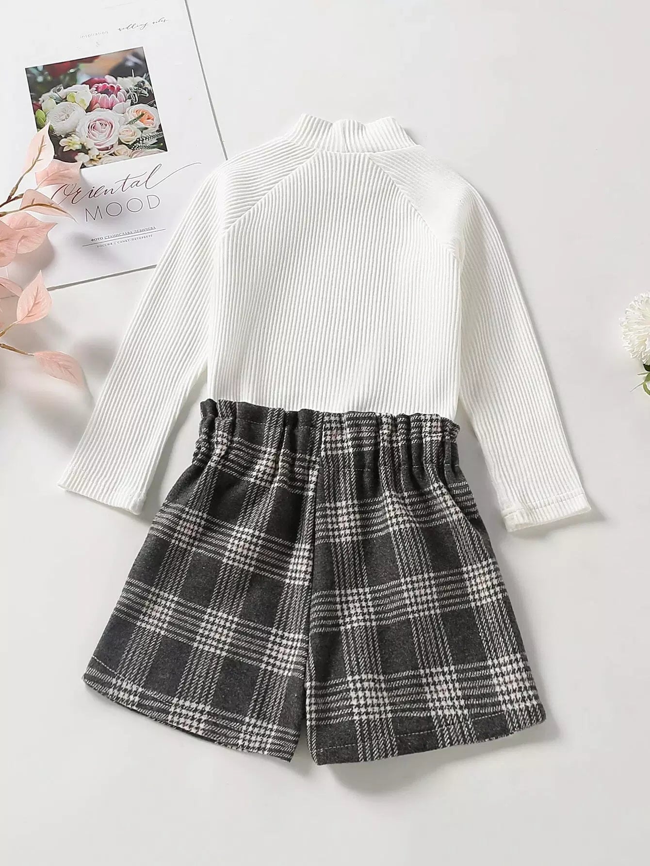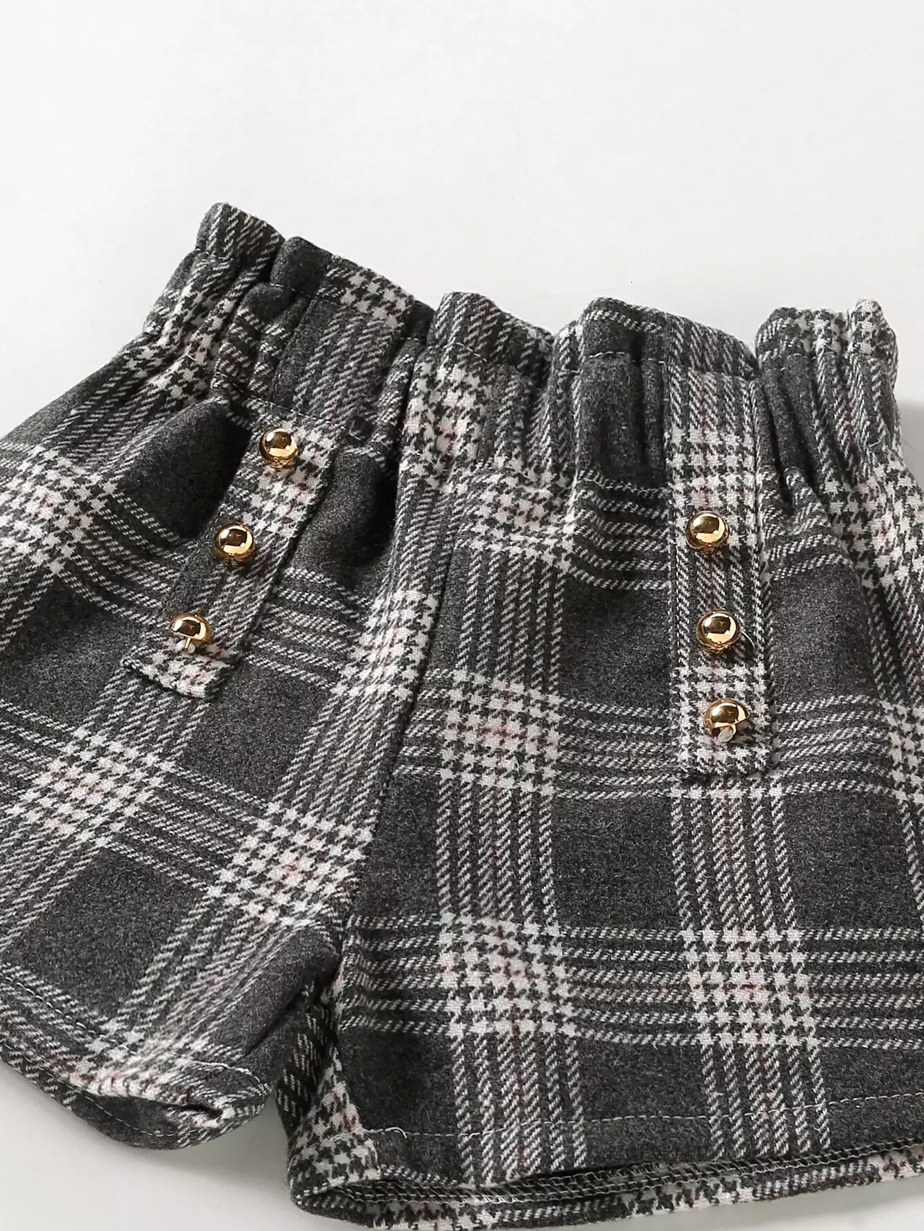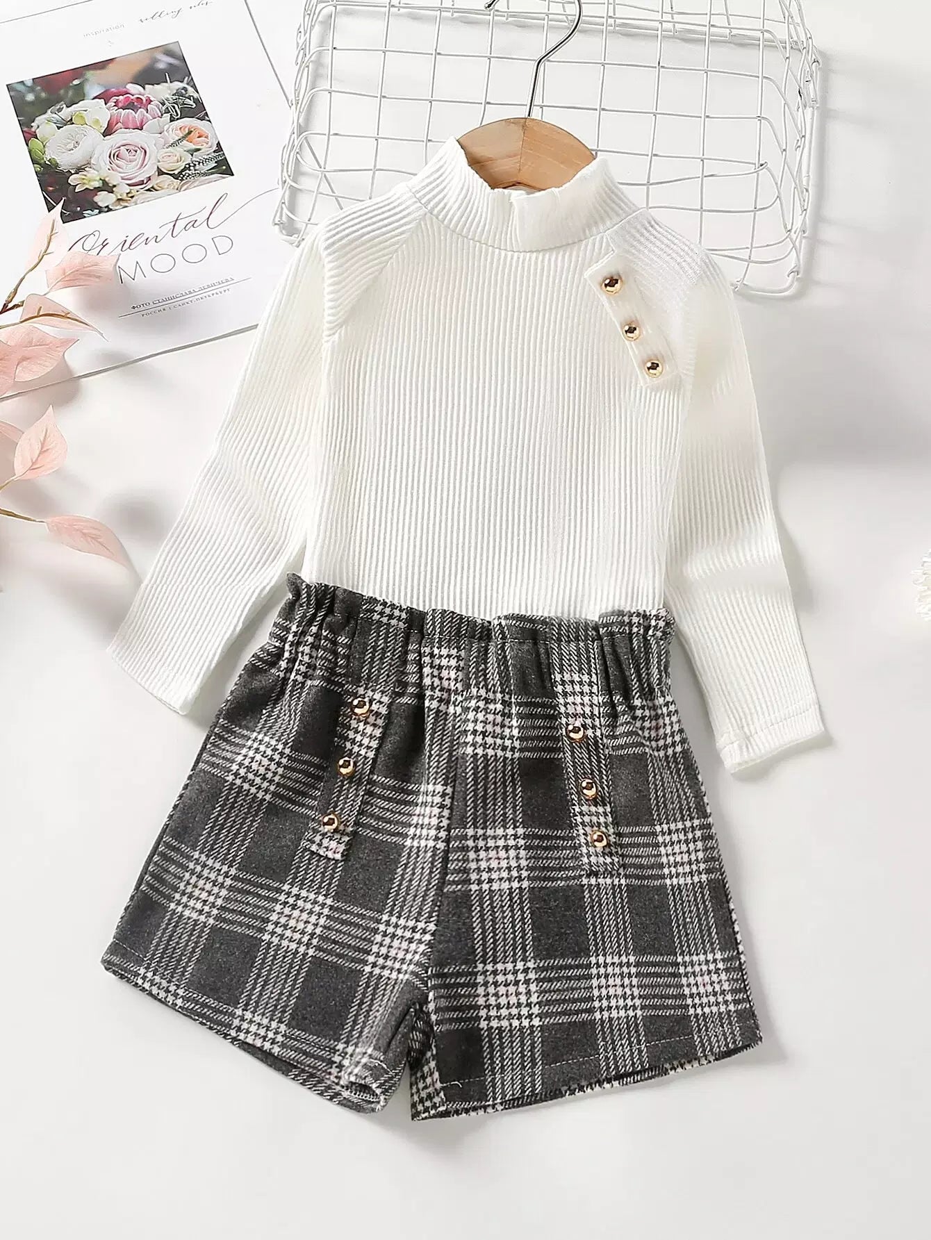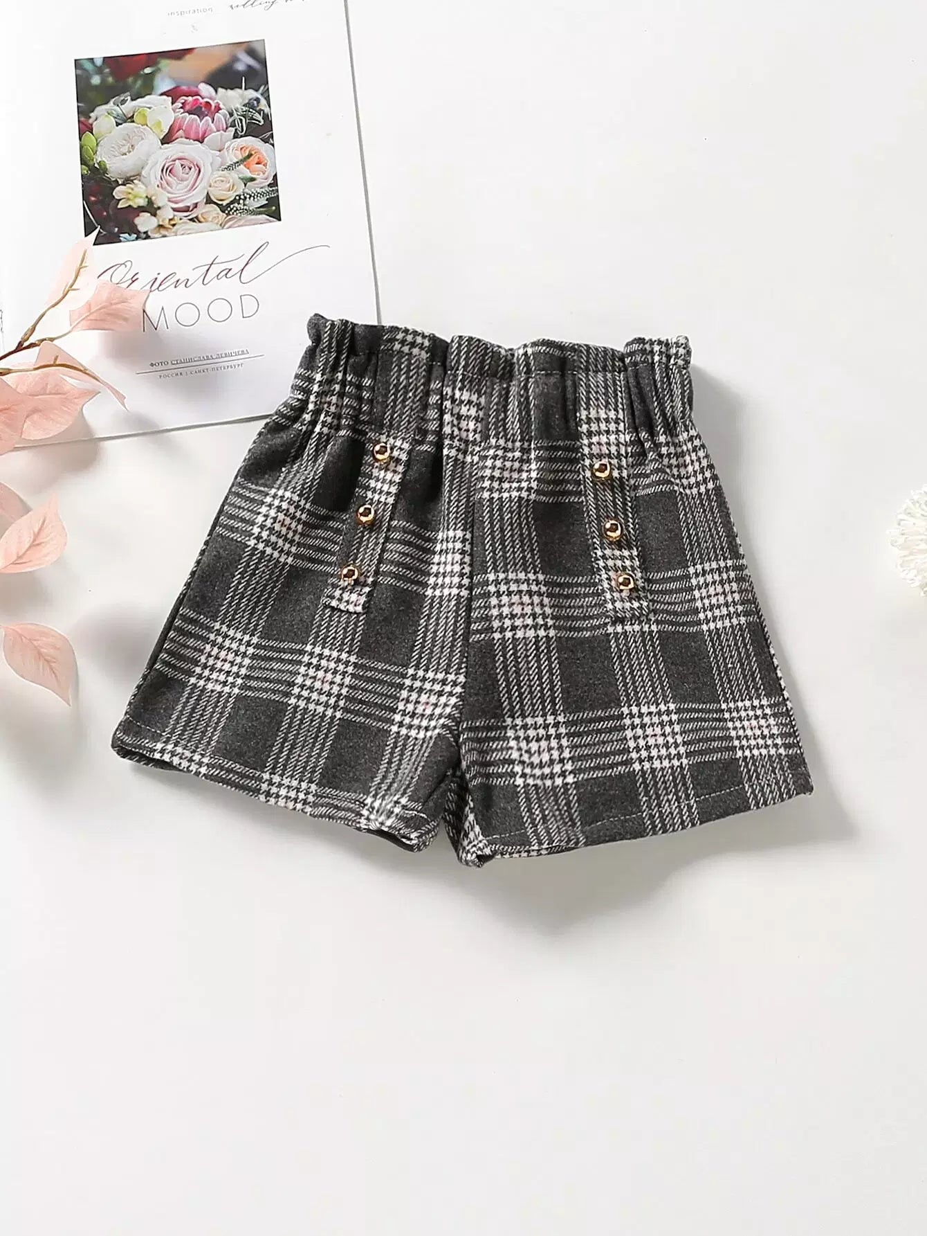 بلوزة بتفاصيل أزرار مضلعة مضلعة للبنات الصغيرات وشورت بطبعة منقوشة