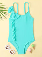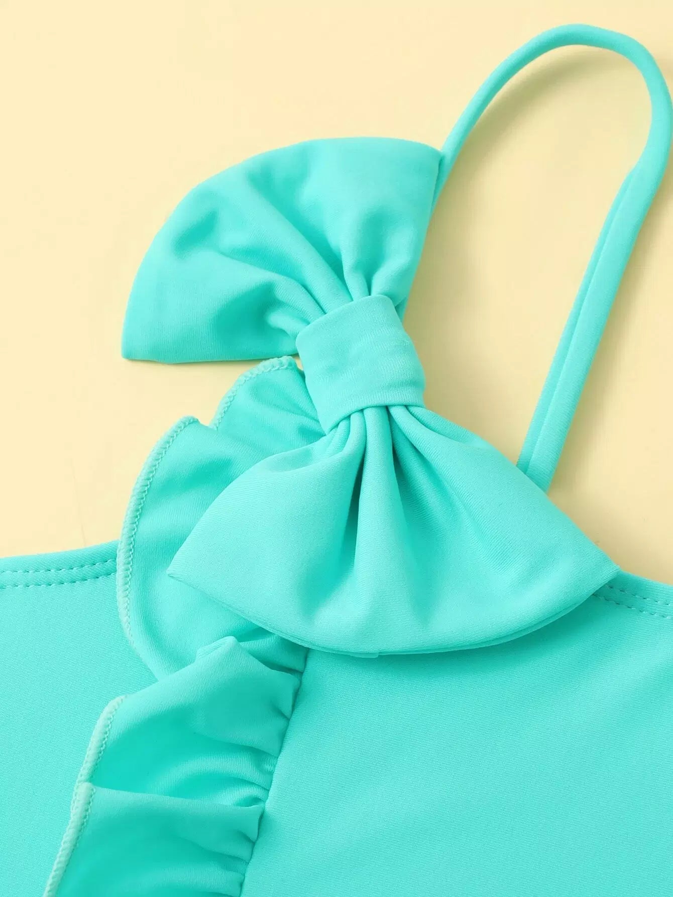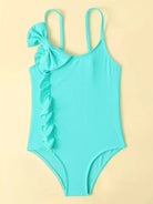 بدلة سباحة قطعة واحدة بنطلون سباحة للبنات الصغيرات مزينة بكشكش وعقدة