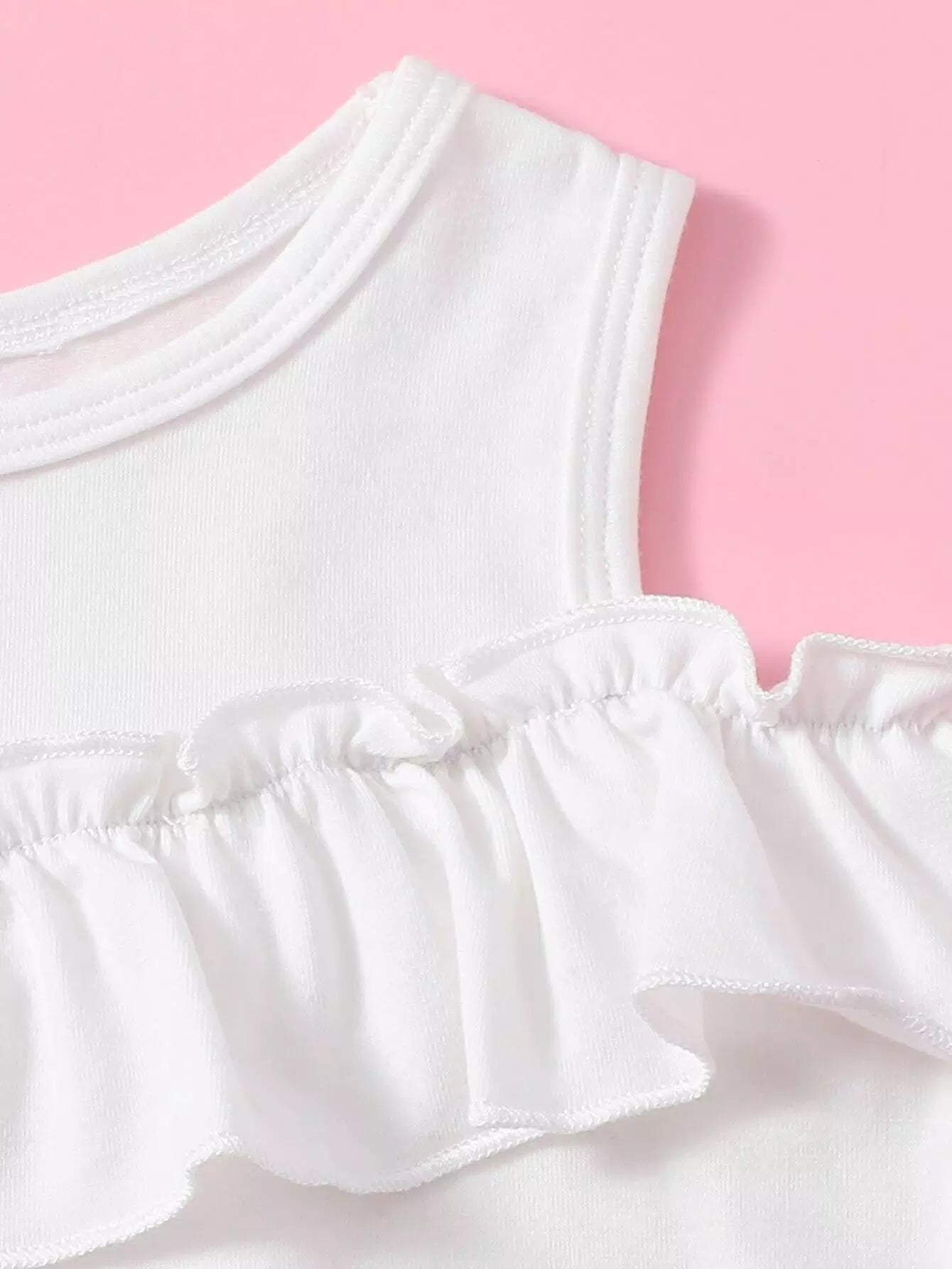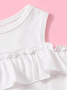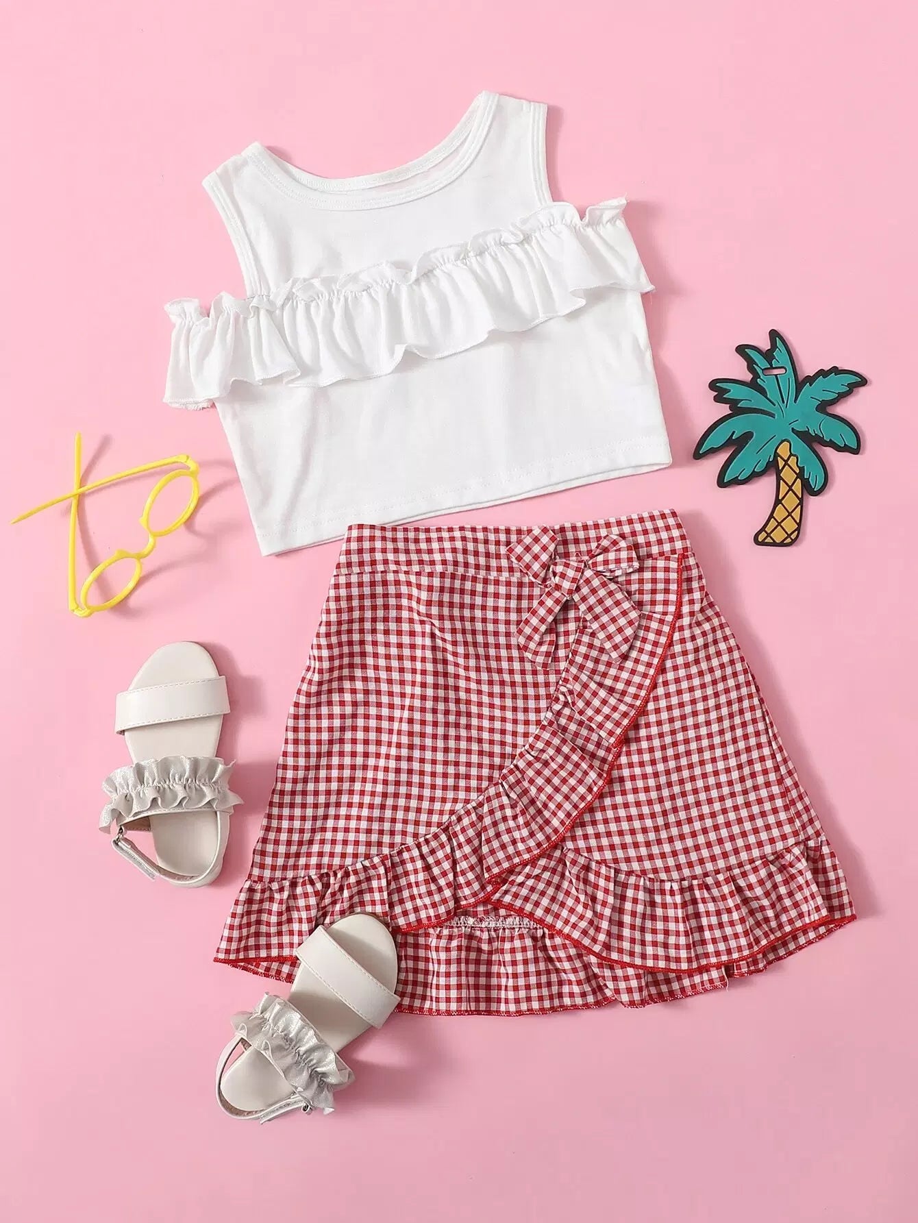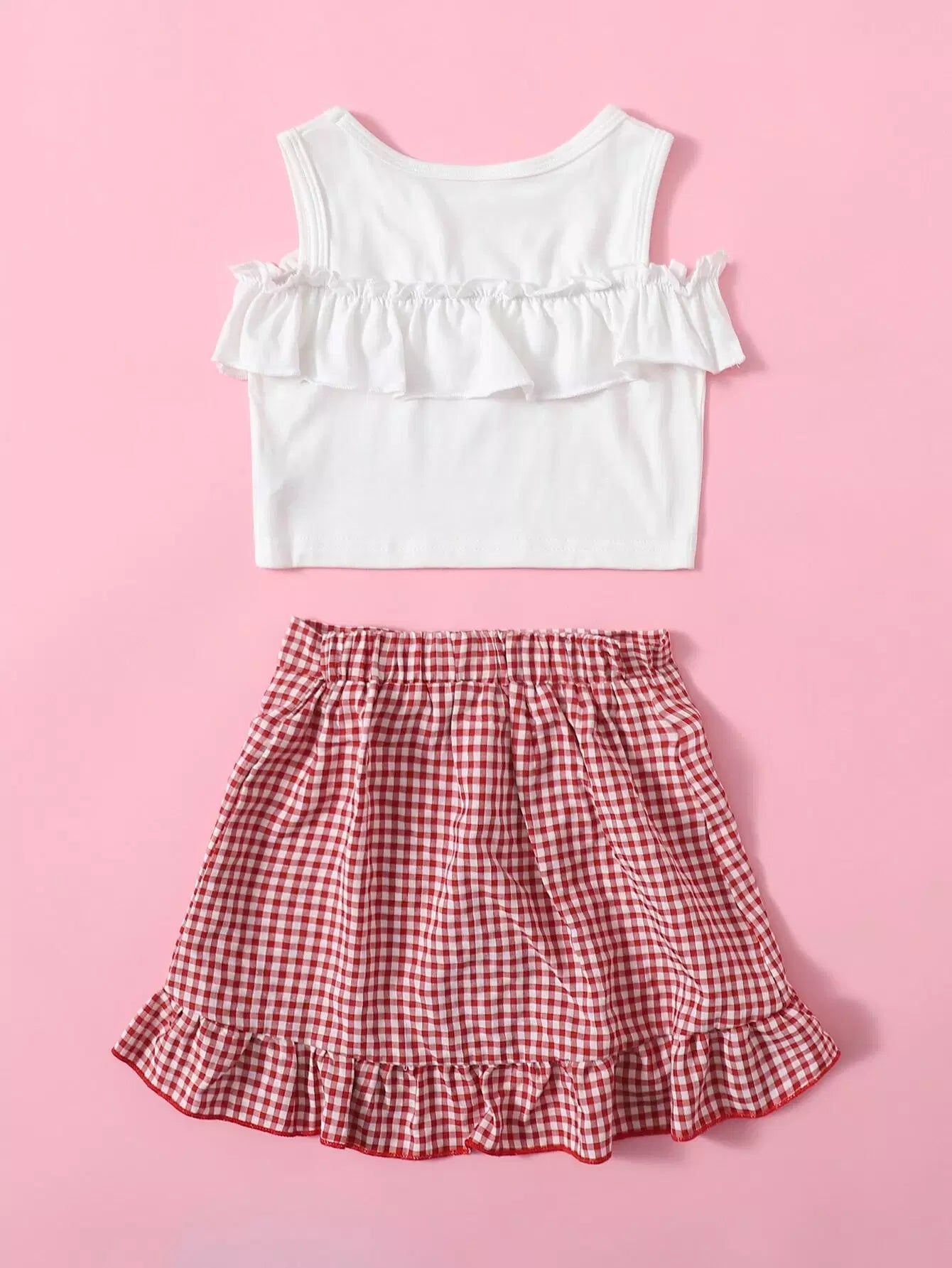 تانك بدون أكتاف مكشكشة بحواف مكشكشة للبنات الصغار وتنورة من القماش القطني