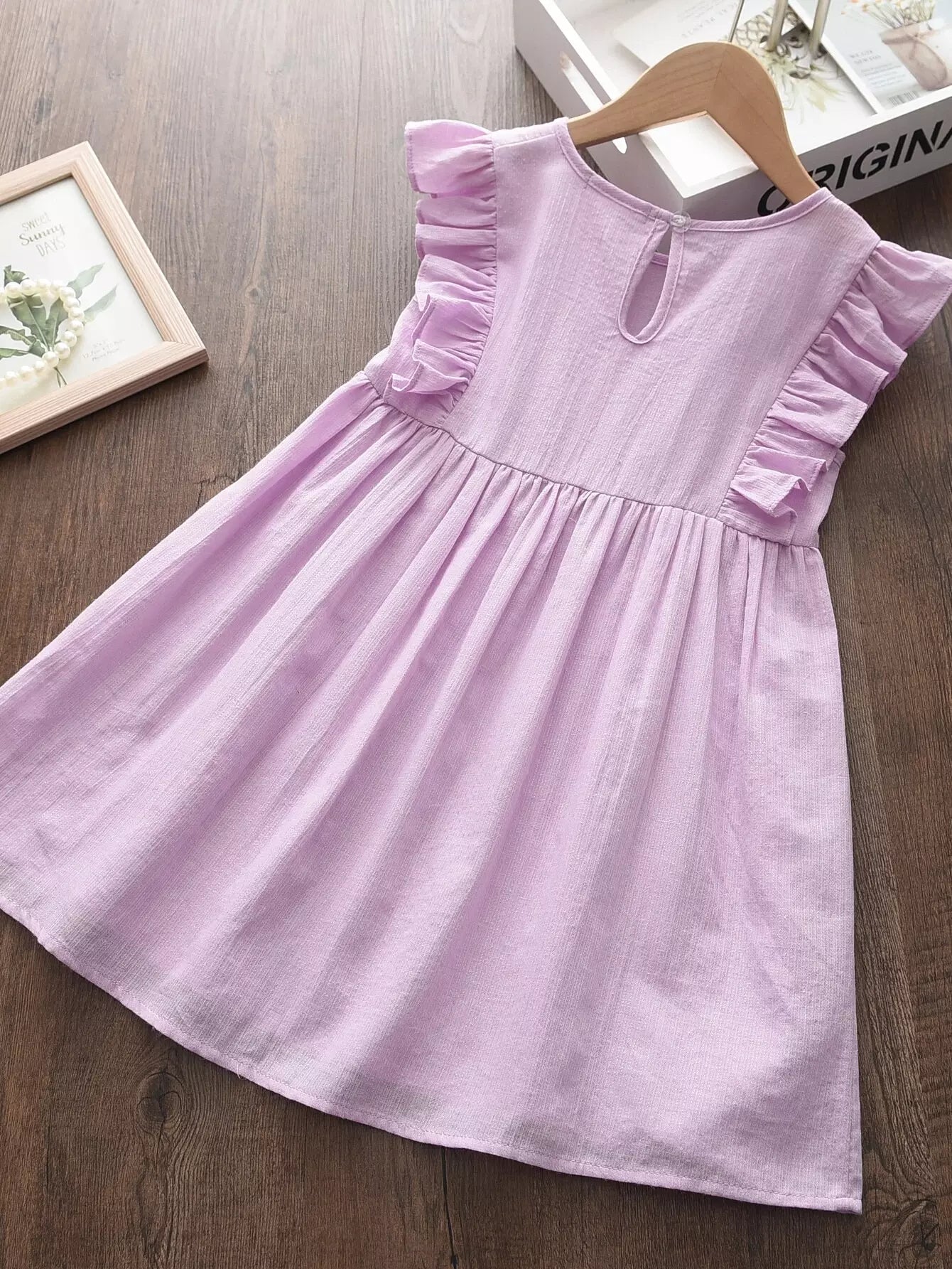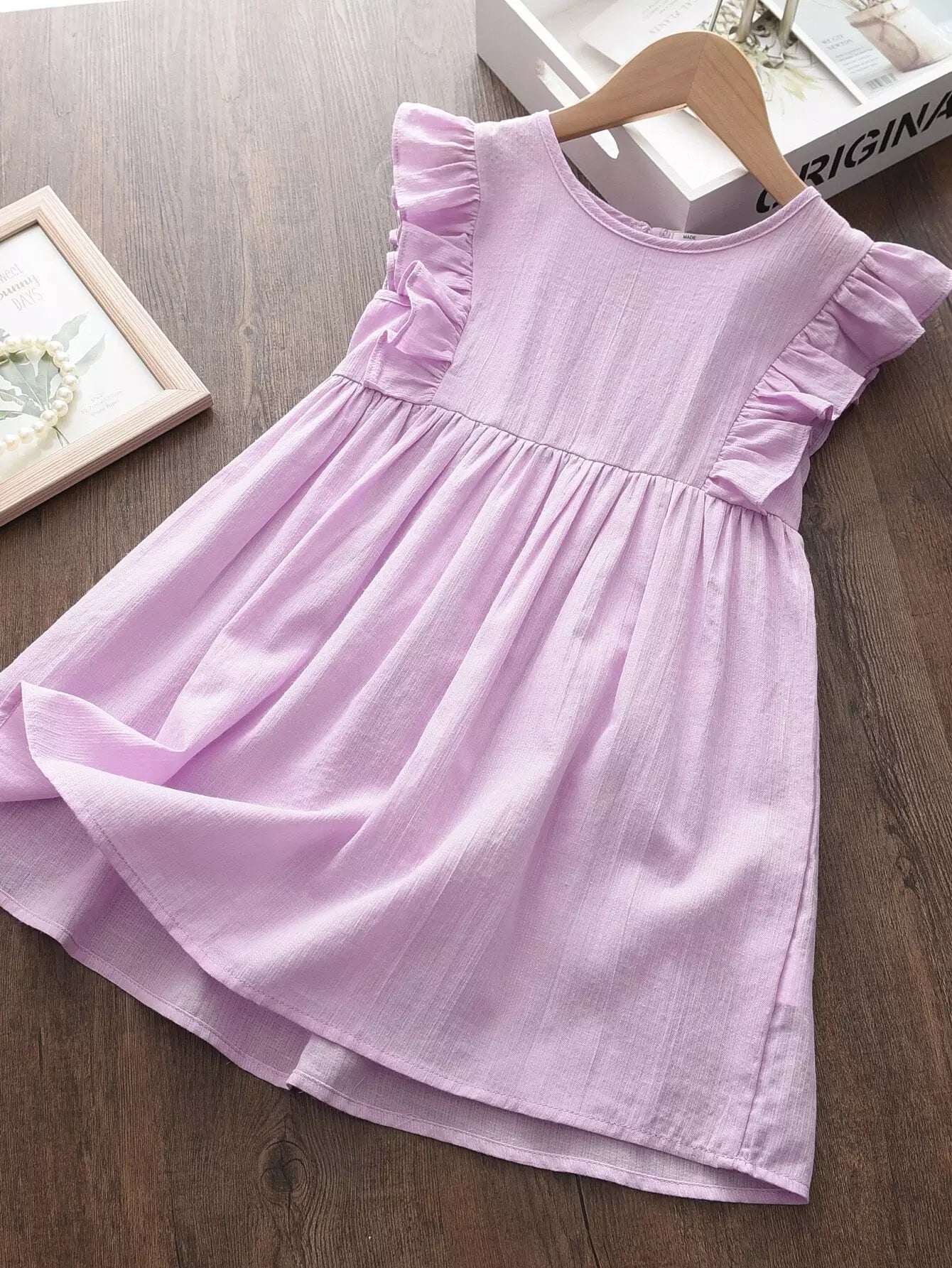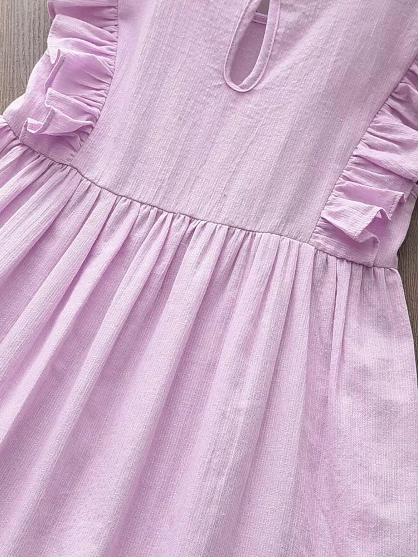 فستان سادة بحواف مكشكشة للبنات الصغار