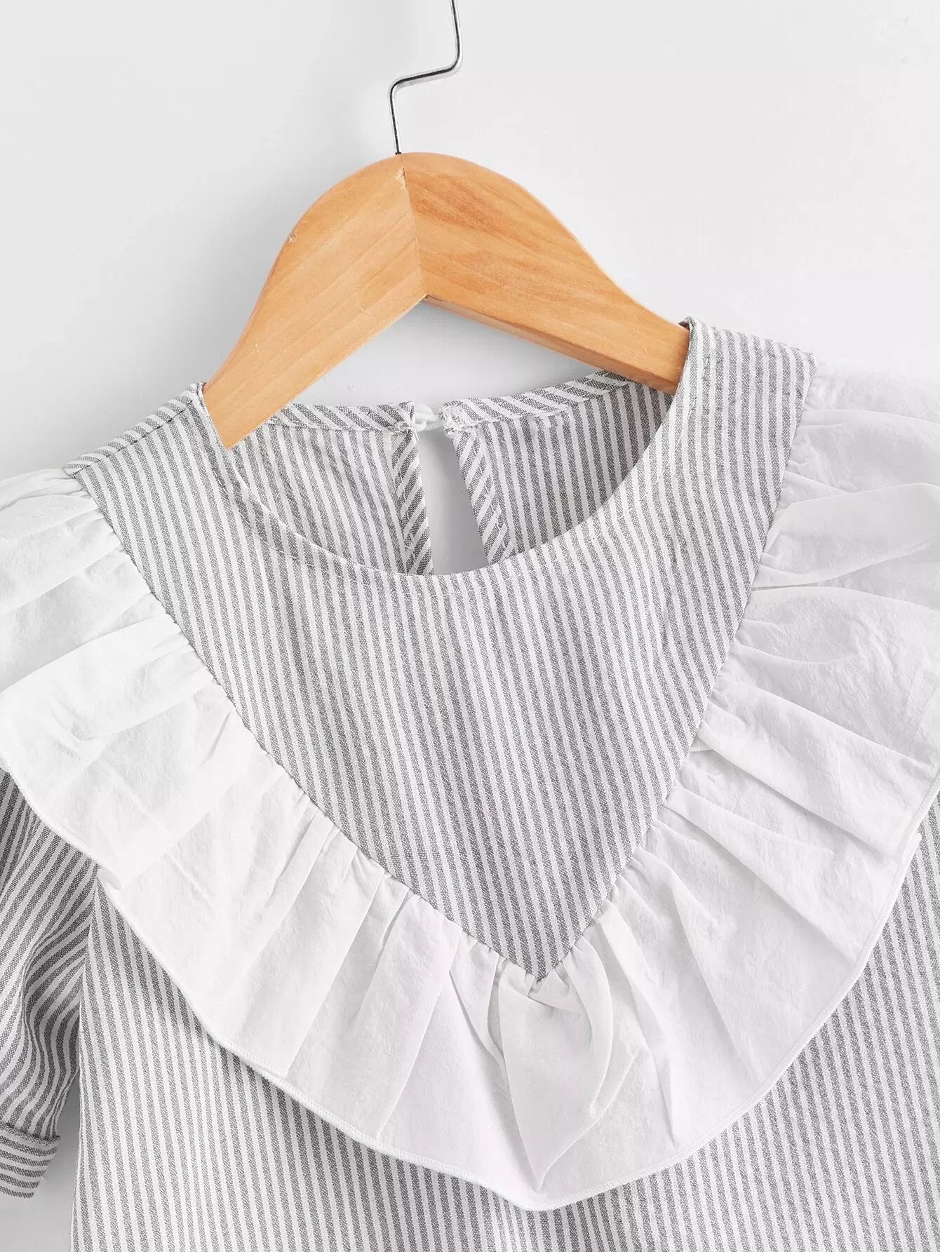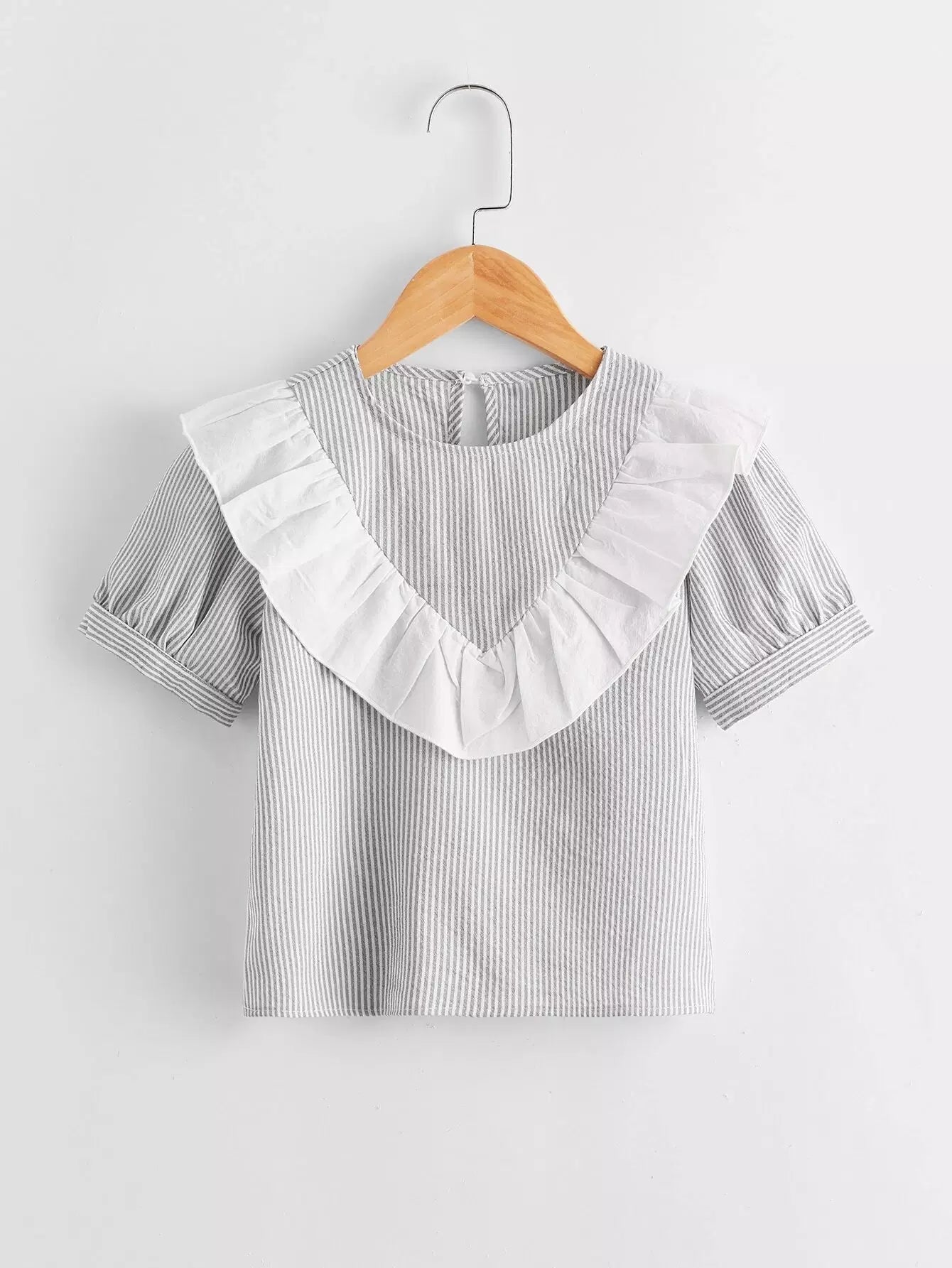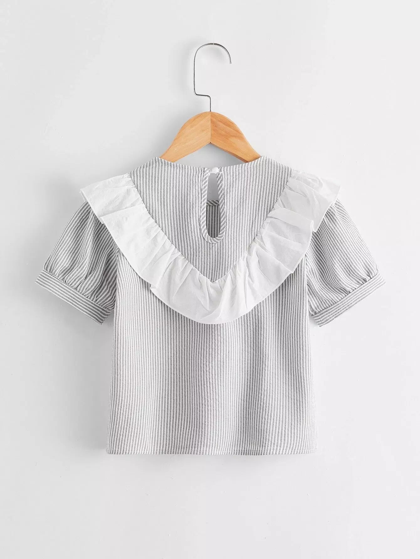بلوزة مخططة بحواف مكشكشة للبنات الصغار