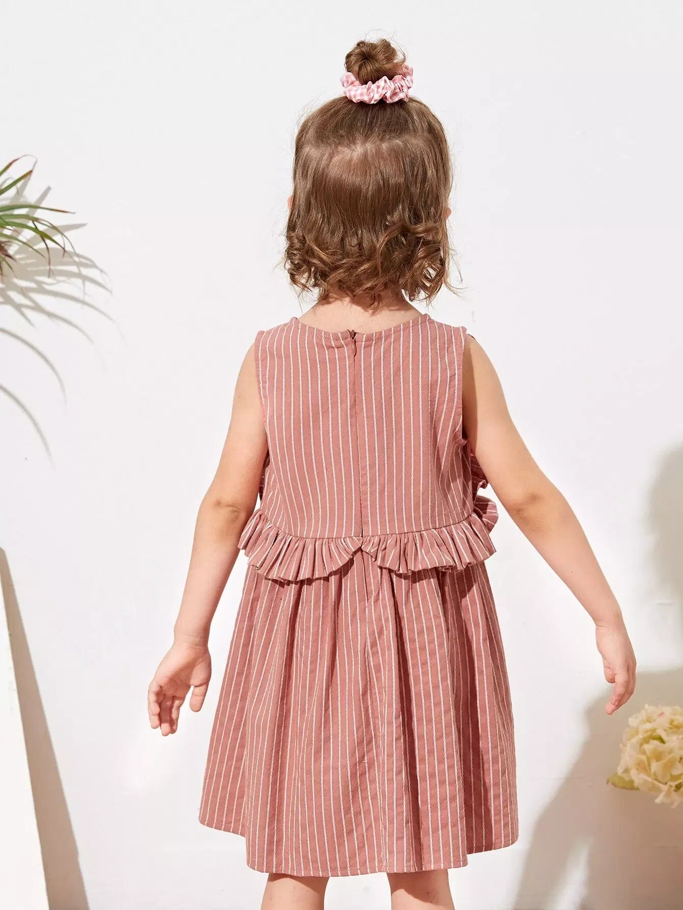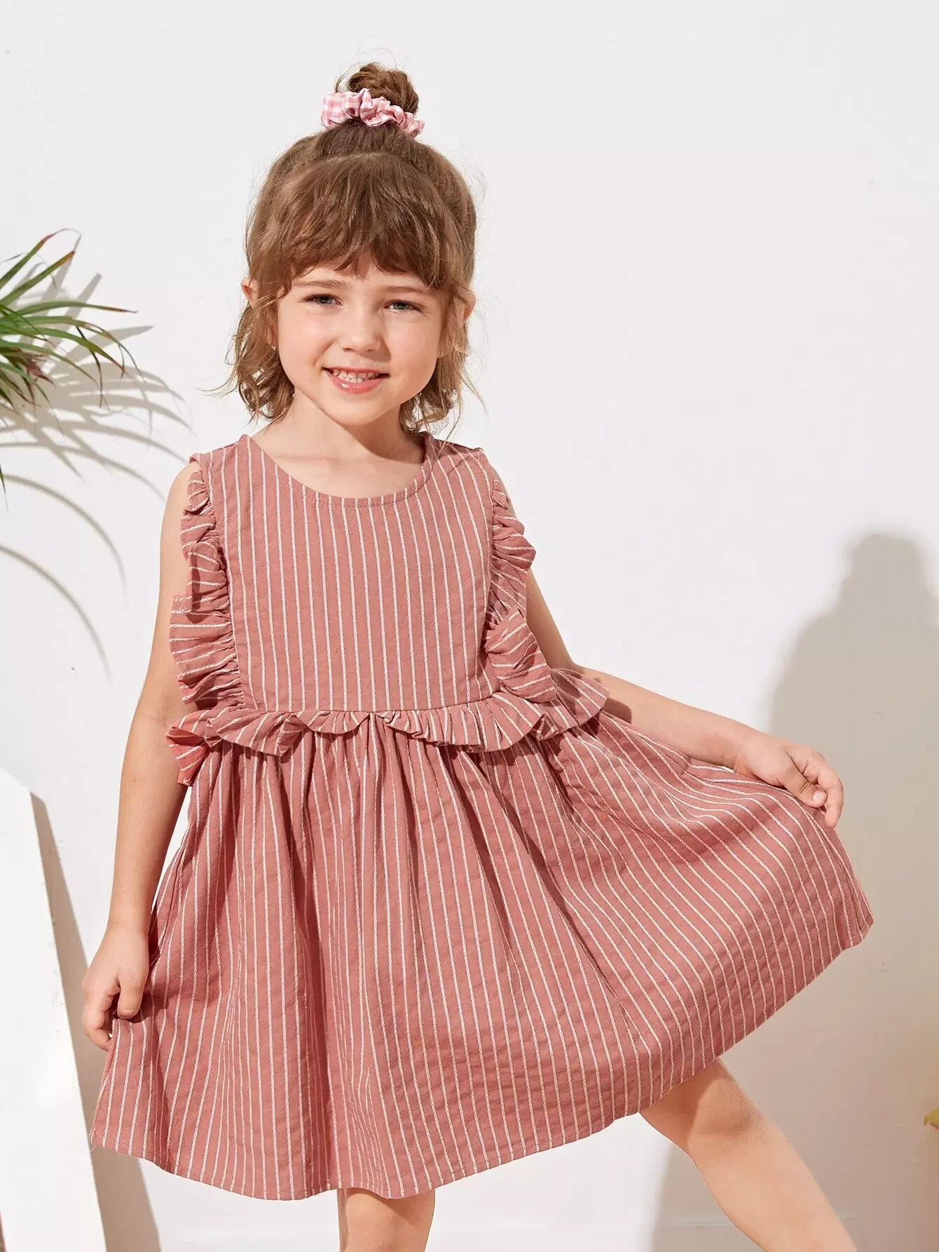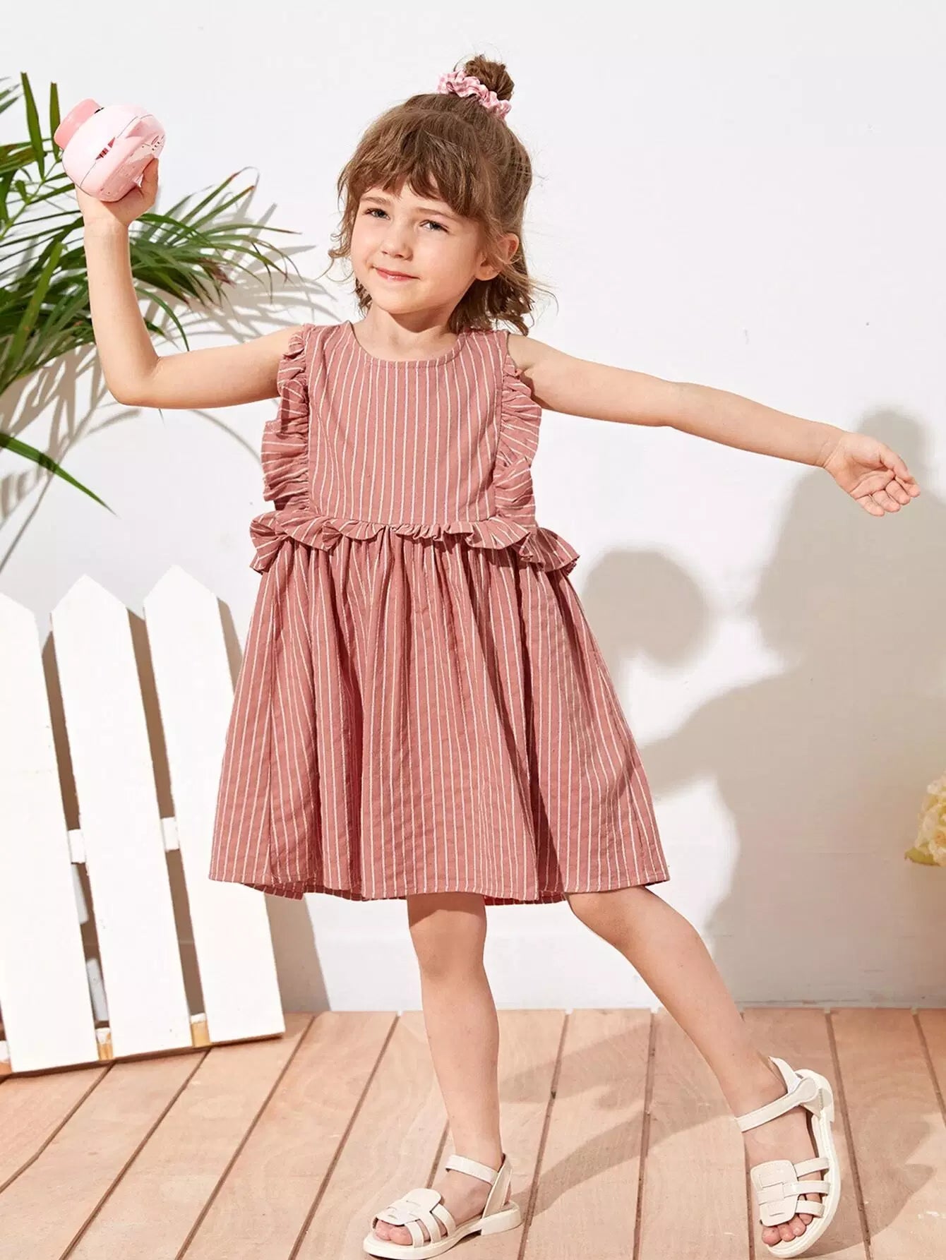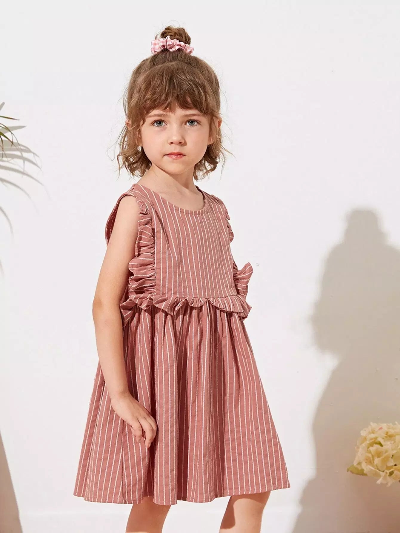 فستان بنات صغيرات صغيرات بطبعة كشكش مخطط بنقشة سموك