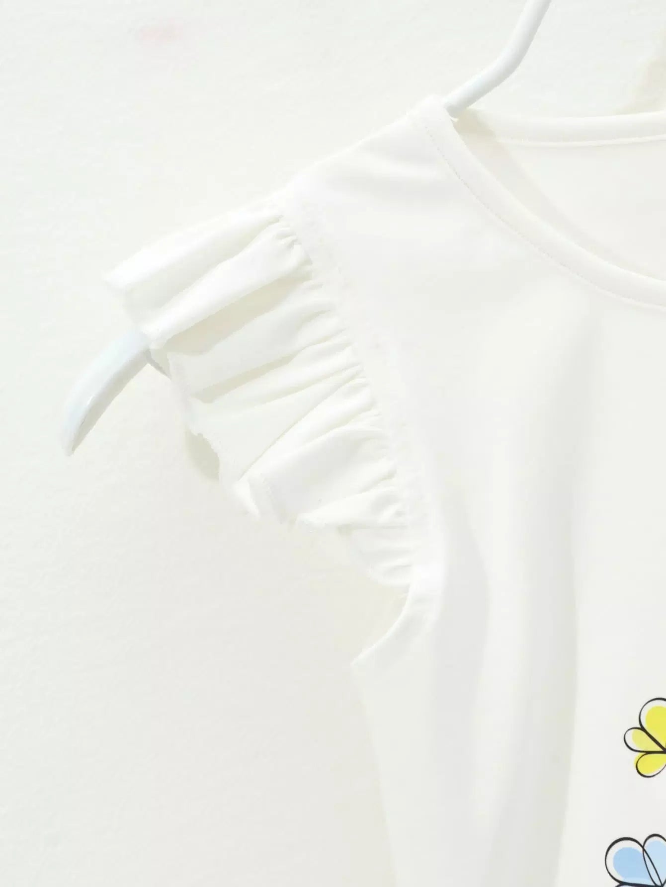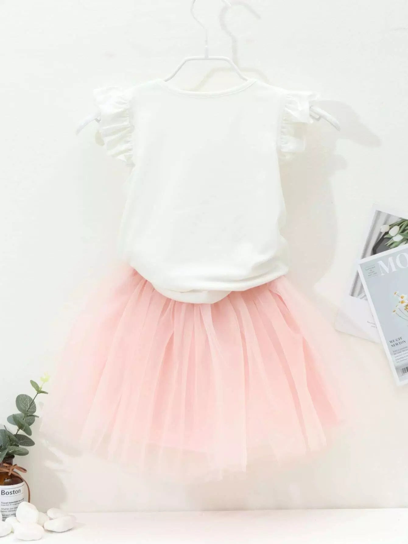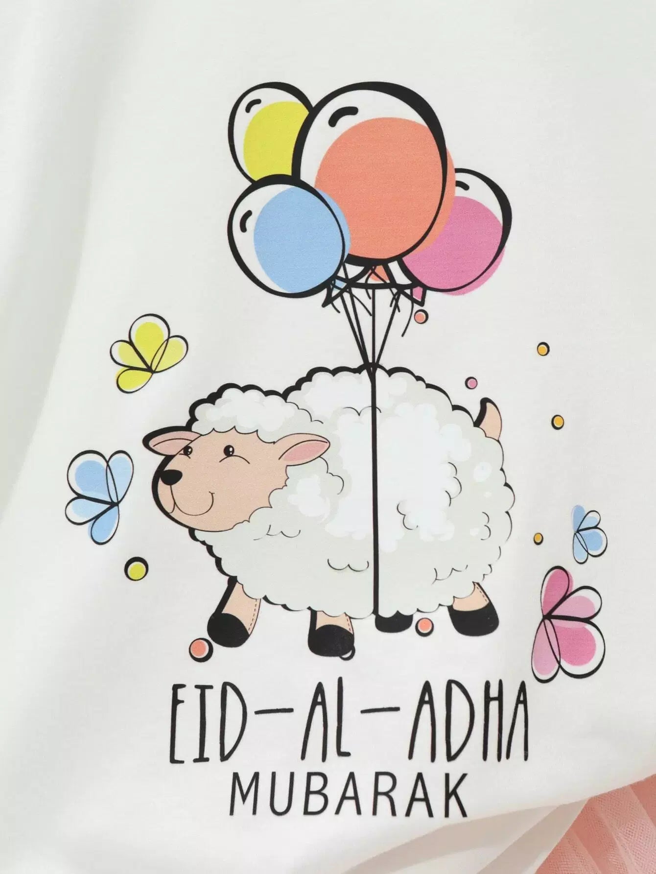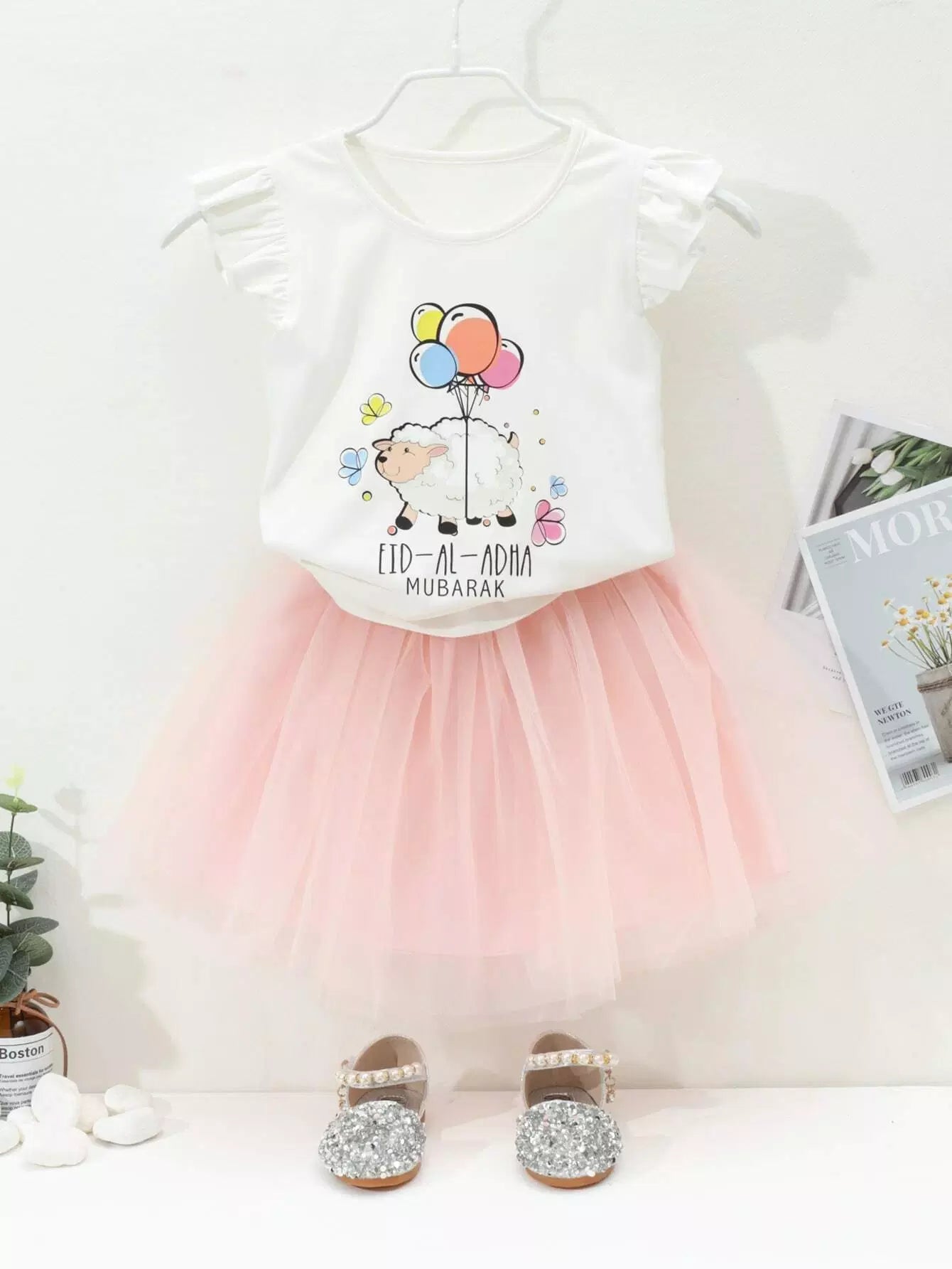 تي شيرت كشكش بطبعة خروف للبنات الصغار مع تنورة توتو