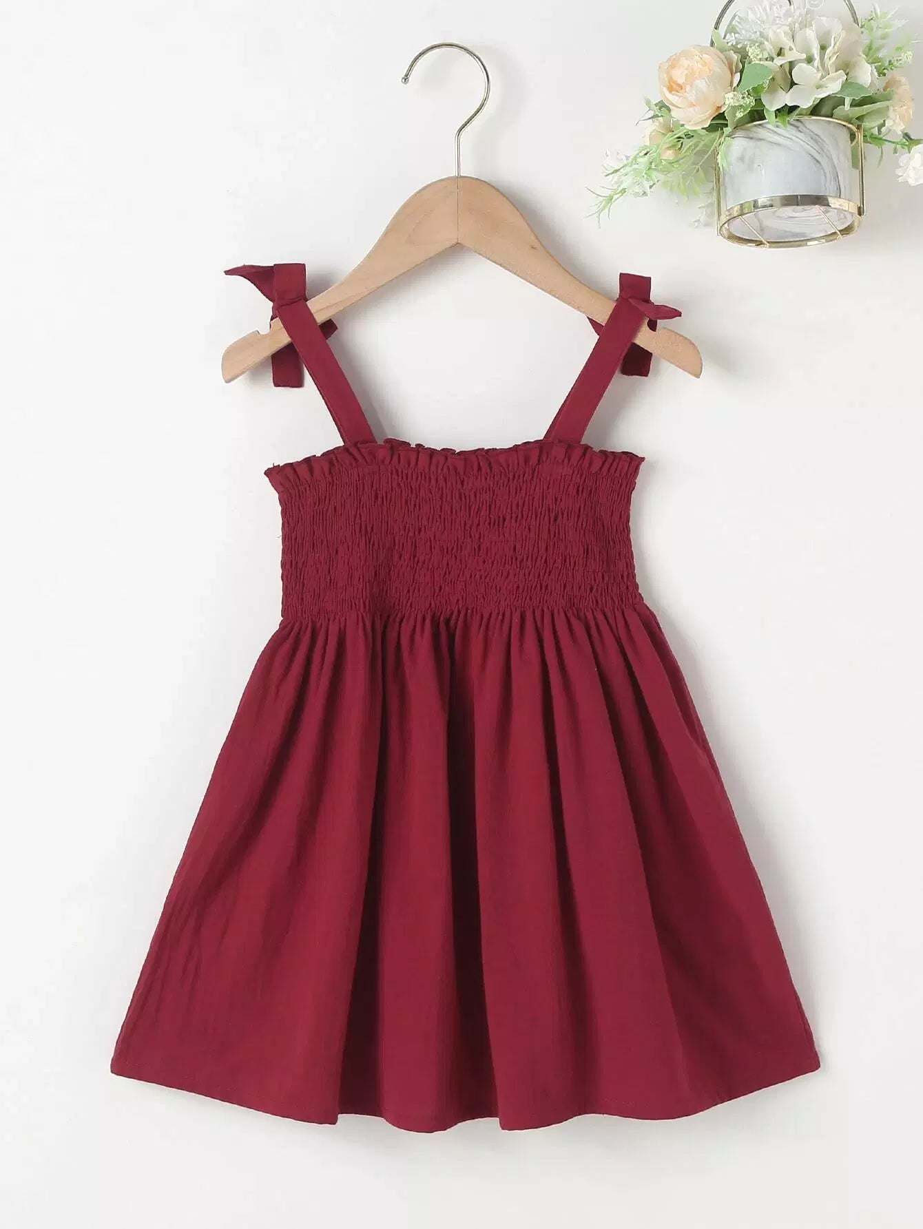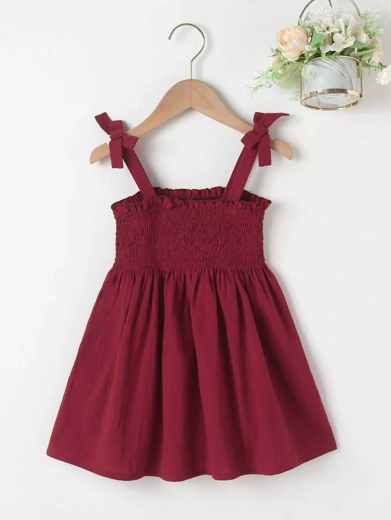 فستان بناتي صغيرات بكشكش عقدة بشريط بناتي