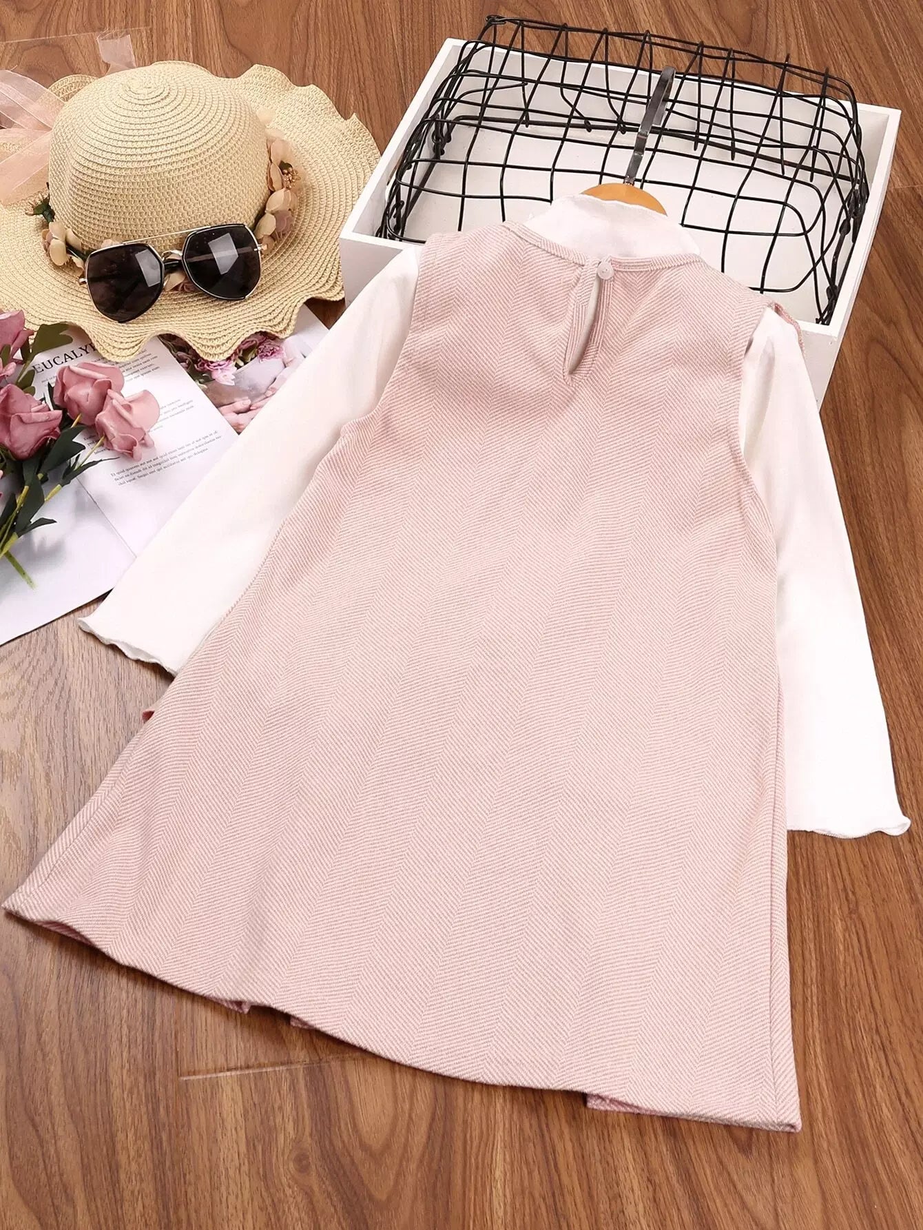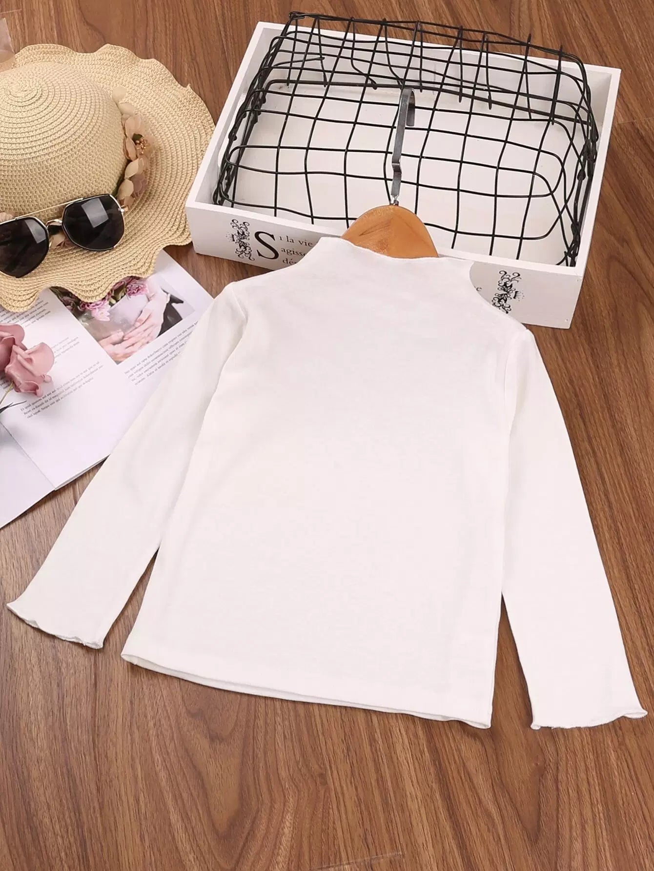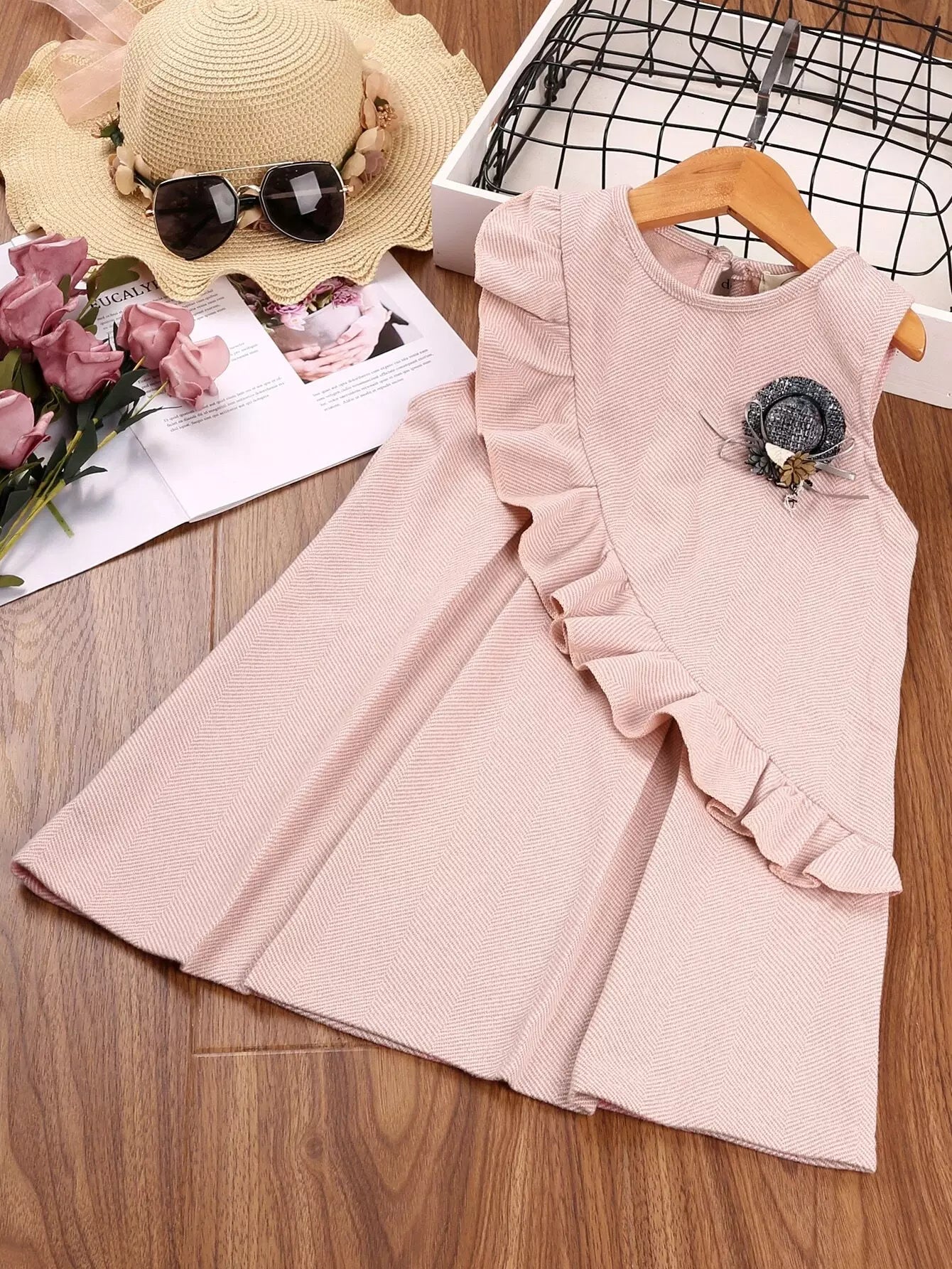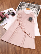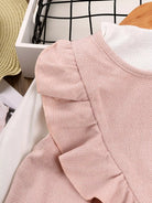 تي شيرت بنات صغيرات بقصّة سادة بحواف من الخس وفستان مزين بكشكش مفصل
