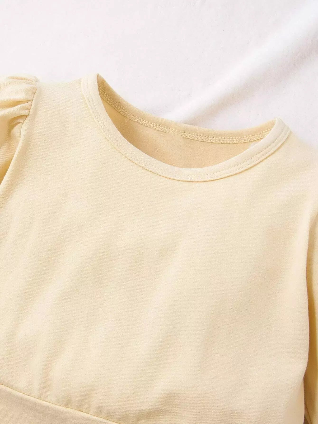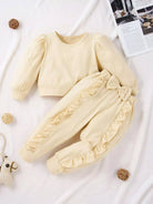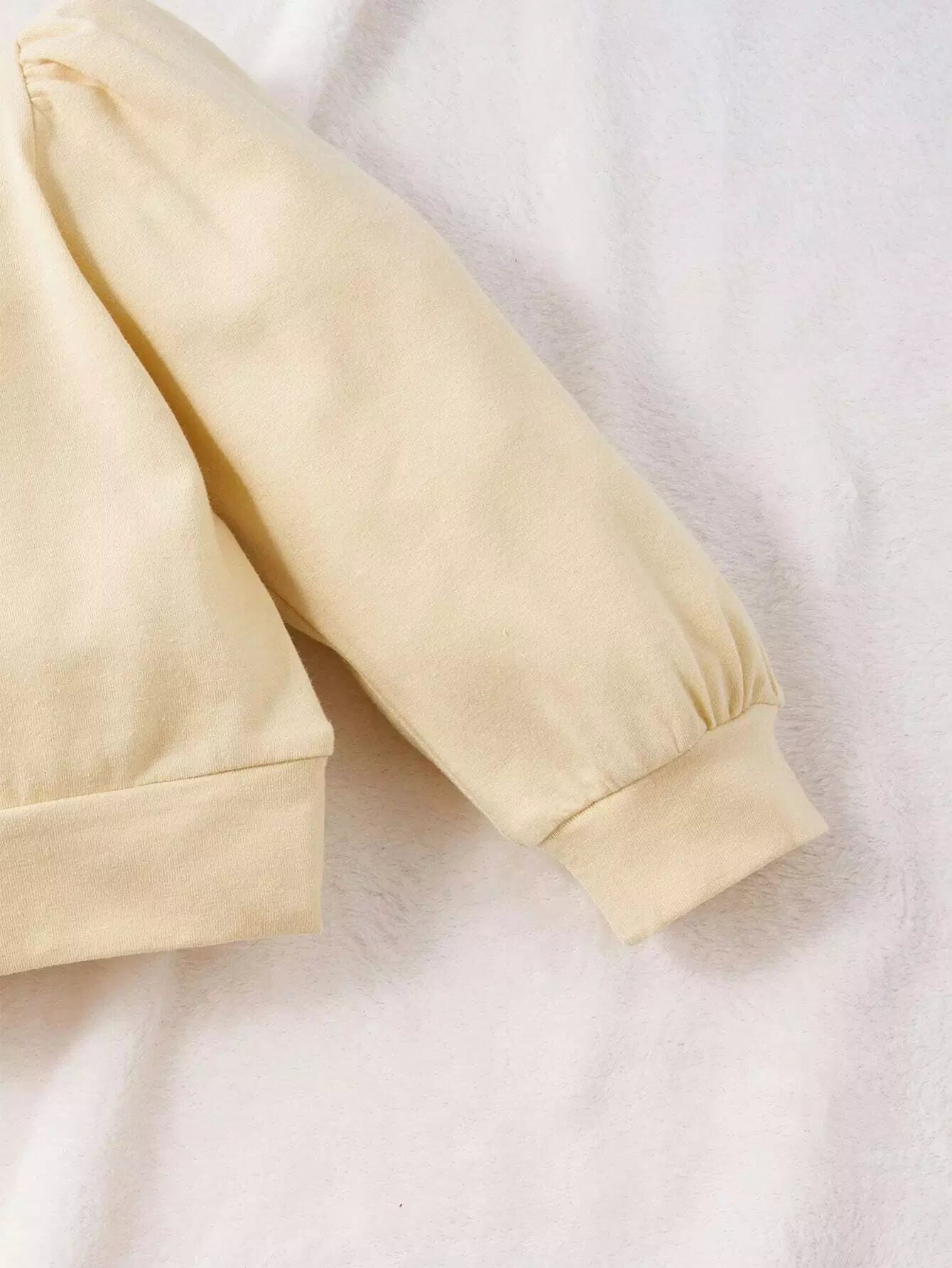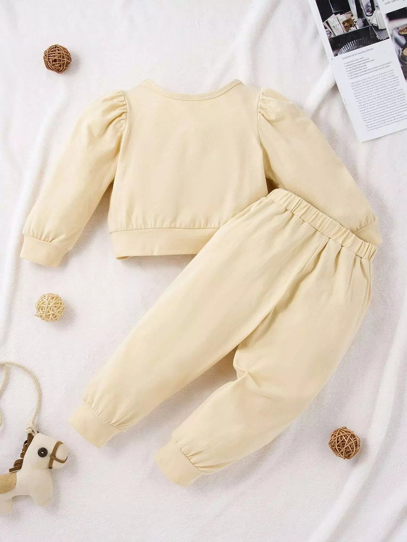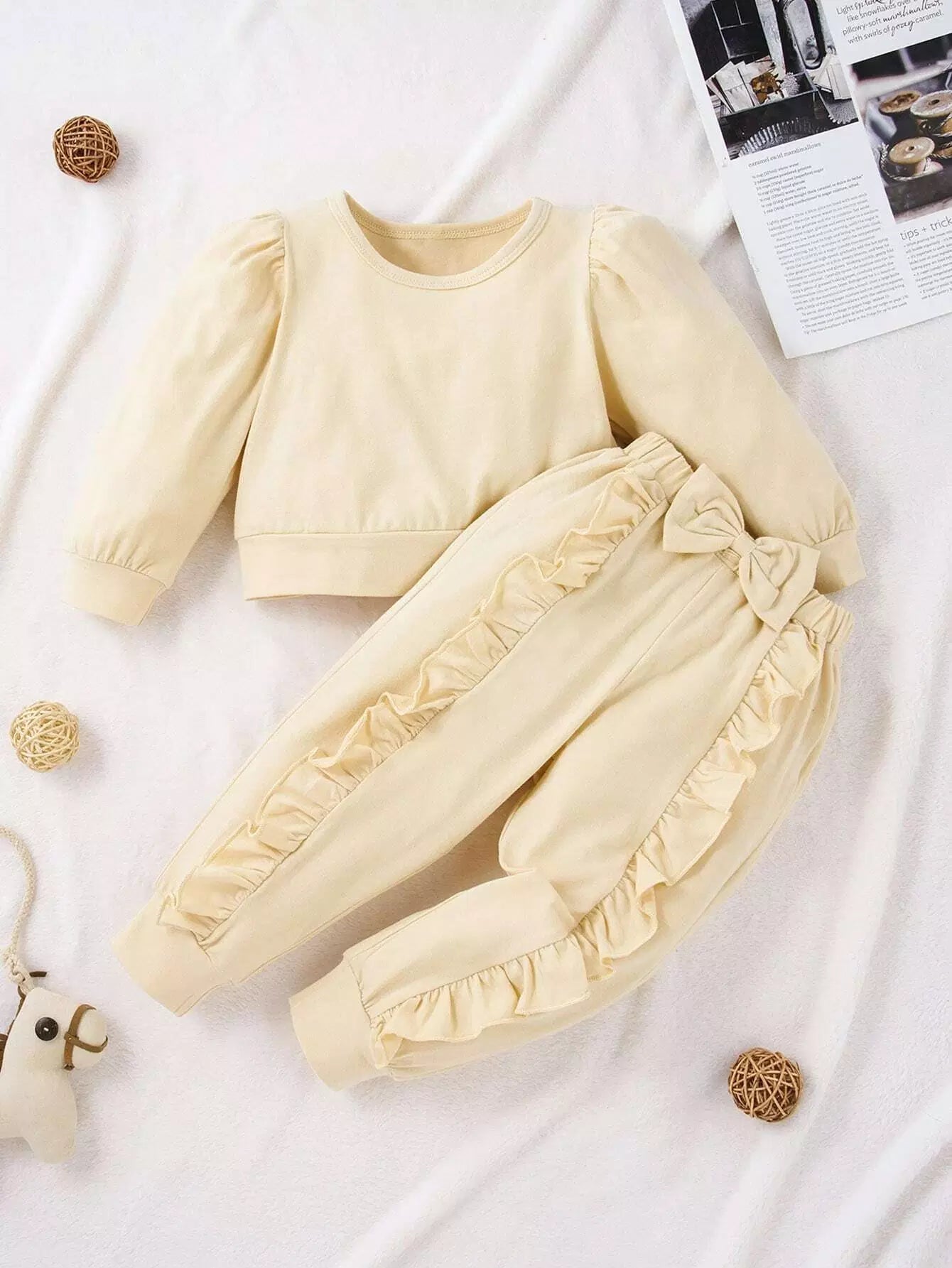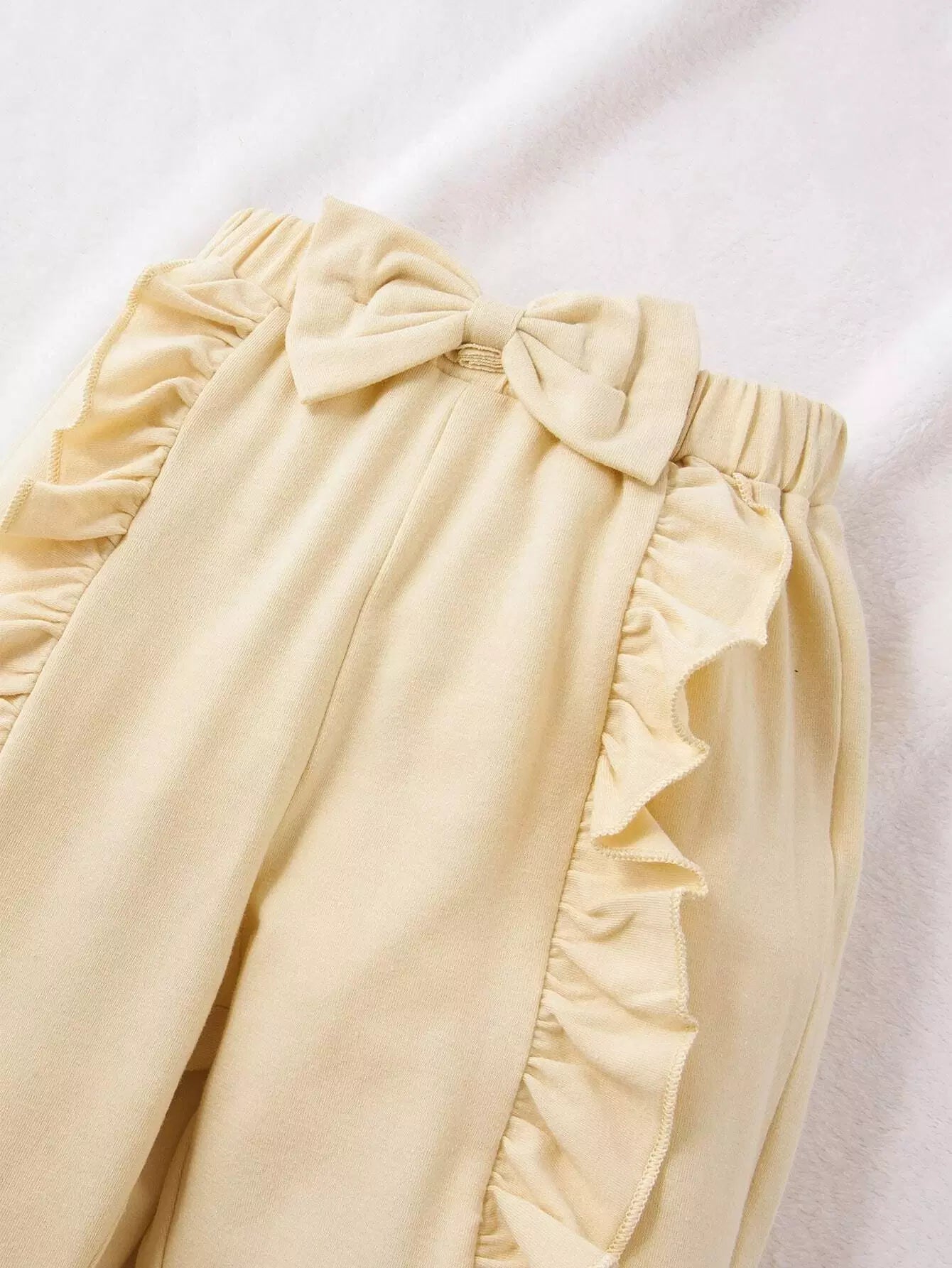 كنزة صوفية سادة للبنات الصغار وبنطال رياضي مزين بعقدة من الأمام ومزخرف