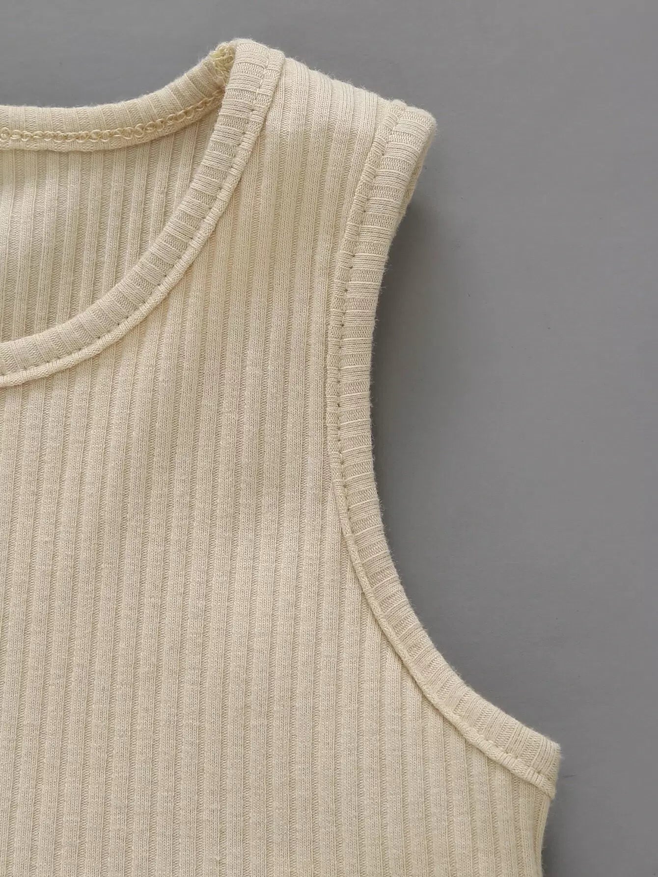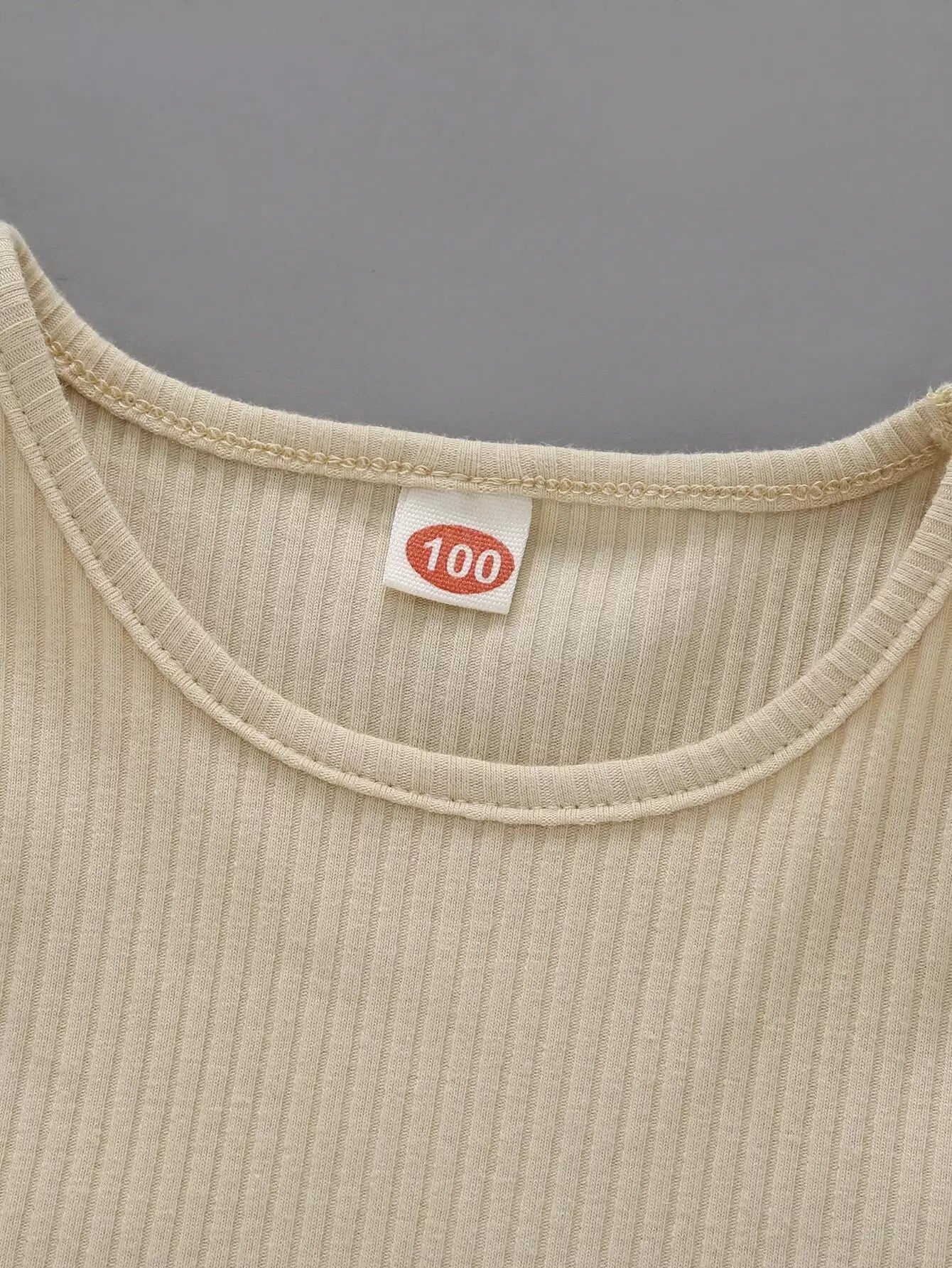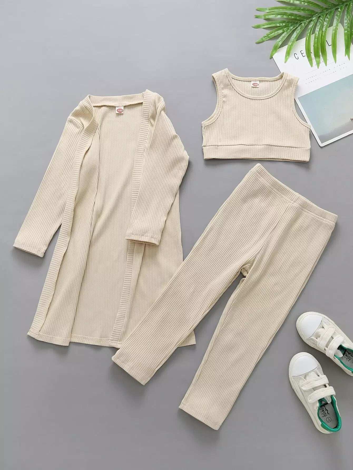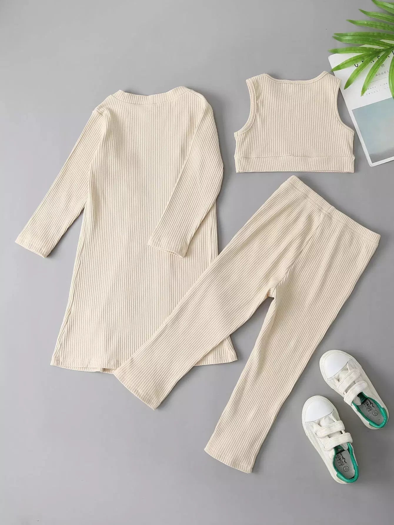 تانك بدون أكمام وبنطلون ضيق ومعطف محبوك من نسيج مضلع سادة للبنات الصغار