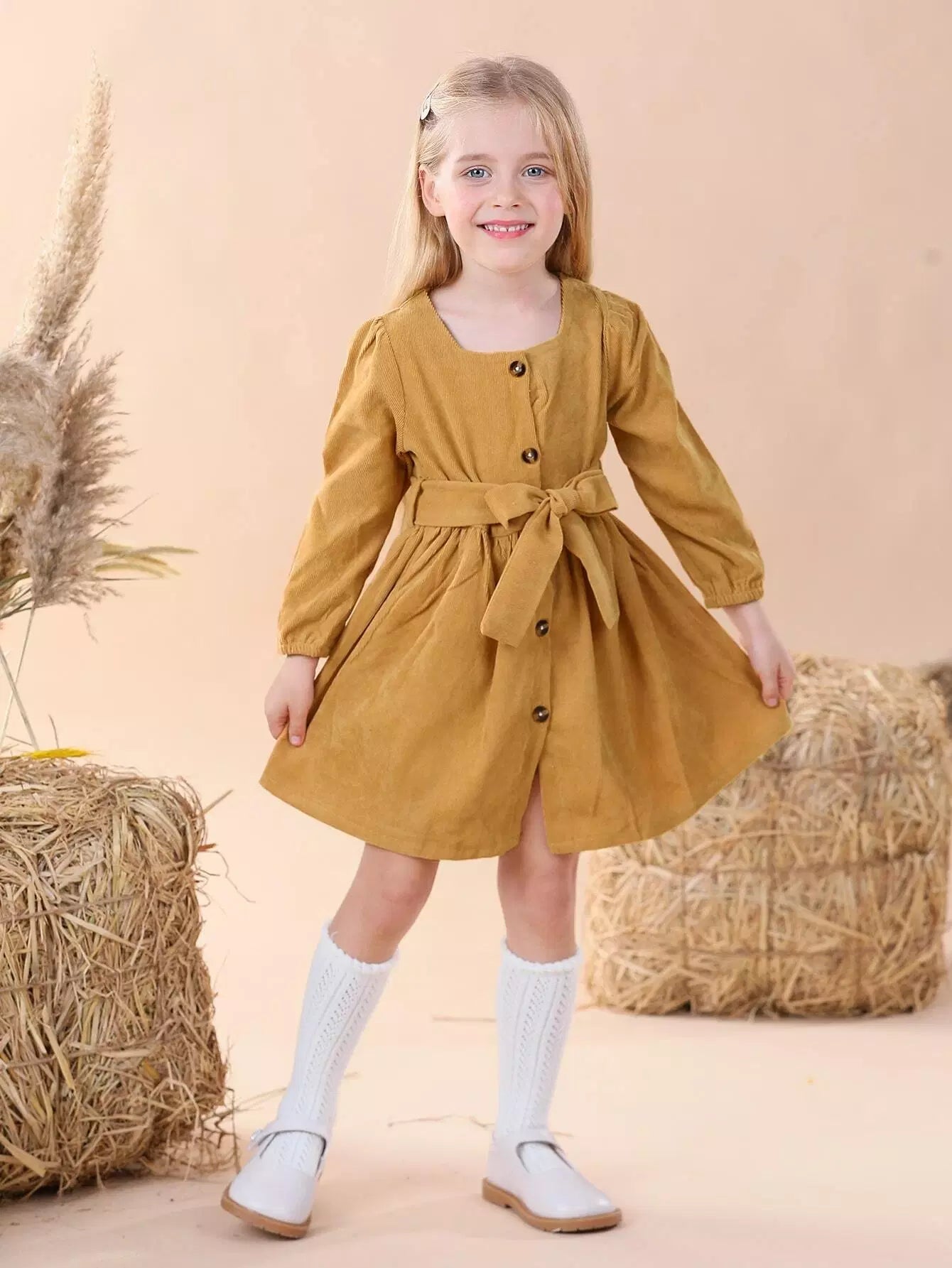 فستان قصير للفتيات الصغيرات برقبة مربعة بدون حزام
