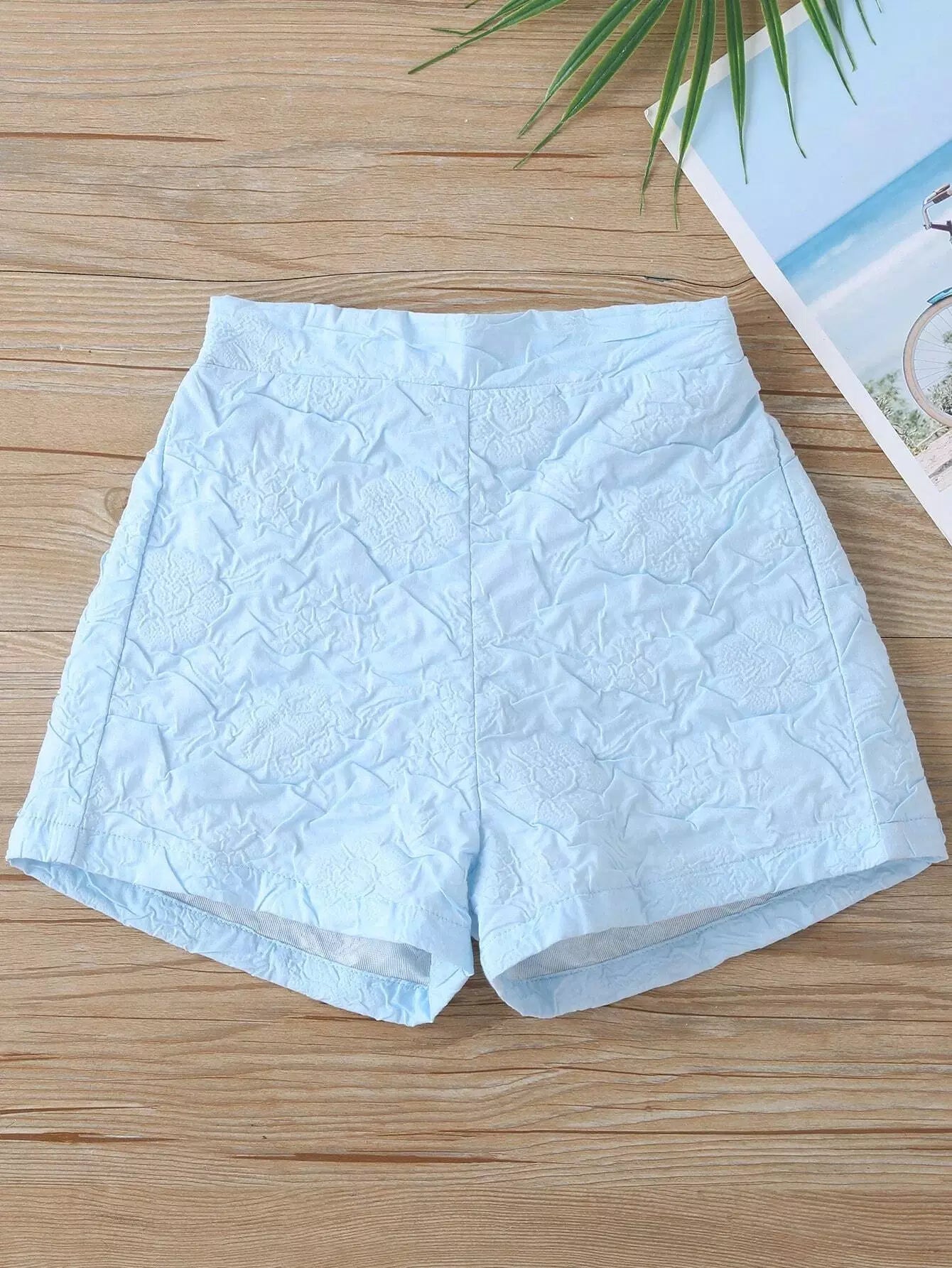 بلوزة بياقة مربعة برقبة مربعة بأزرار أمامية وبنطلون قصير للبنات