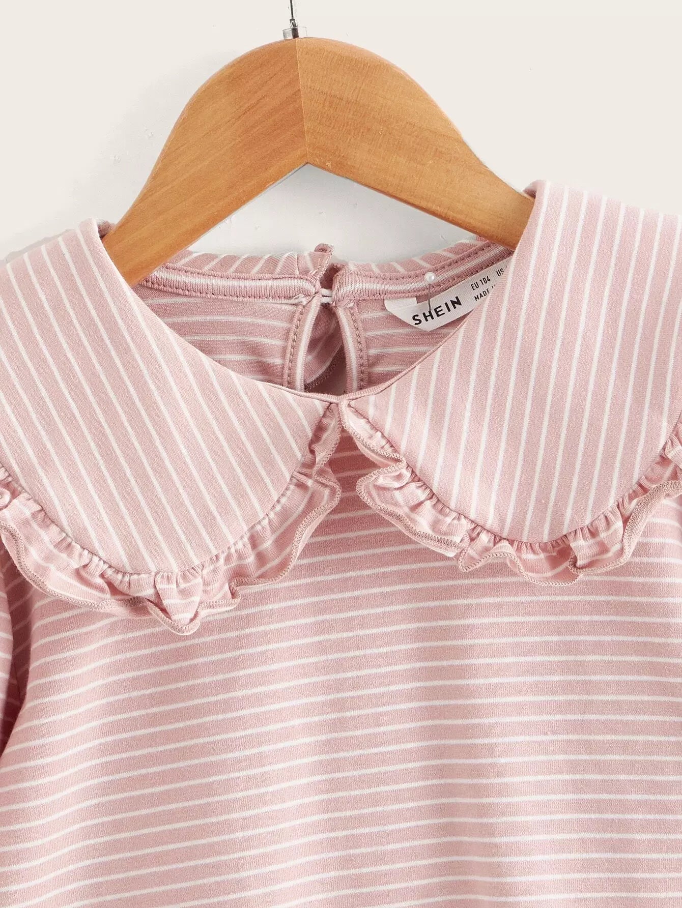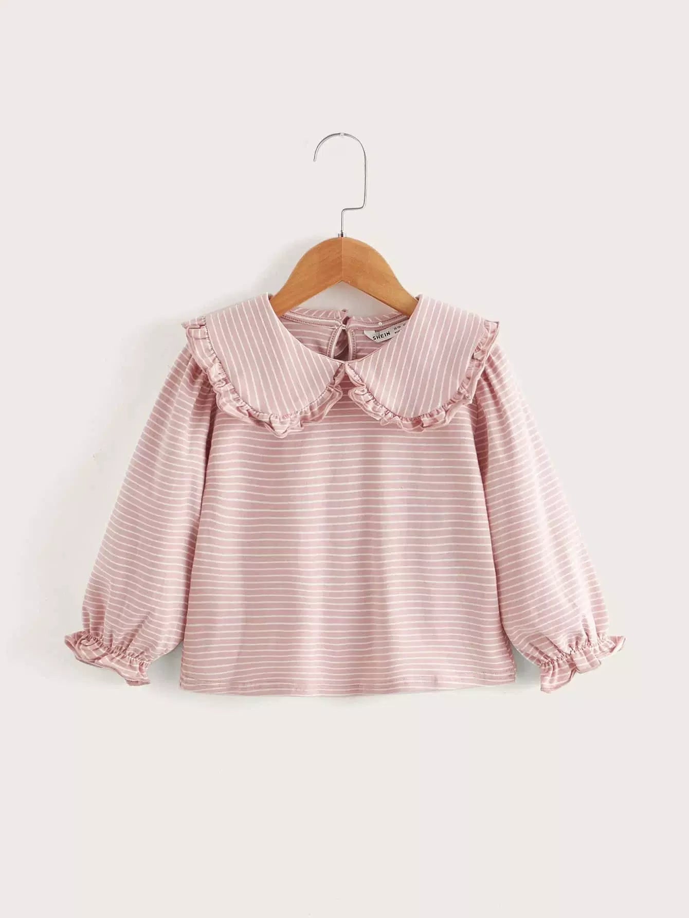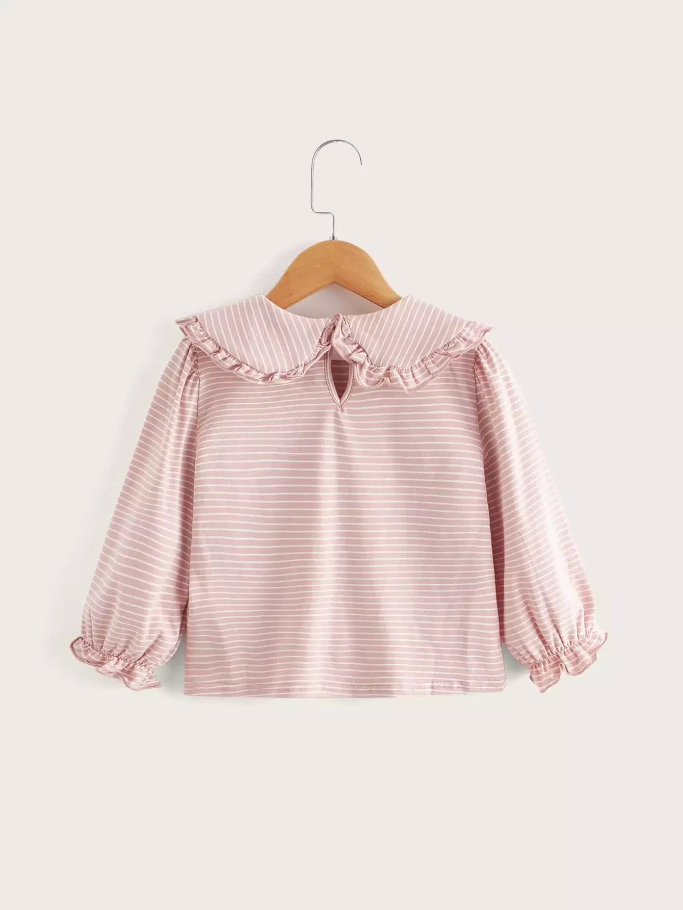 تي شيرت مخطط بياقة مميزة للبنات الصغار