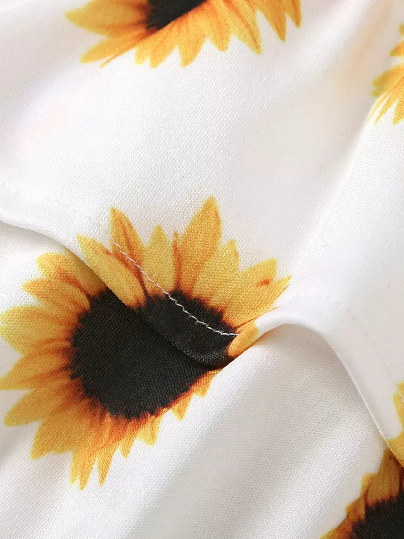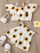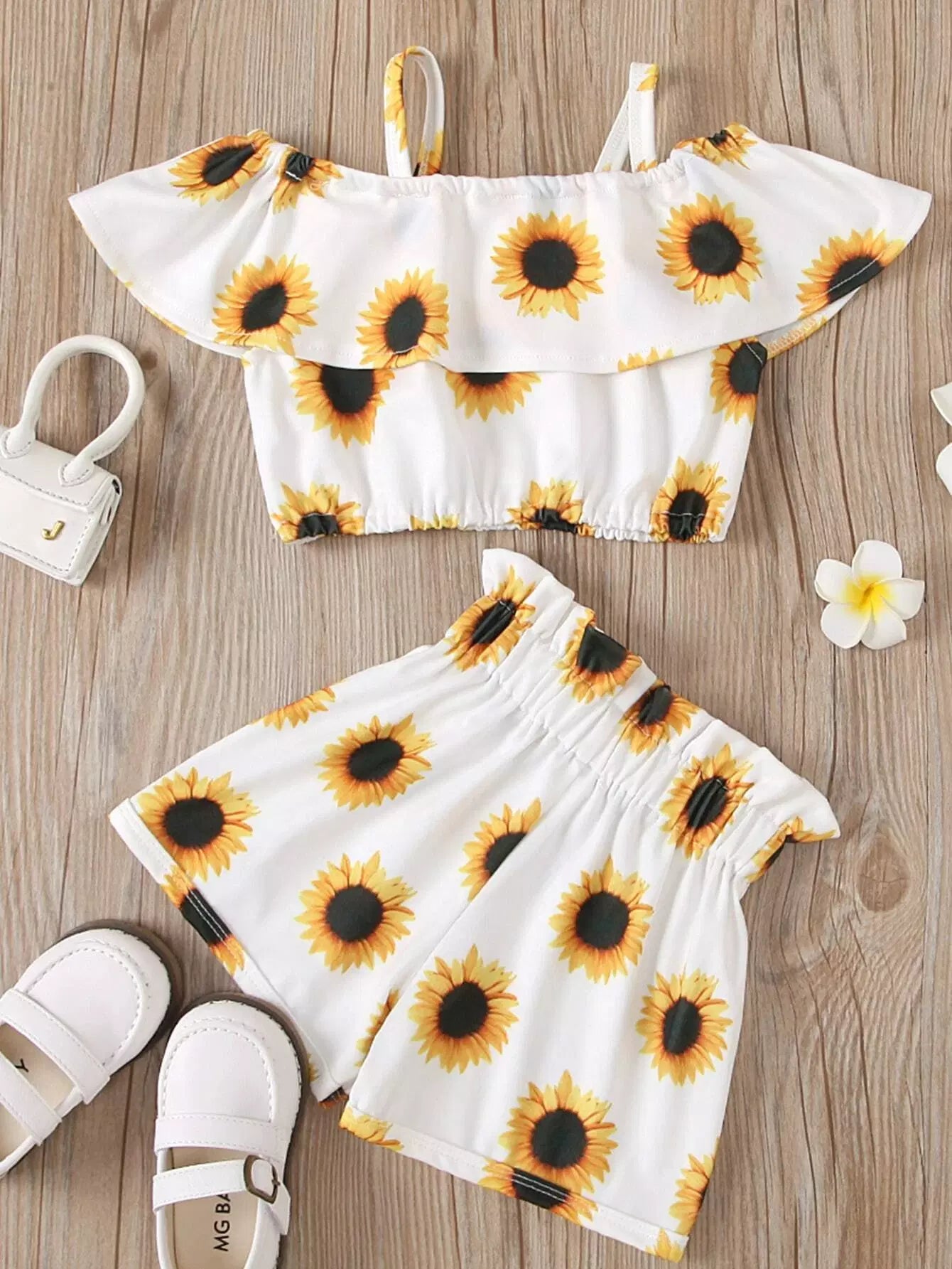 بلوزة وشورت قصير مكشكش بناتي صغيرات مزين بكشكشة زهرة دوار الشمس