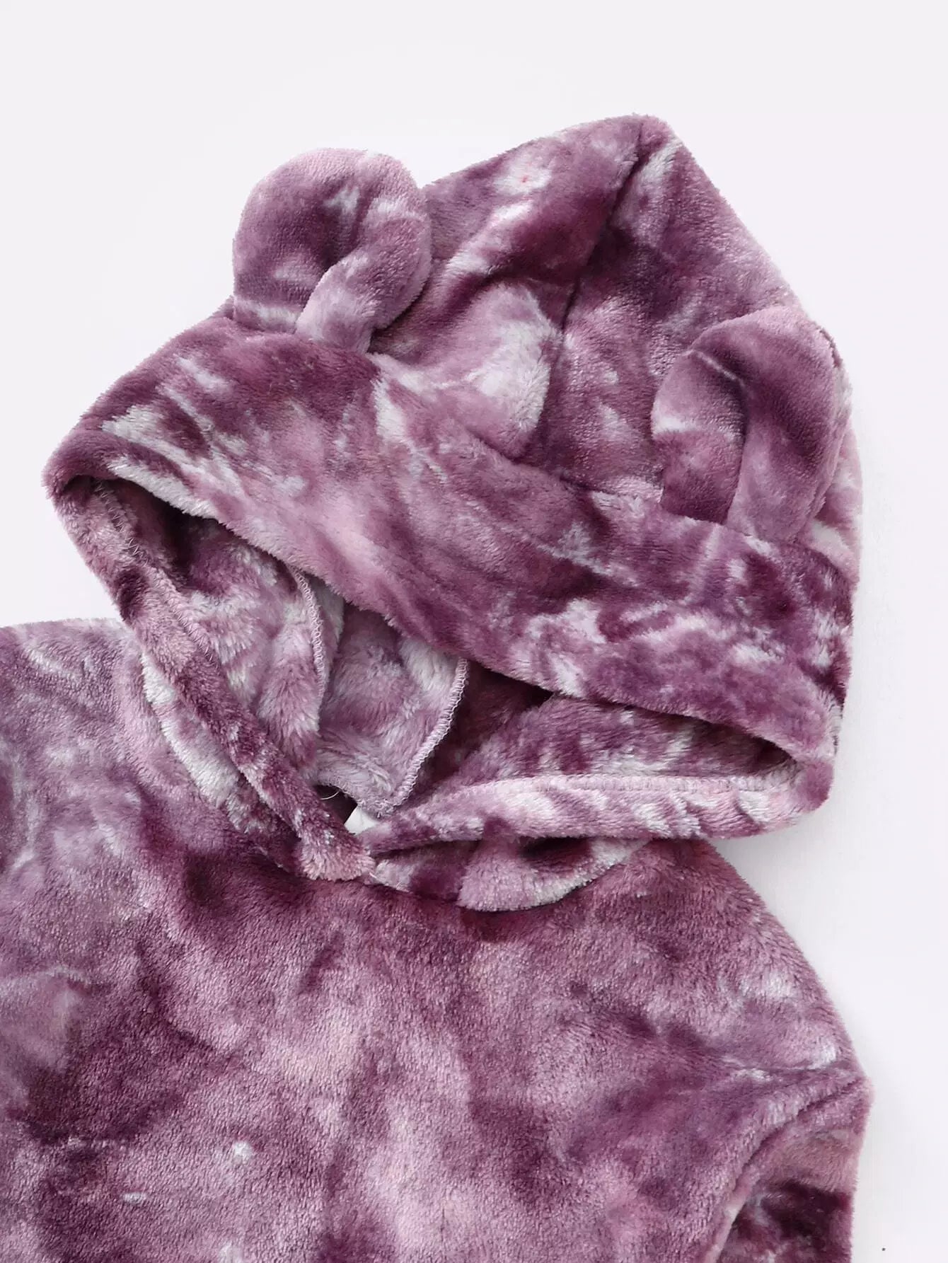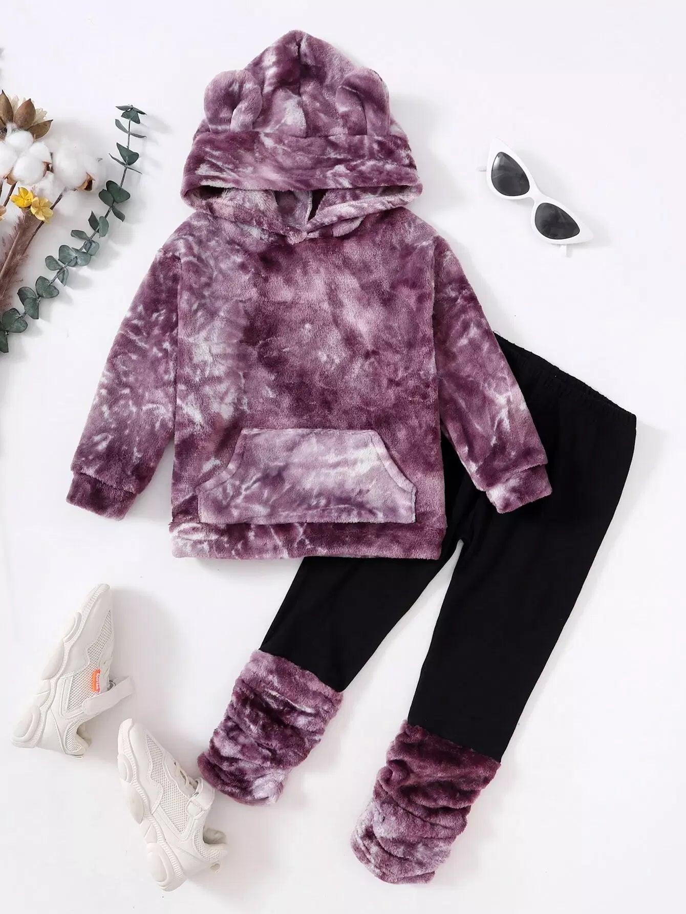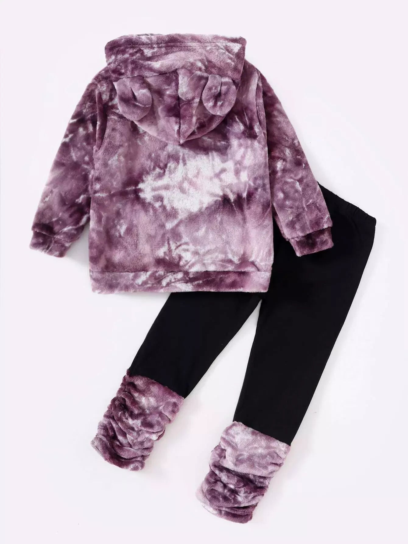 سترة بقبعة فانيلا بتصميم ثلاثي الأبعاد للبنات الصغار مع بنطلون مكشكش