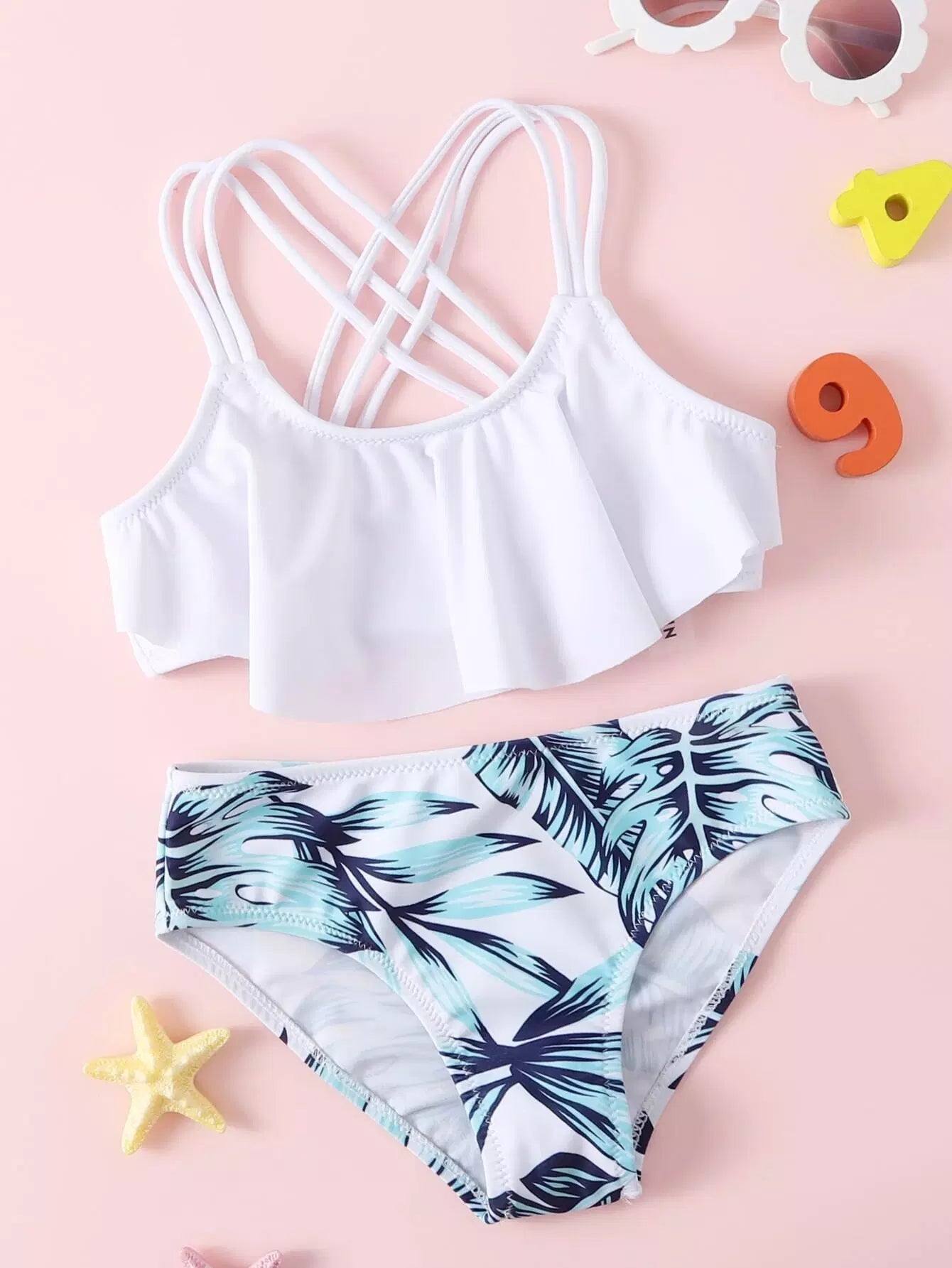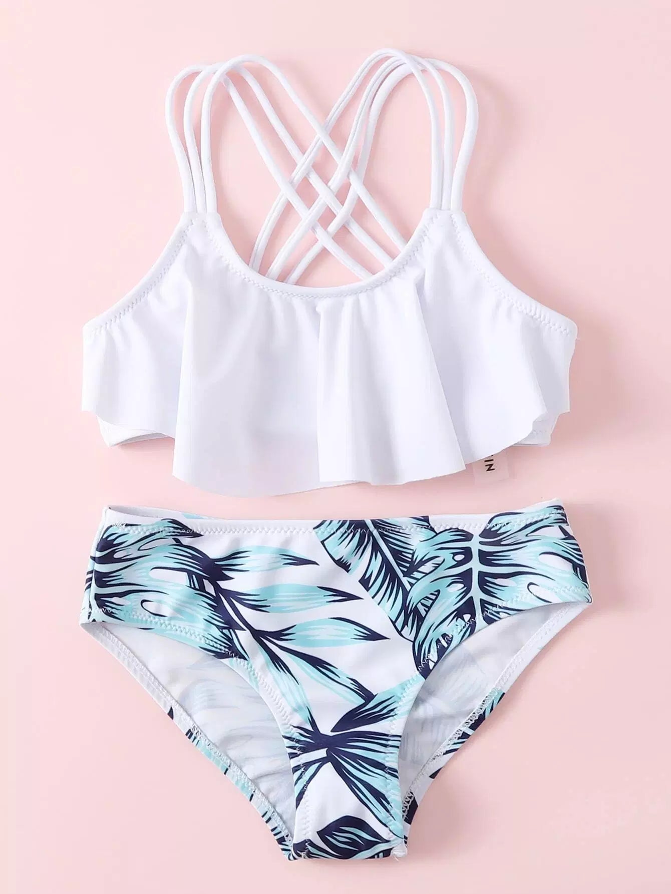 ملابس سباحة بيكيني بيكيني استوائي منقوش للبنات الصغار