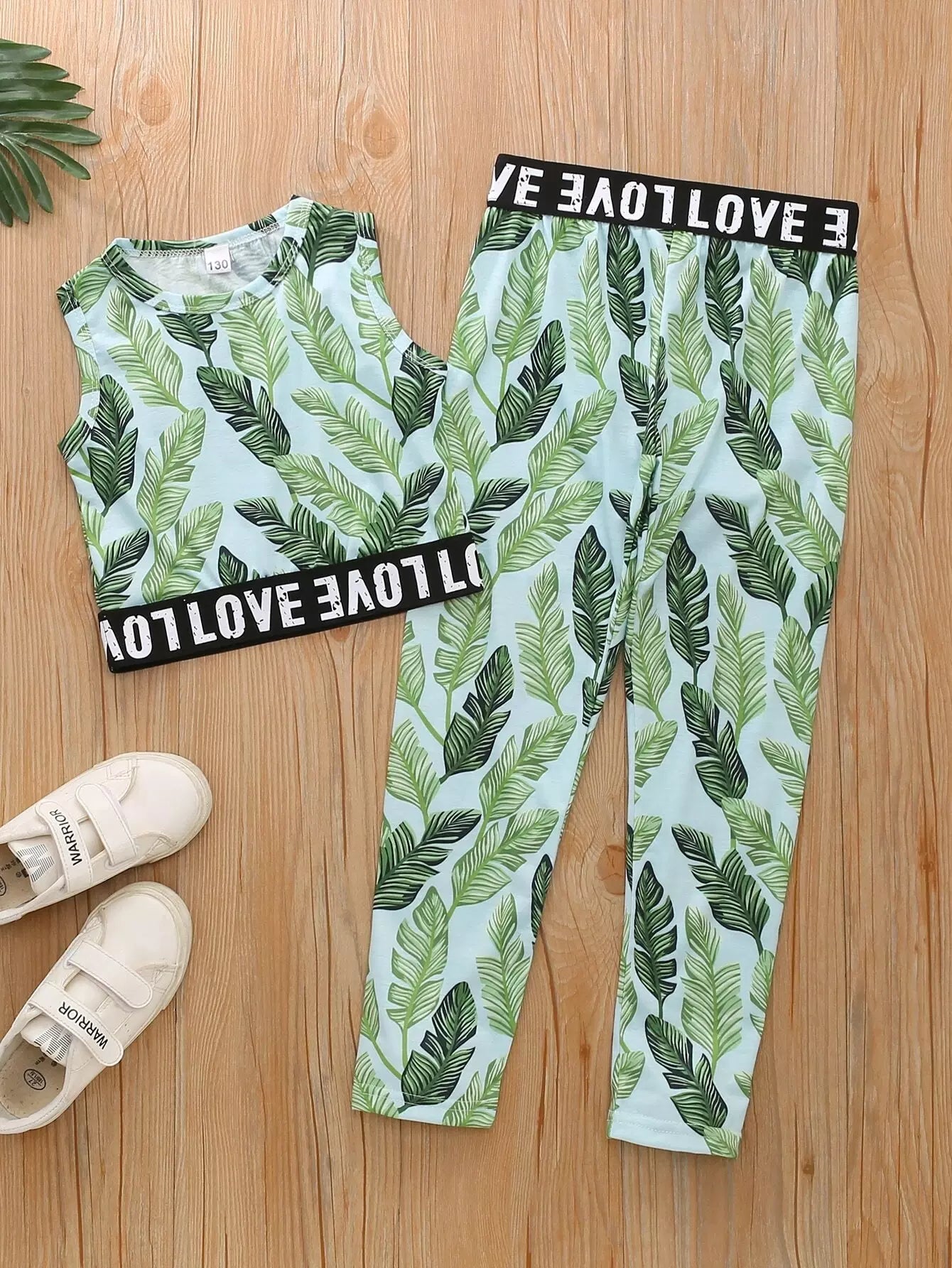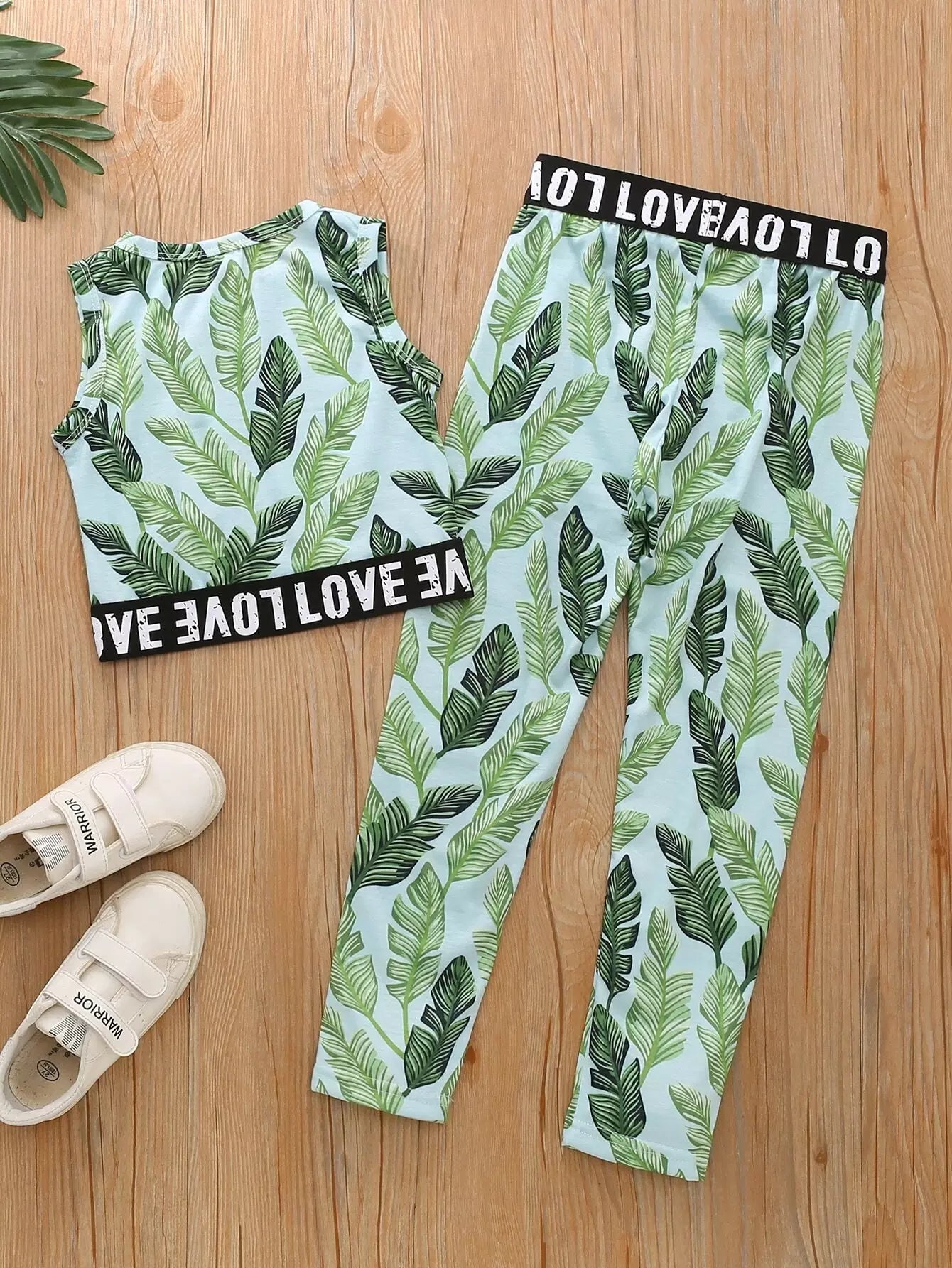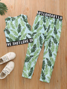 تانك بدون أكمام بطبعة استوائية للبنات الصغار مع بنطال ضيق