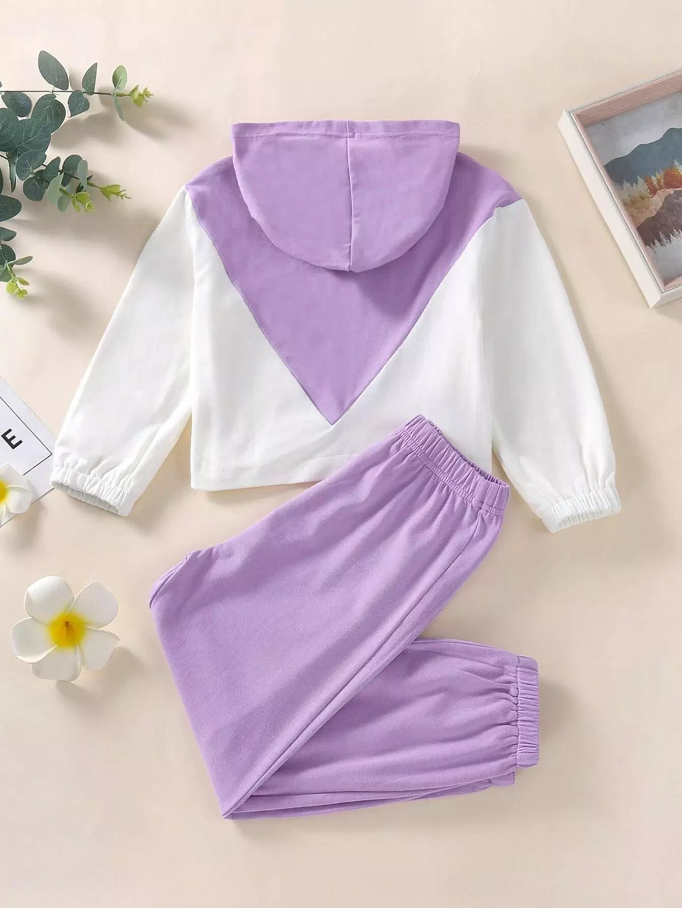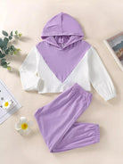 هودي وبنطال رياضي بغطاء رأس وبنطال رياضي بلونين للبنات الصغار