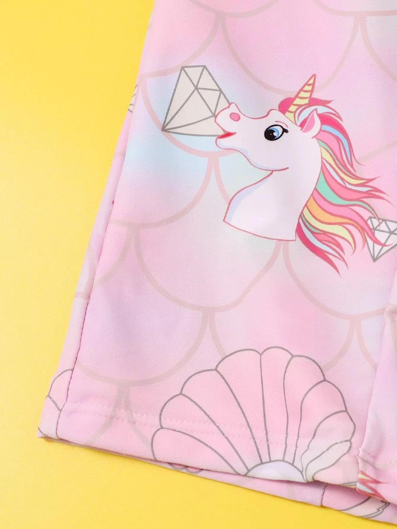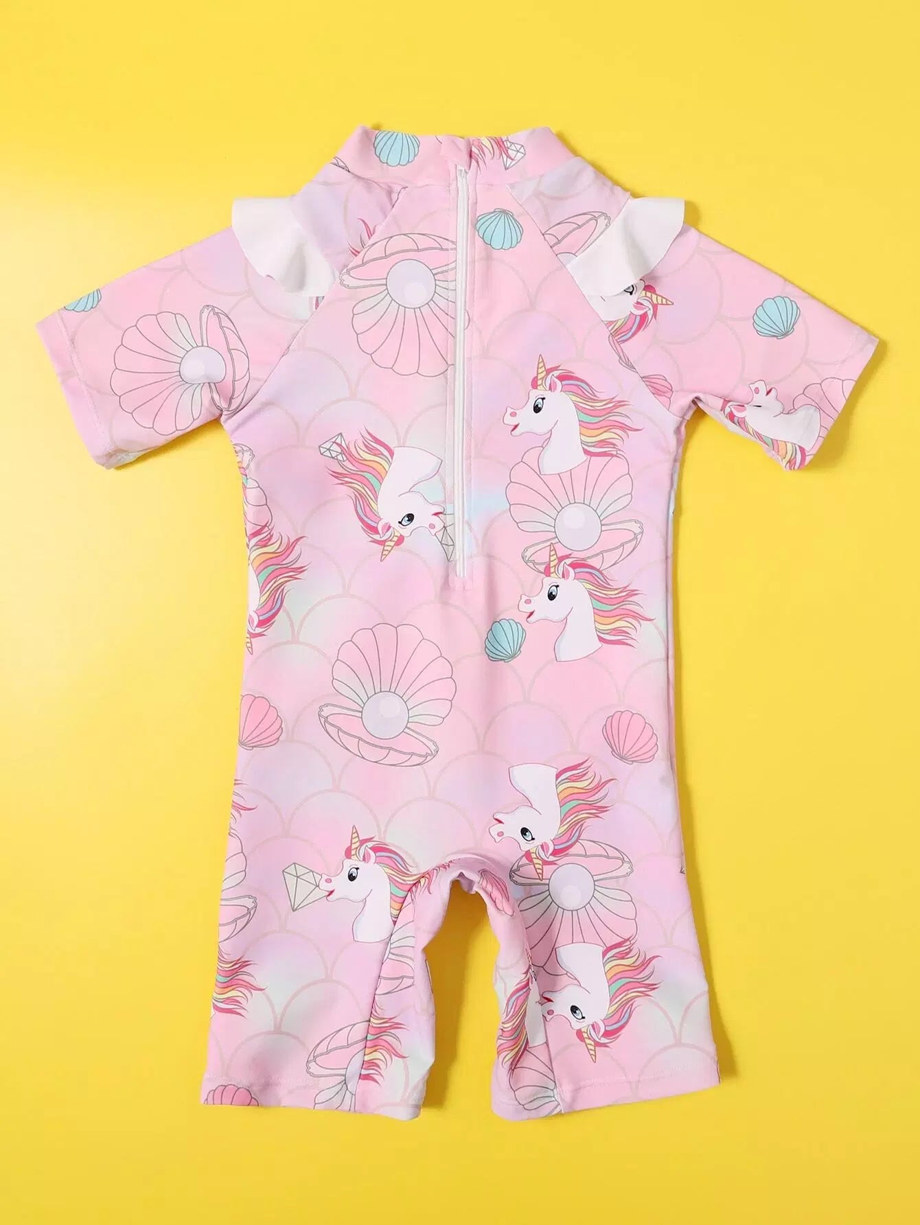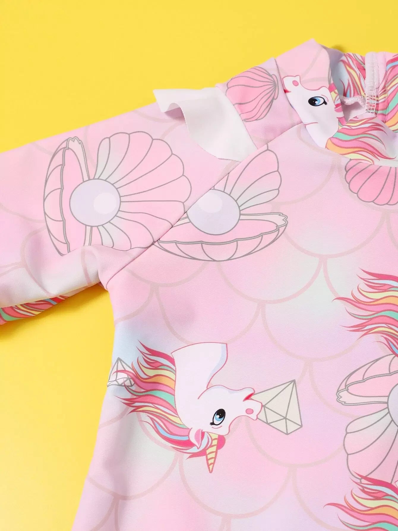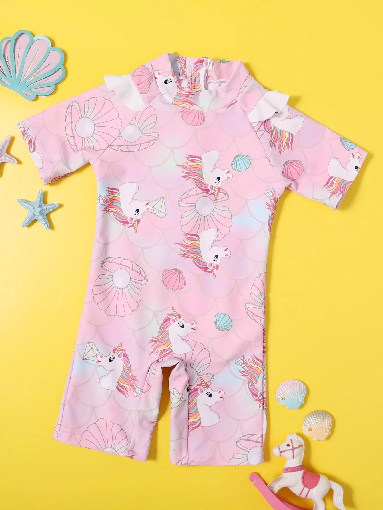 بدلة سباحة بقطعة واحدة جرافيك يونيكورن جرافيك للبنات الصغار