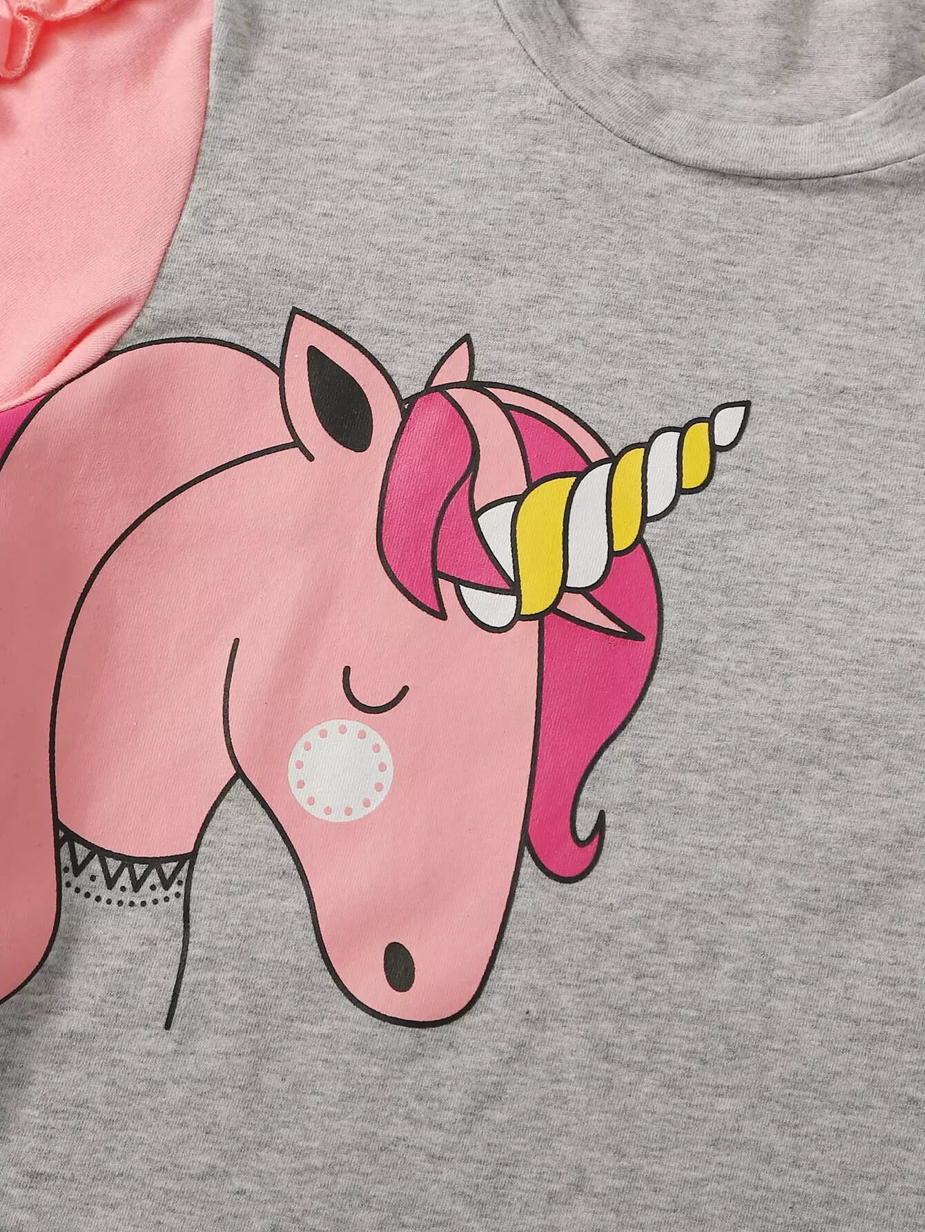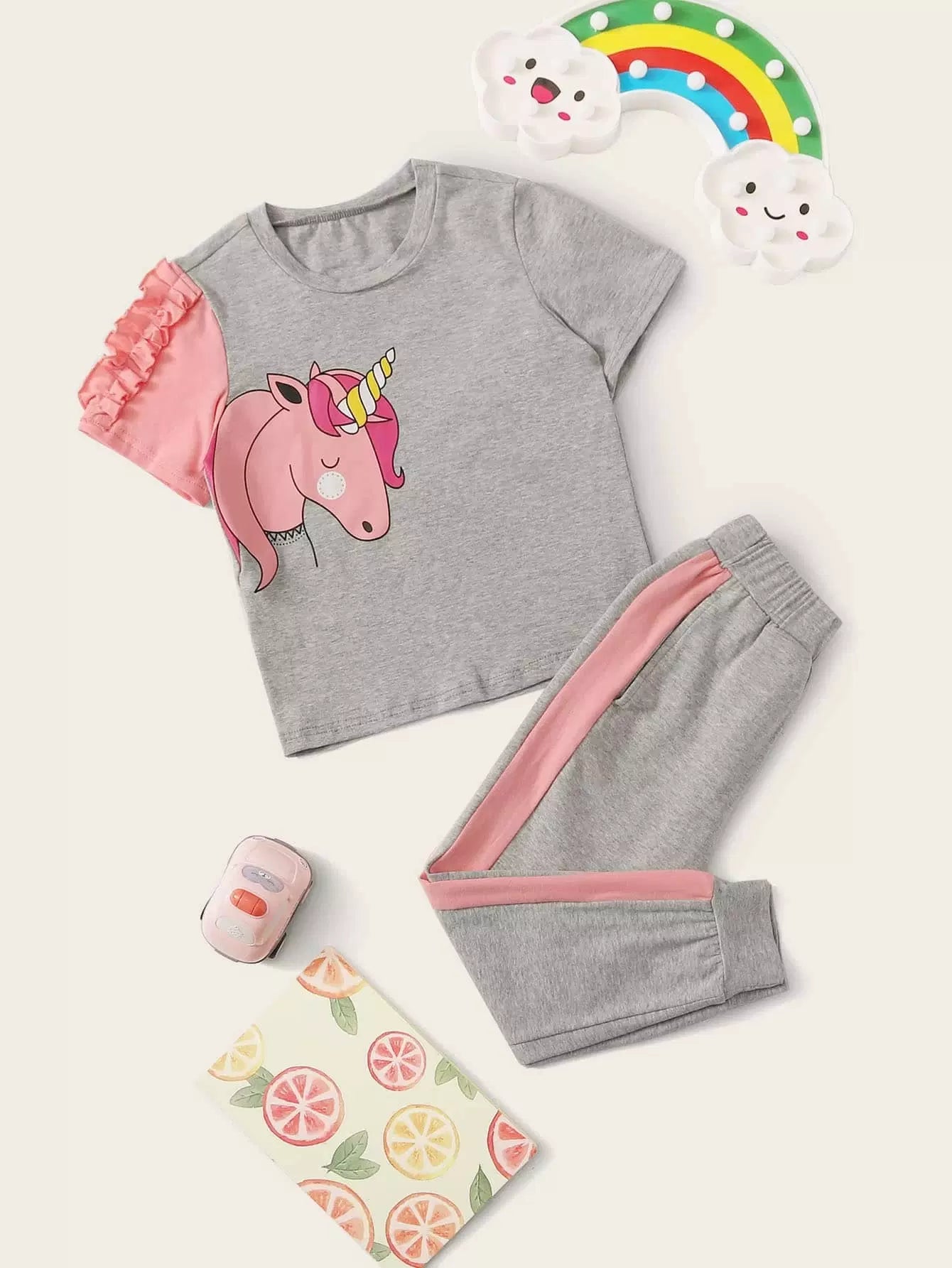 تي شيرت كشكش بطبعة يونيكورن للبنات الصغار مع بنطال رياضي
