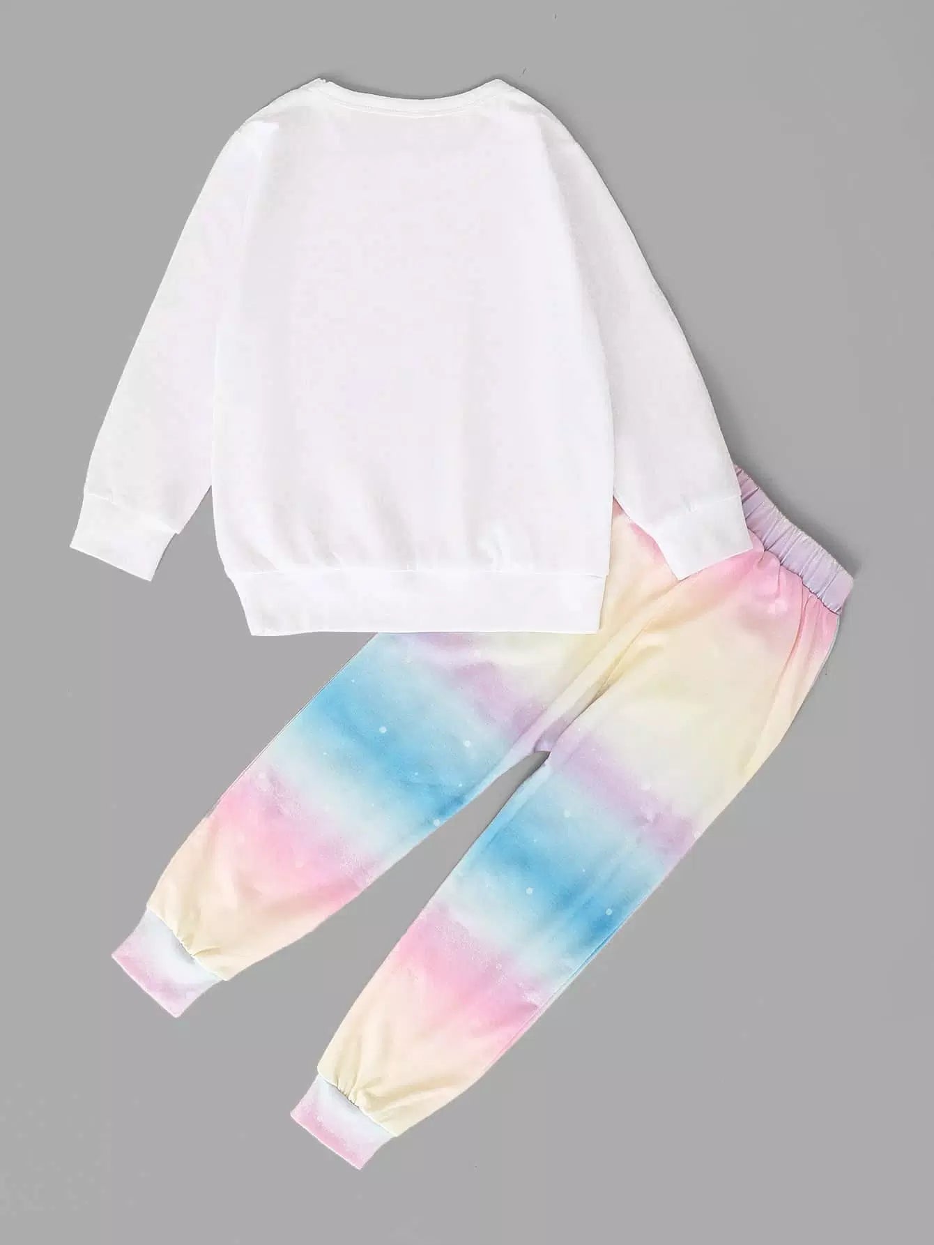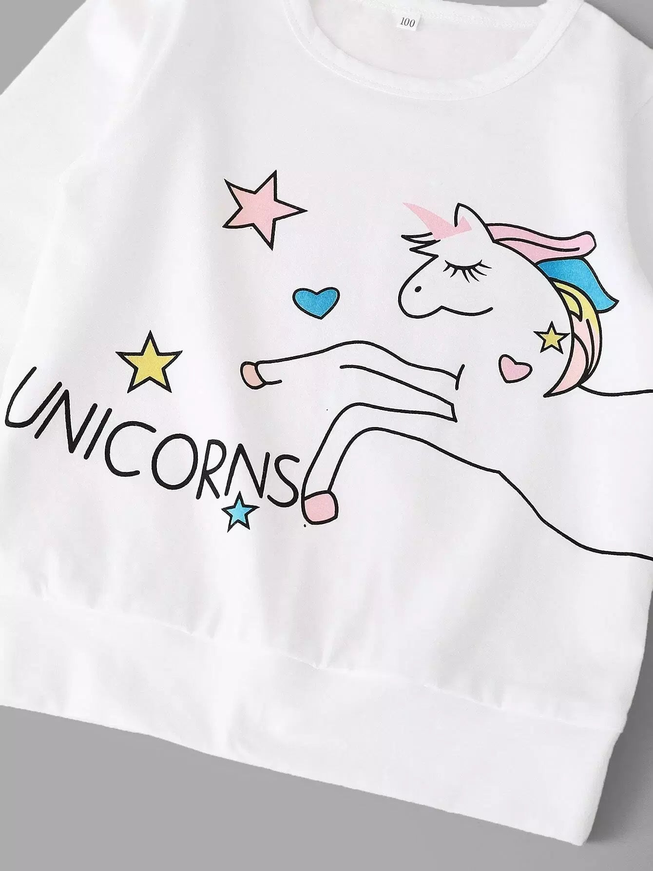 سويت شيرت وبنطال رياضي بطبعة يونيكورن للبنات الصغار