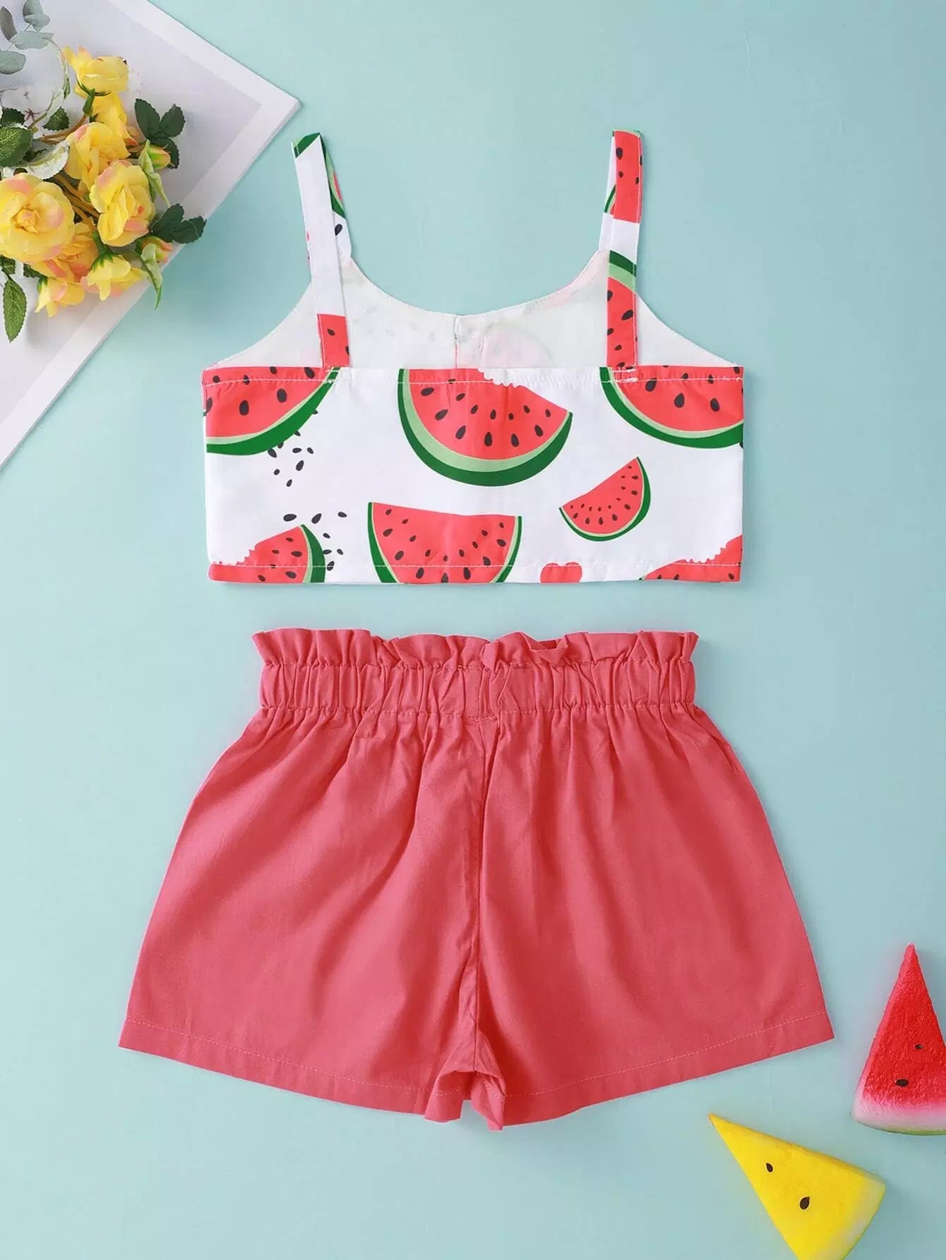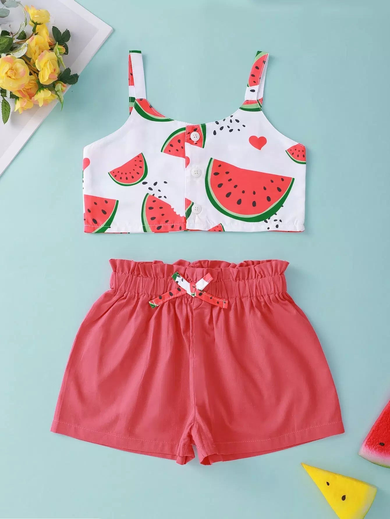 بلوزة كامي بطيخ للبنات الصغار مع شورت قصير