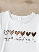 تي شيرت بأكمام قصيرة وطبعة قلب لفتاة صغيرة وشورت على شكل كيس ورقي بدون حزام