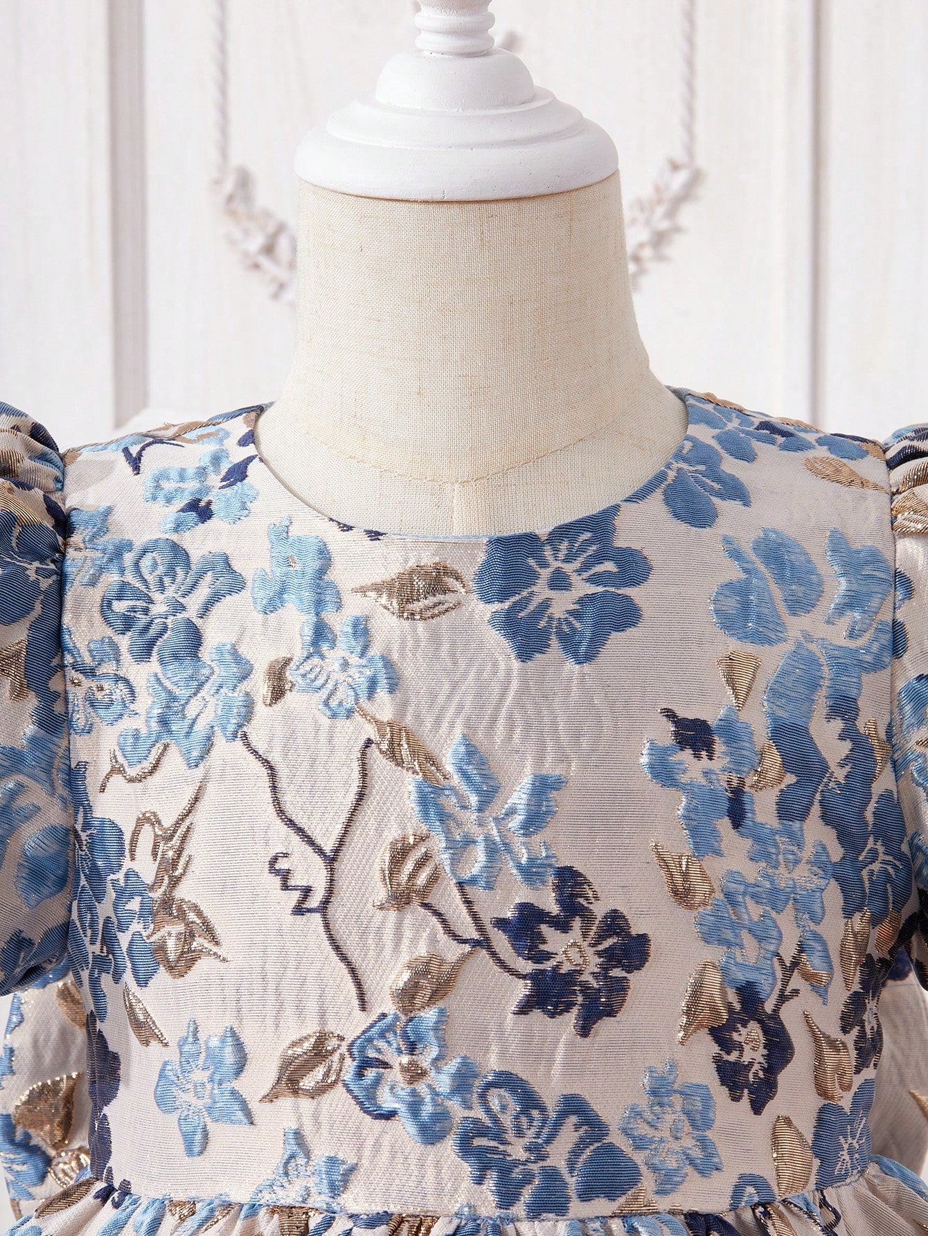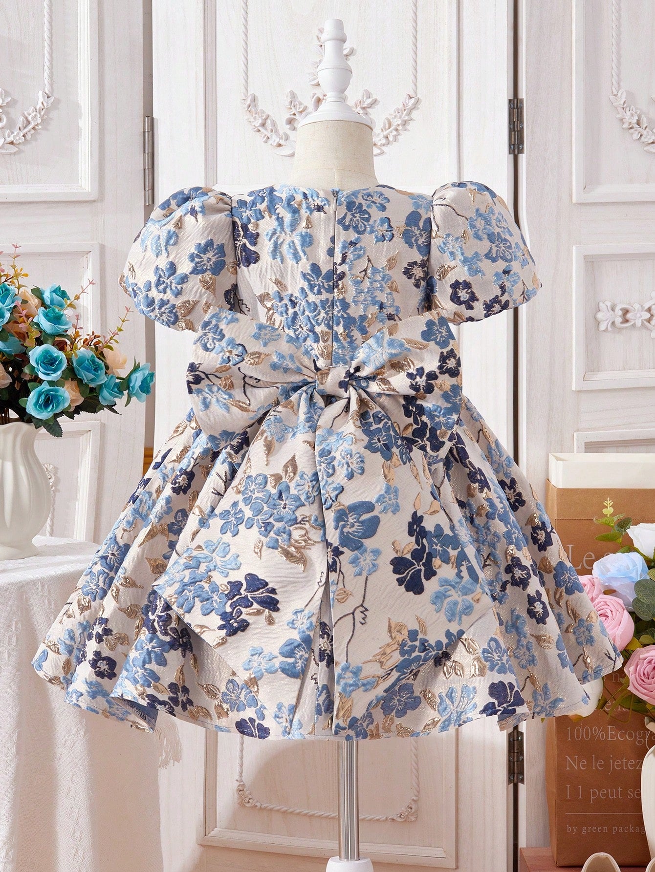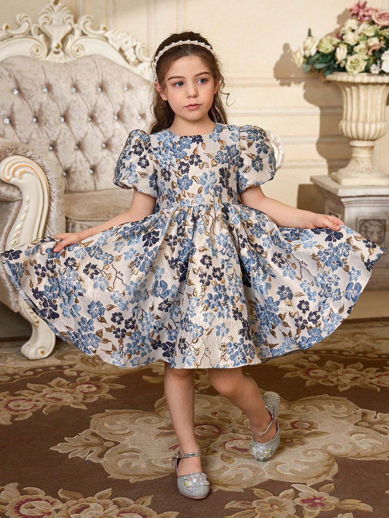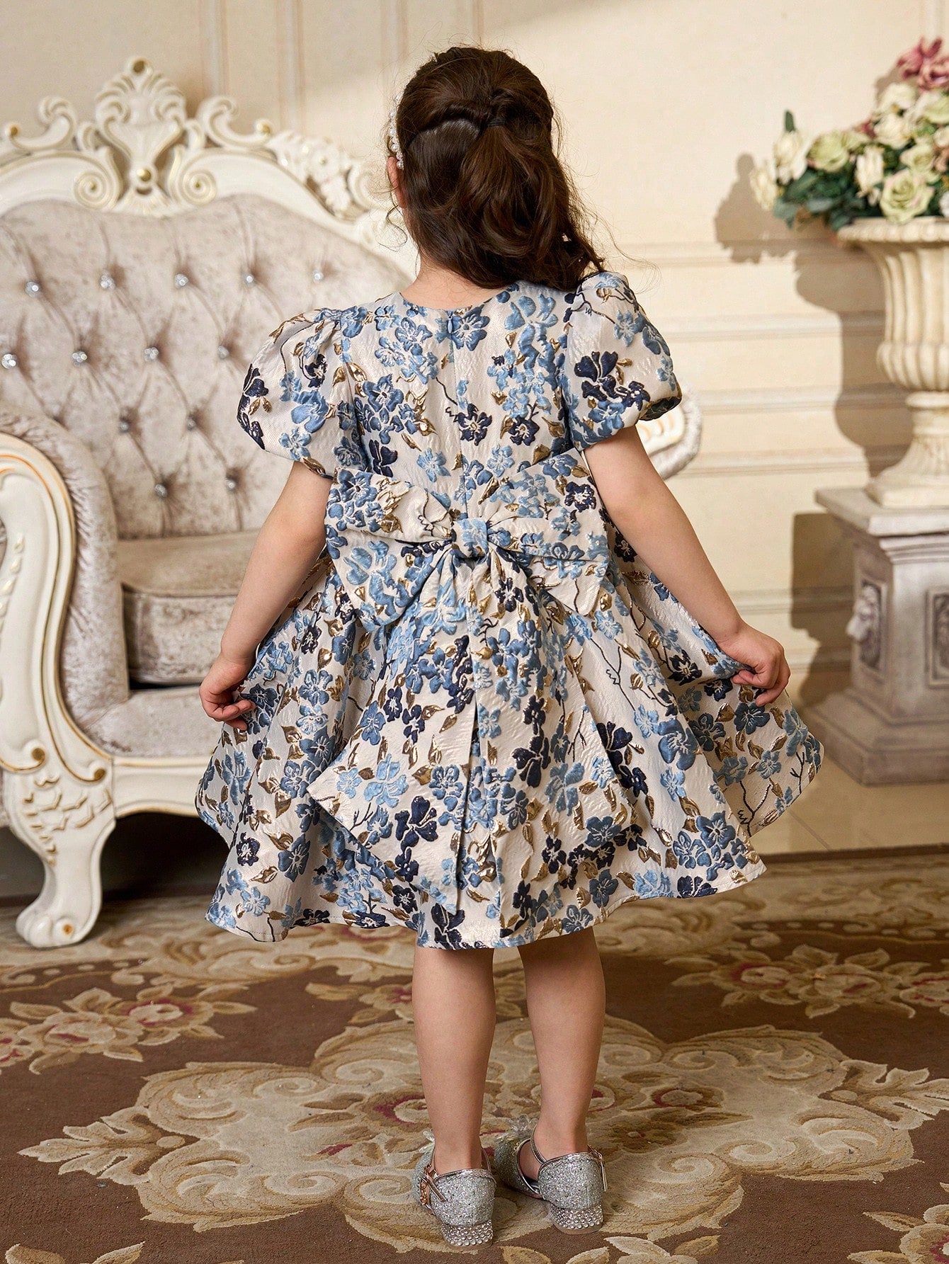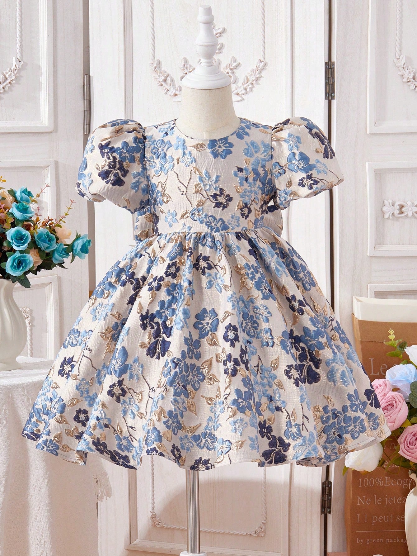 فستان قصير الأكمام مطبوع عليه زهور، مناسب للارتداء اليومي، بسيط وأنيق لفتاة صغيرة