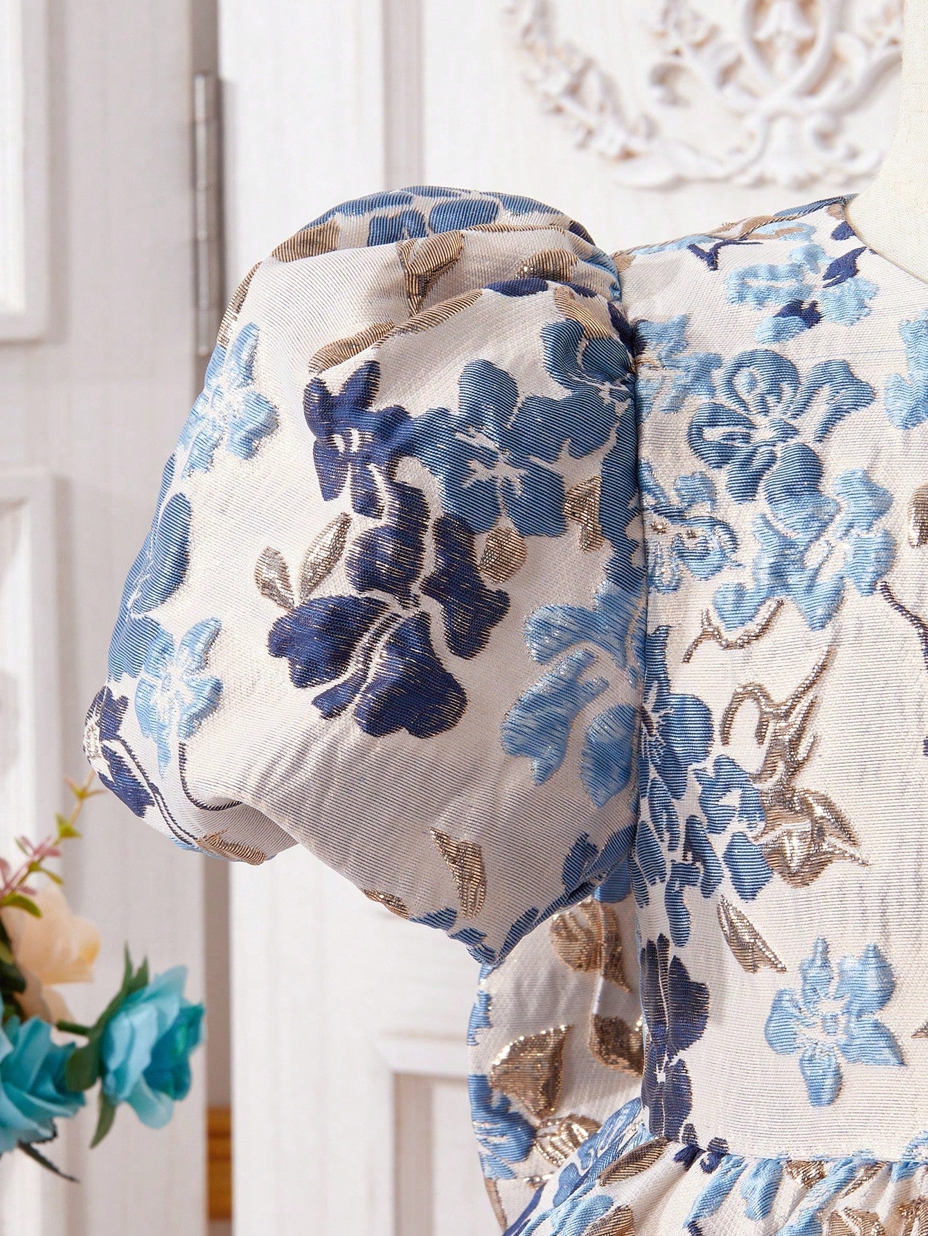 Young Girl Simple Fashion Casual Daily Floral Print Short Sleeve Dress