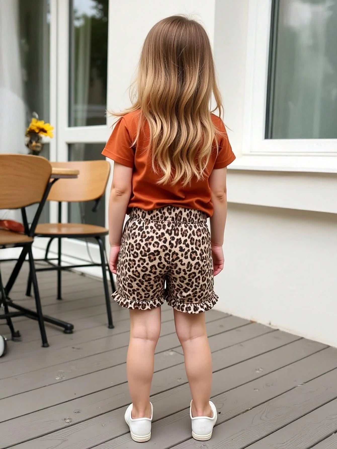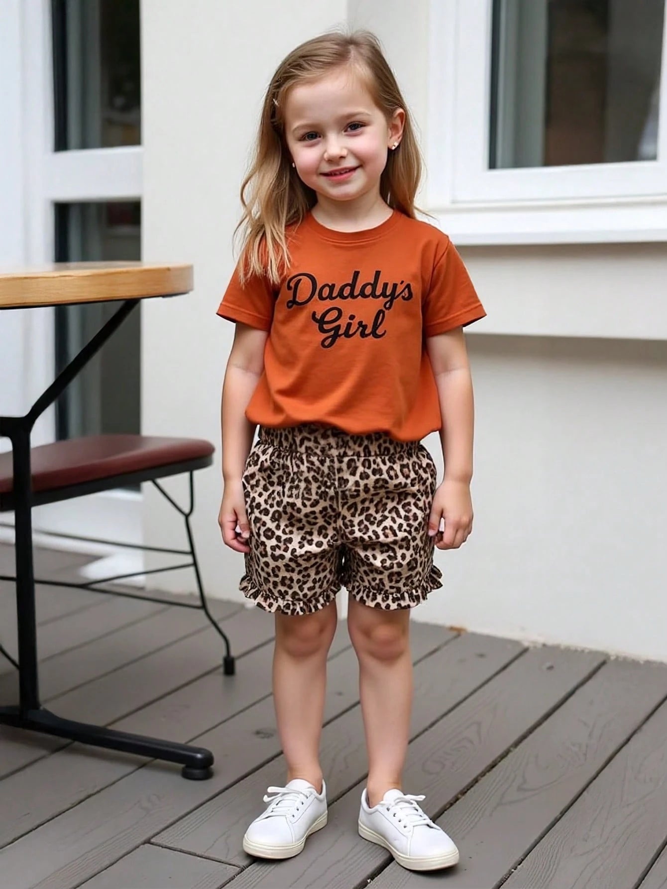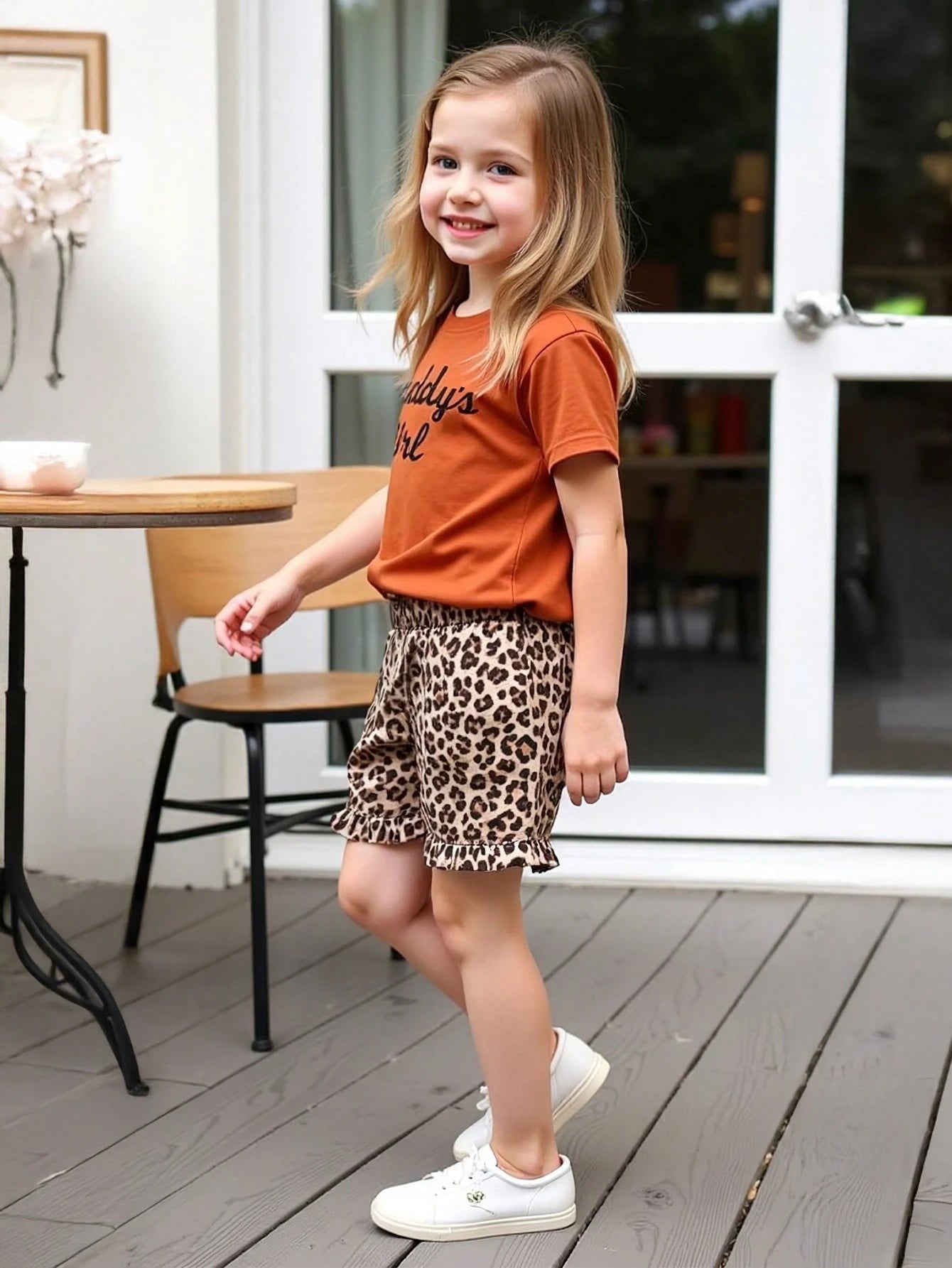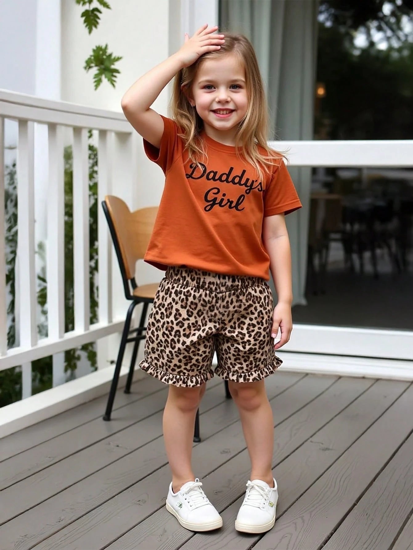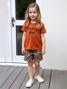 Young Girl Summer New Letter Print T-Shirt + Fashionable Leopard Print Shorts Set
