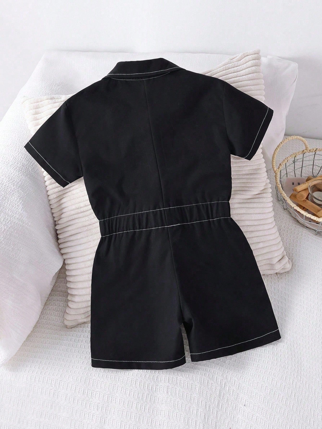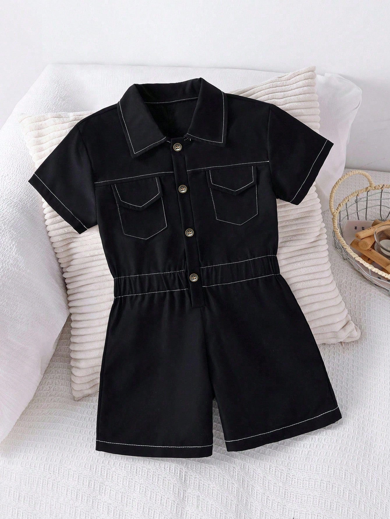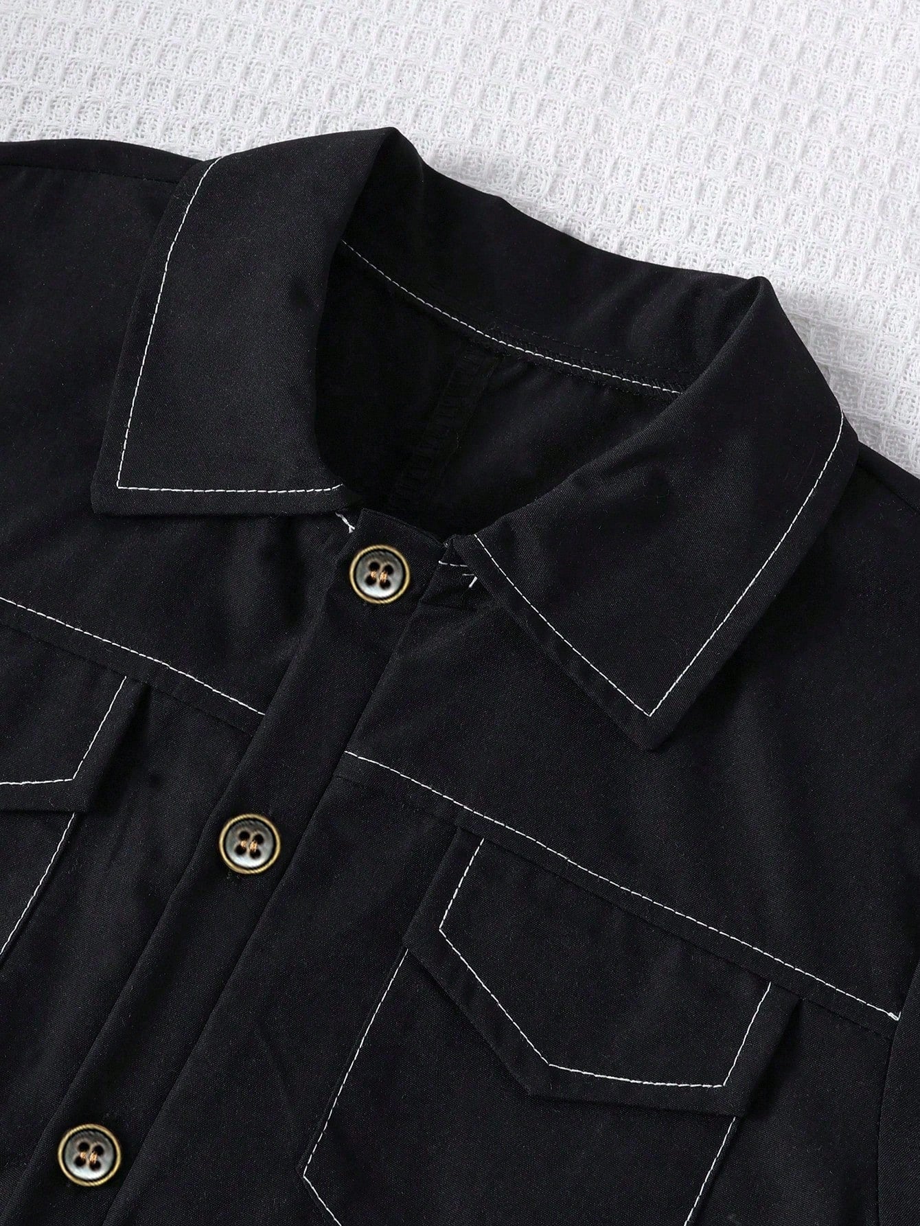 1 Set Young Boy Casual Stylish Woven Jumpsuit, Comfortable Fashionable Lapel Button Front Shirt With