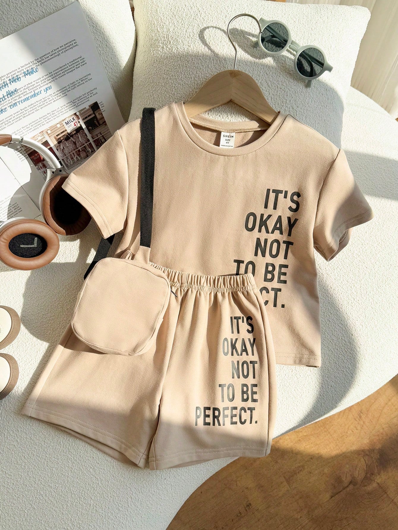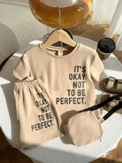 3 قطع/مجموعة ملابس قصيرة فضفاضة للأولاد الصغار كاجوال بتصميم الشارع متعدد الاستخدامات بطباعة حروف وأكتاف منسدلة ورقبة دائرية وكاكي