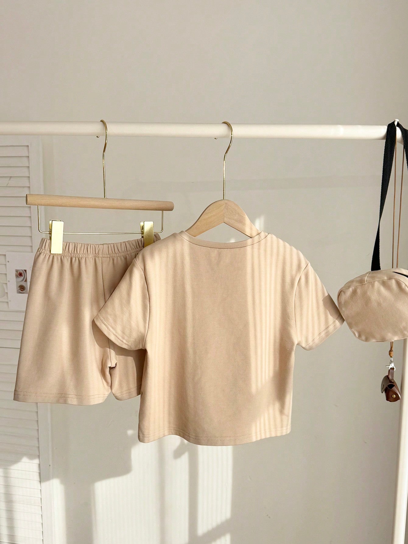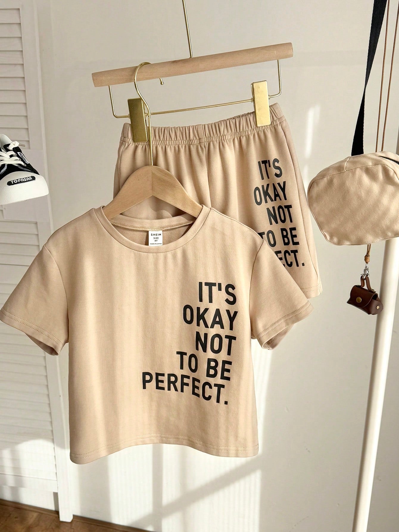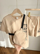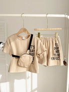 3pcs/Set Young Boys Casual Street Style Versatile Letter Print Loose Drop Shoulder Crew Neck Khaki Short