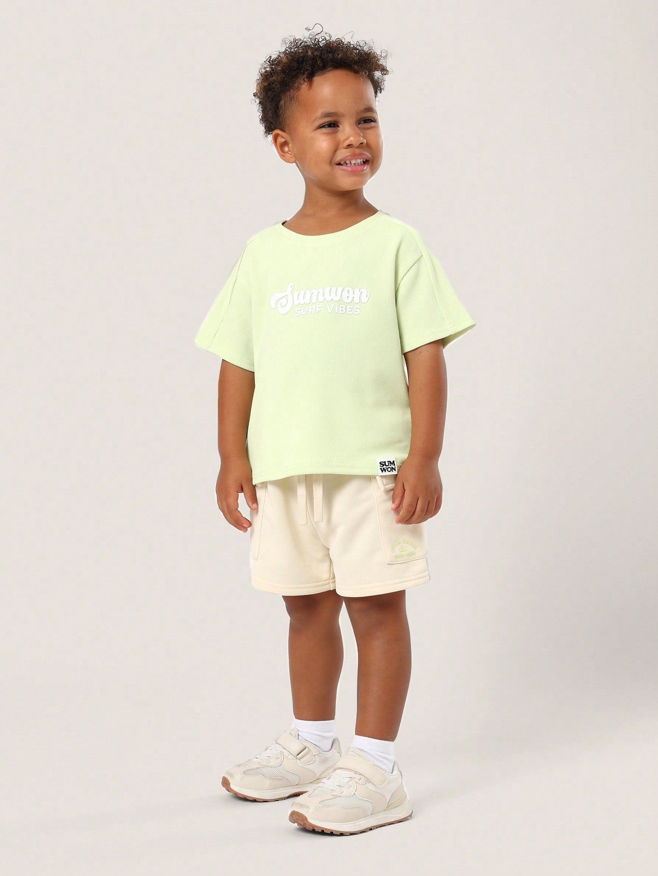 تي شيرت صيفي من SUMWON للأطفال بتصميم Surf Vibes، طقم رياضي منسق، ملابس رياضية كاجوال للعطلات على الشاطئ للأولاد
