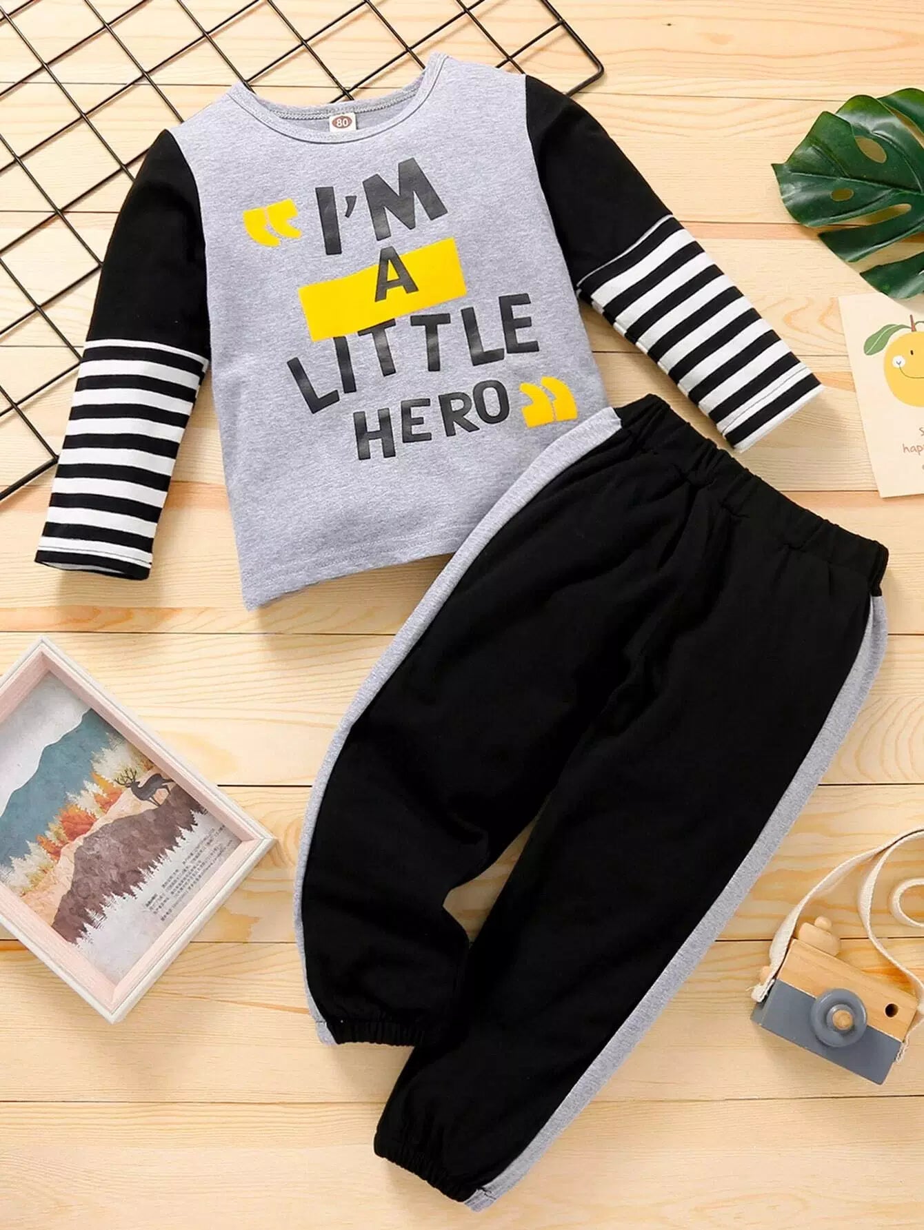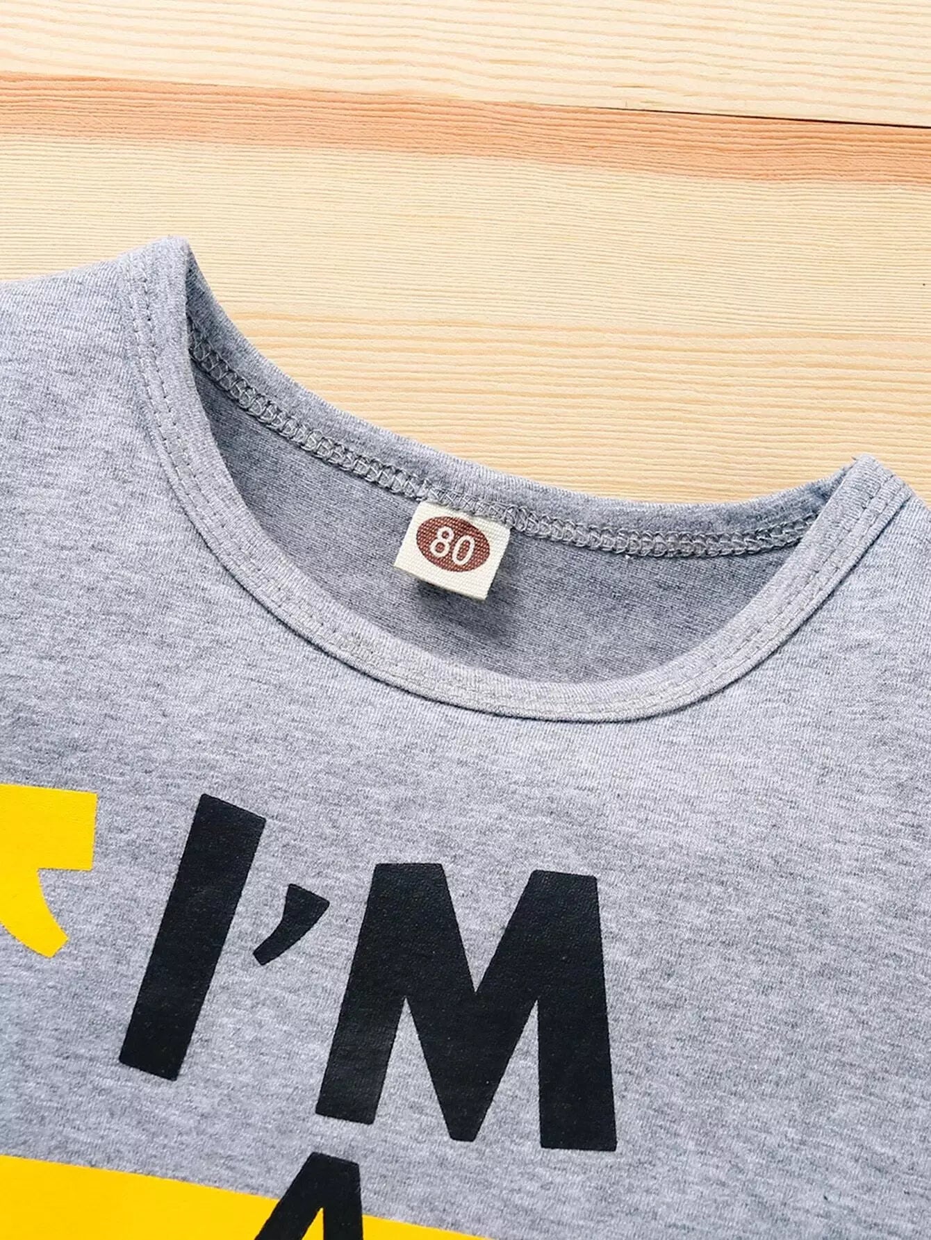 تي شيرت جرافيك بشعار 2 في 1 للأولاد الصغار مع بنطال رياضي