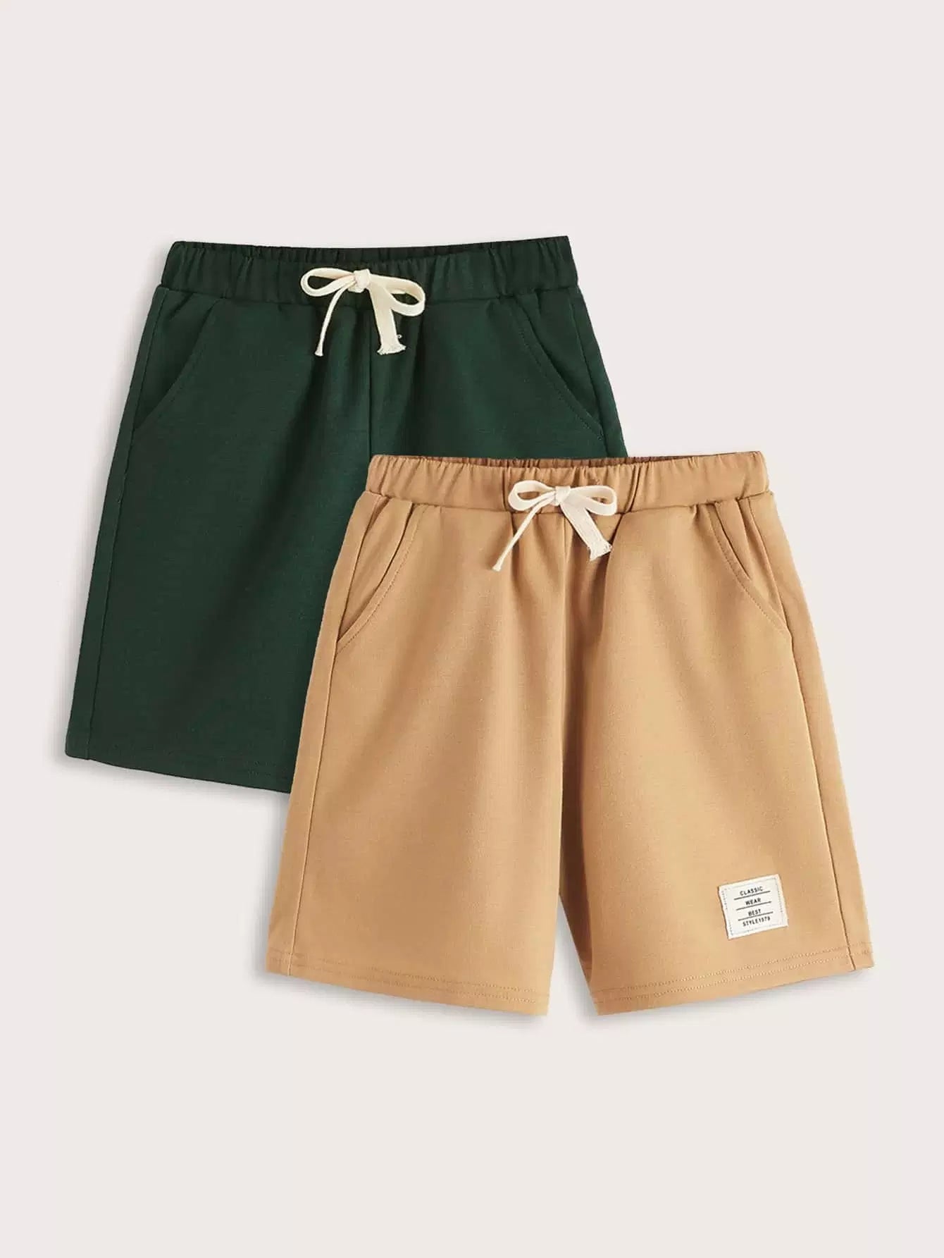 شورت بخصر مرقع برباط مرقع للأولاد الصغار 2 قطعة