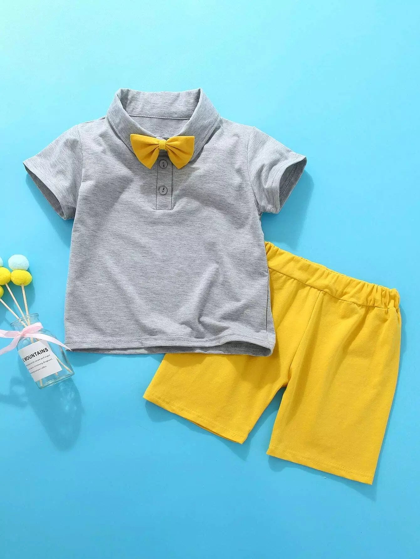 تي شيرت بولو للأطفال الصغار مزين بعقدة مع شورت قصير