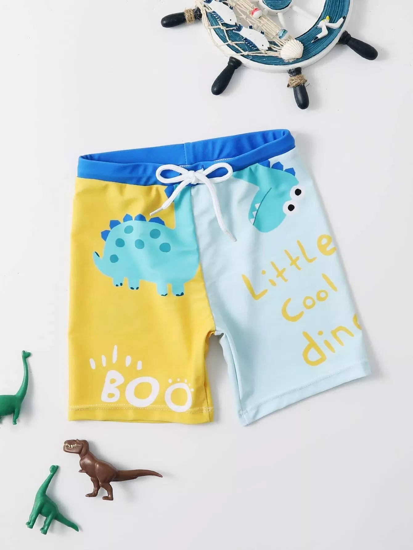 شورت سباحة بطبعة ديناصور كرتوني للأولاد الصغار