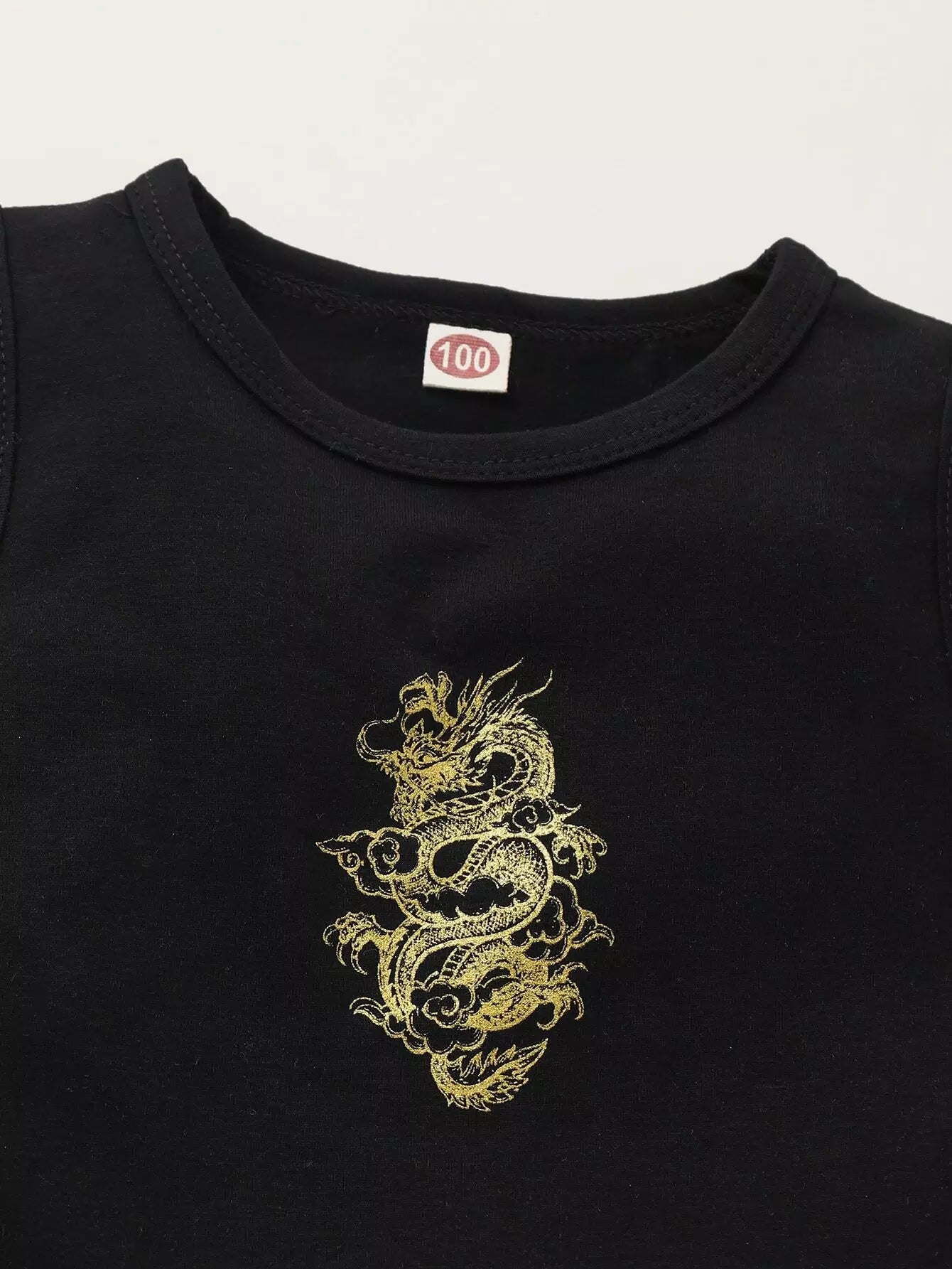 الأطفال - قميص وسروال قصير بدون أكمام بطباعة التنين الصيني للأطفال الصغار