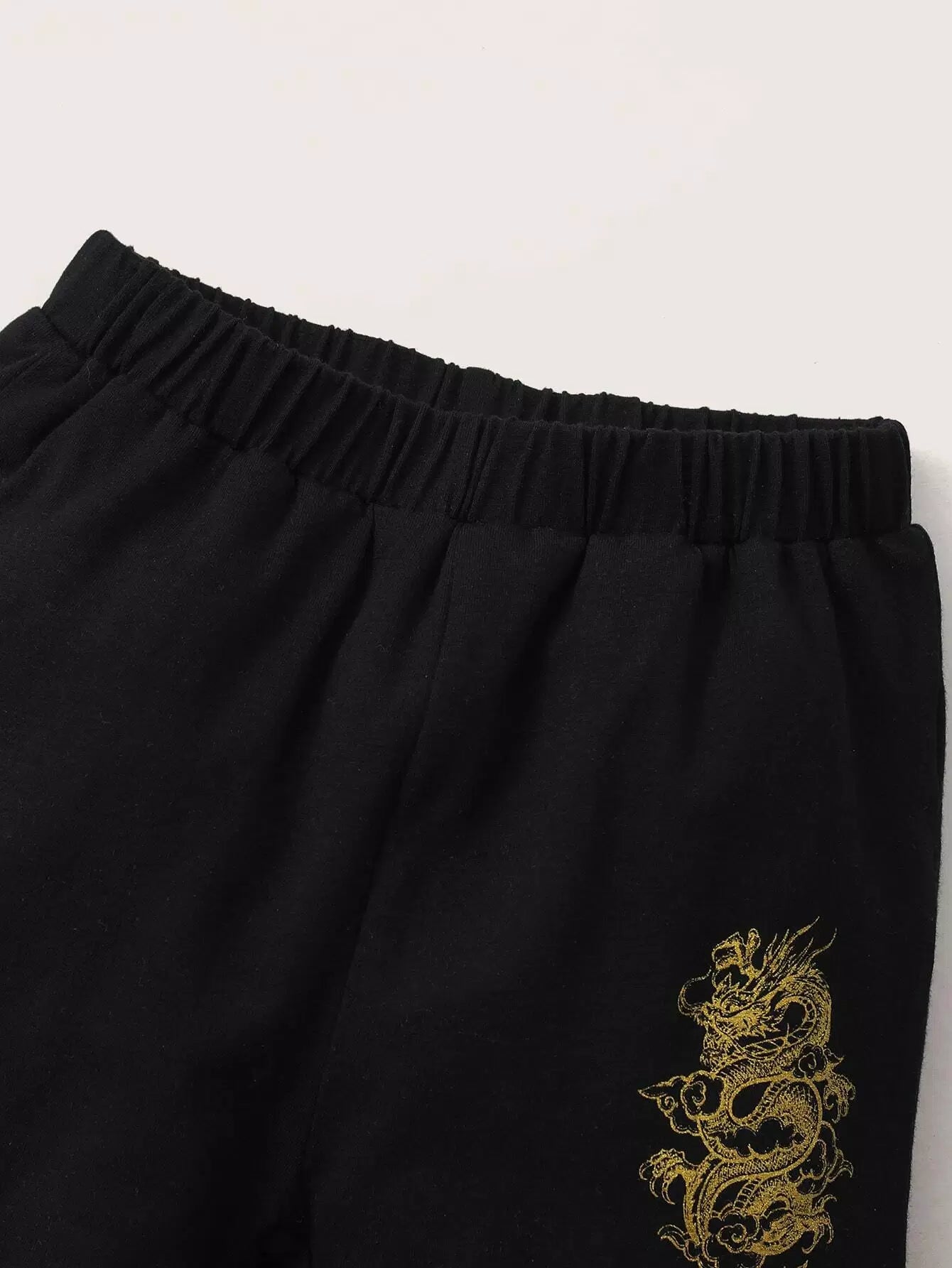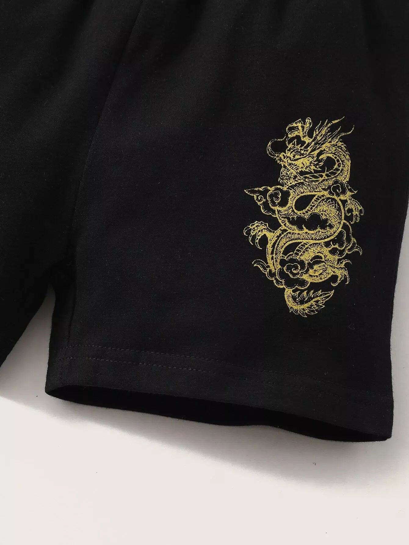 قميص بدون أكمام وشورت قصير بطبعة تنين صيني للأولاد الصغار