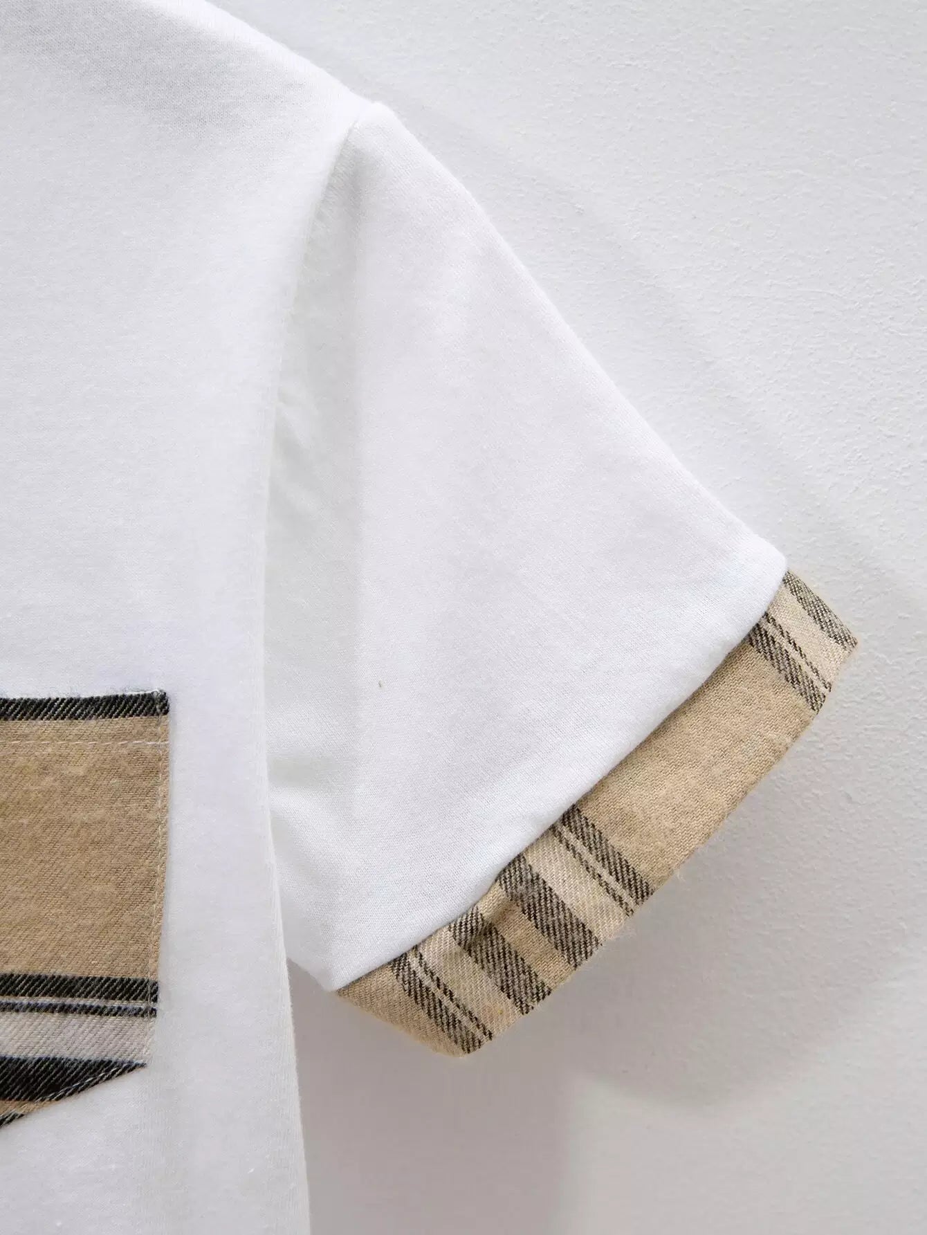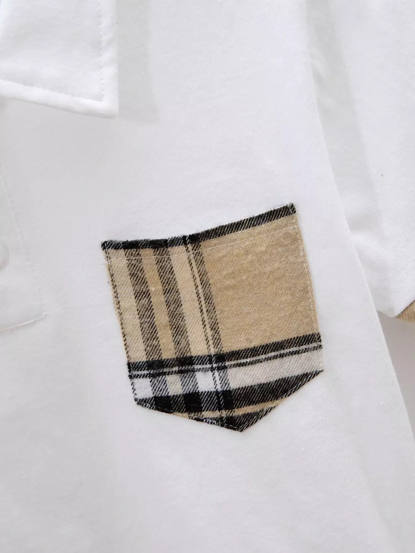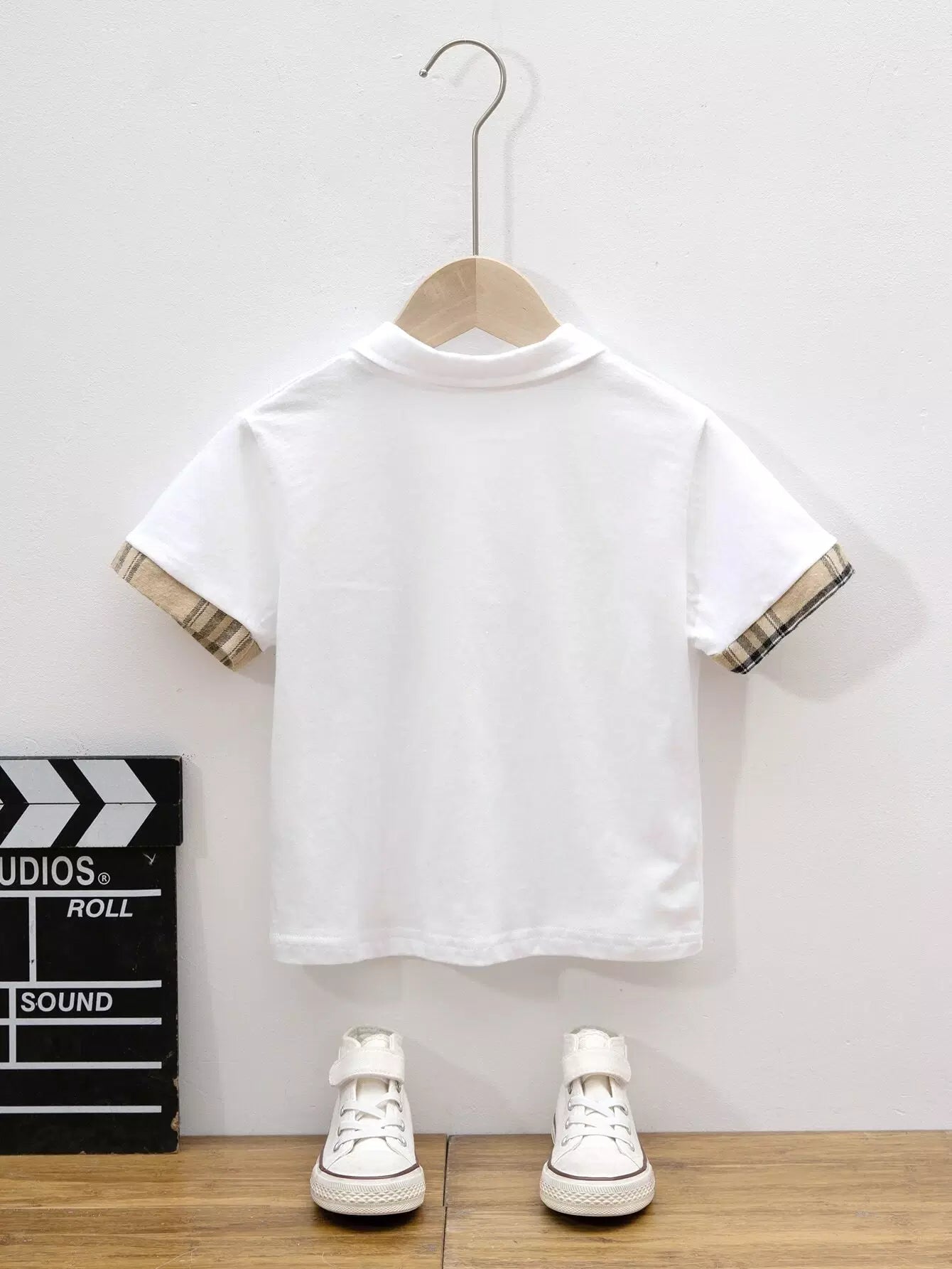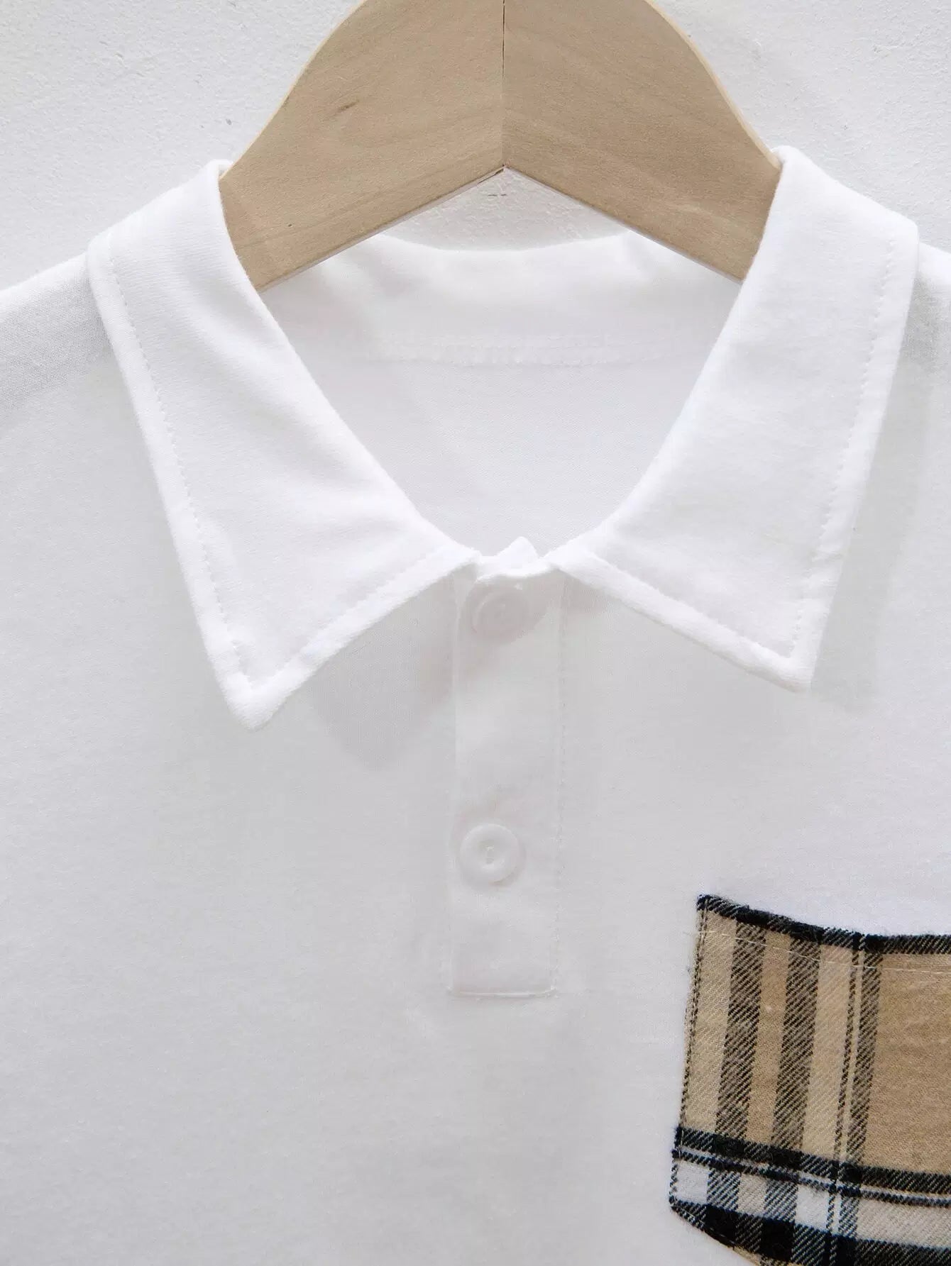 قميص بولو بجيب منقوش بلون مغاير للأولاد الصغار