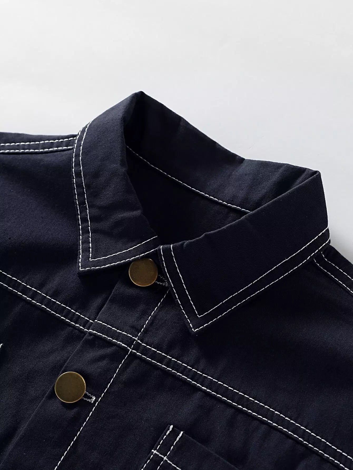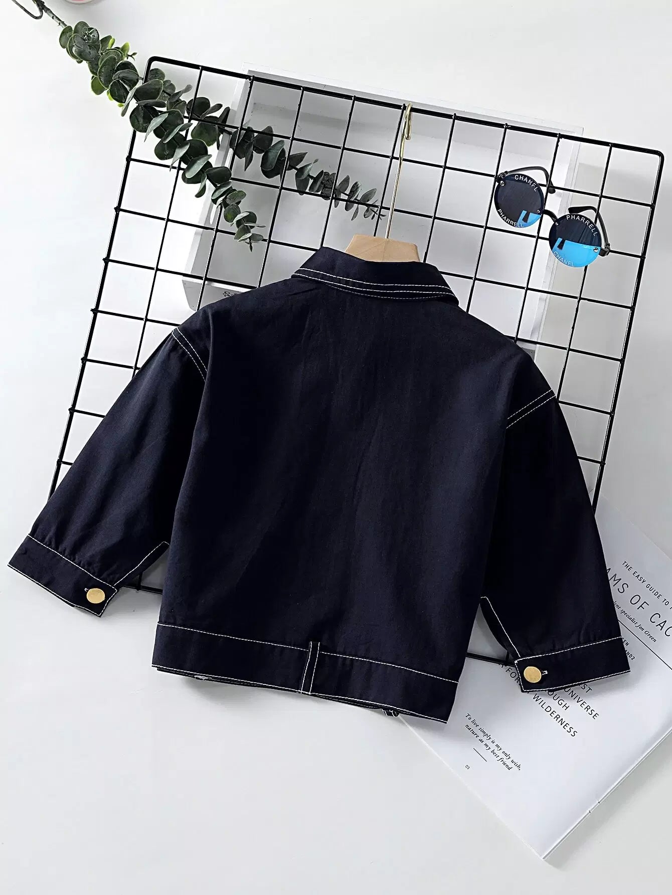 جاكيت أطفال صغار جاكيت بجيوب مزدوجة بخياطة علوية بلون مغاير