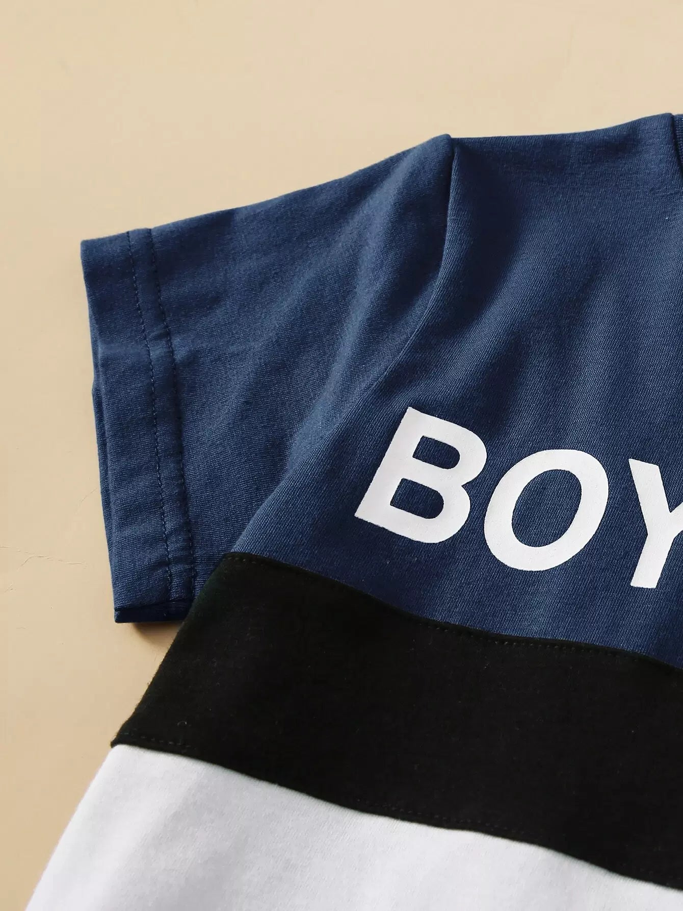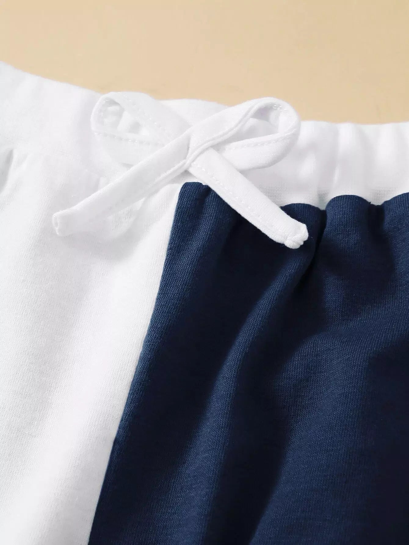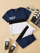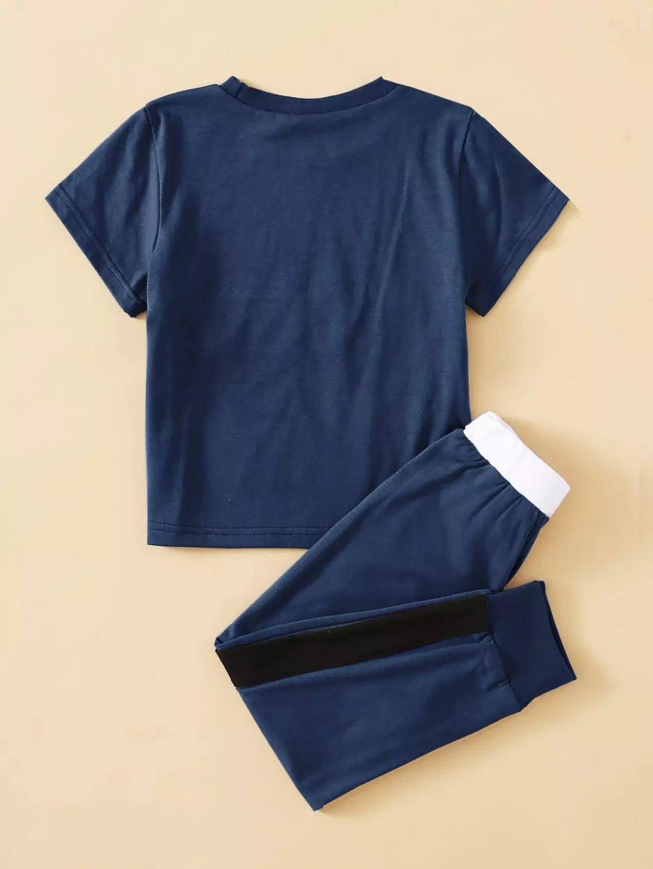 تيشيرت قص وخياطة برسومات حروف للأولاد الصغار مع بنطال رياضي بعقدة