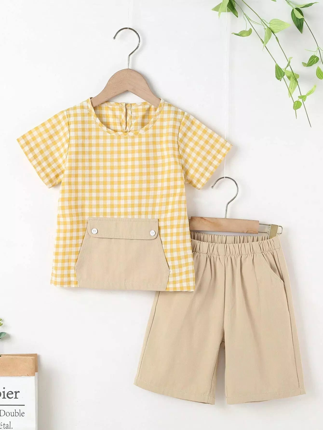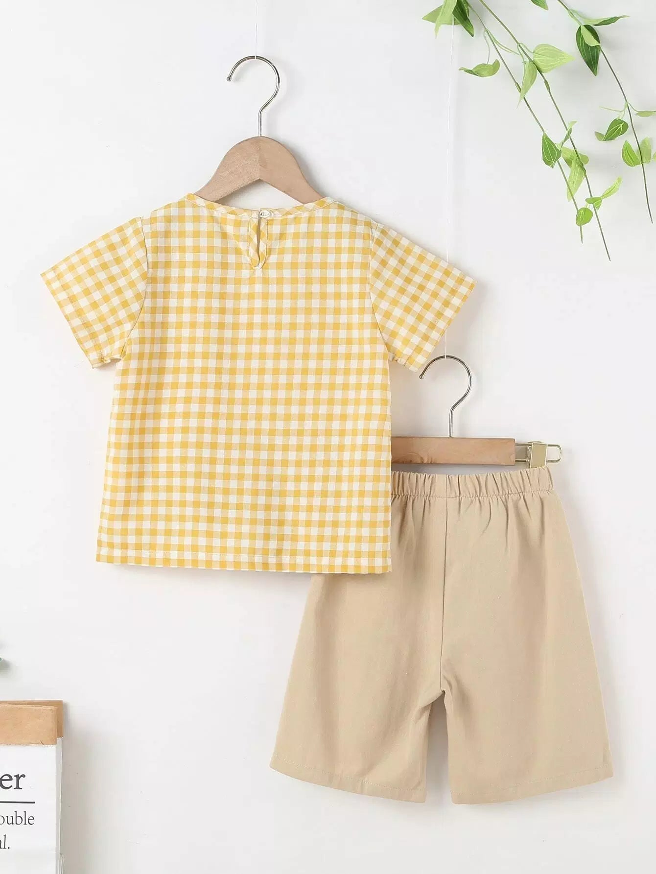 بلوزة بجيب قطني بغطاء من القماش القطني للأولاد الصغار مع شورت برمودا
