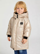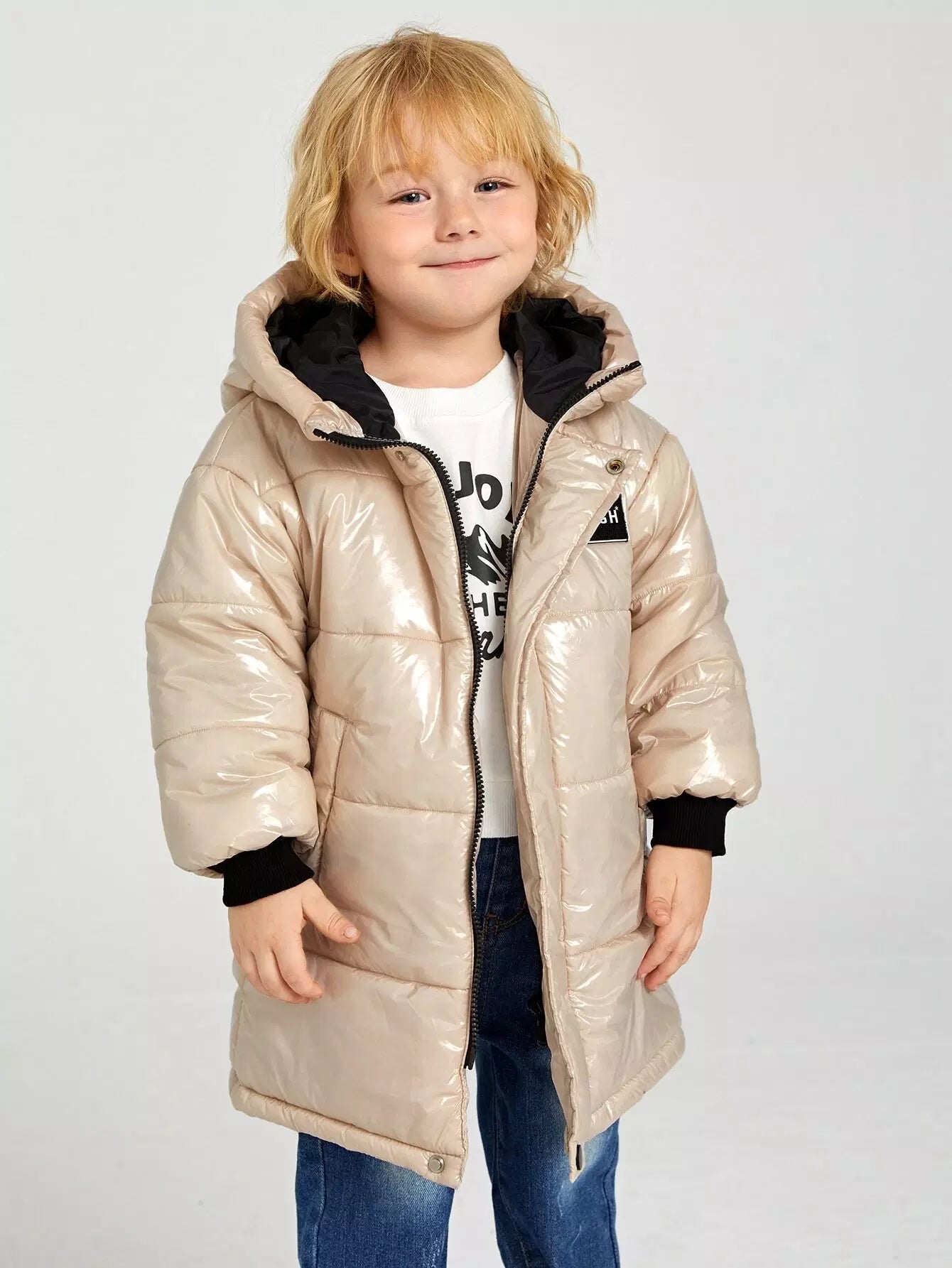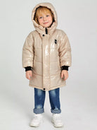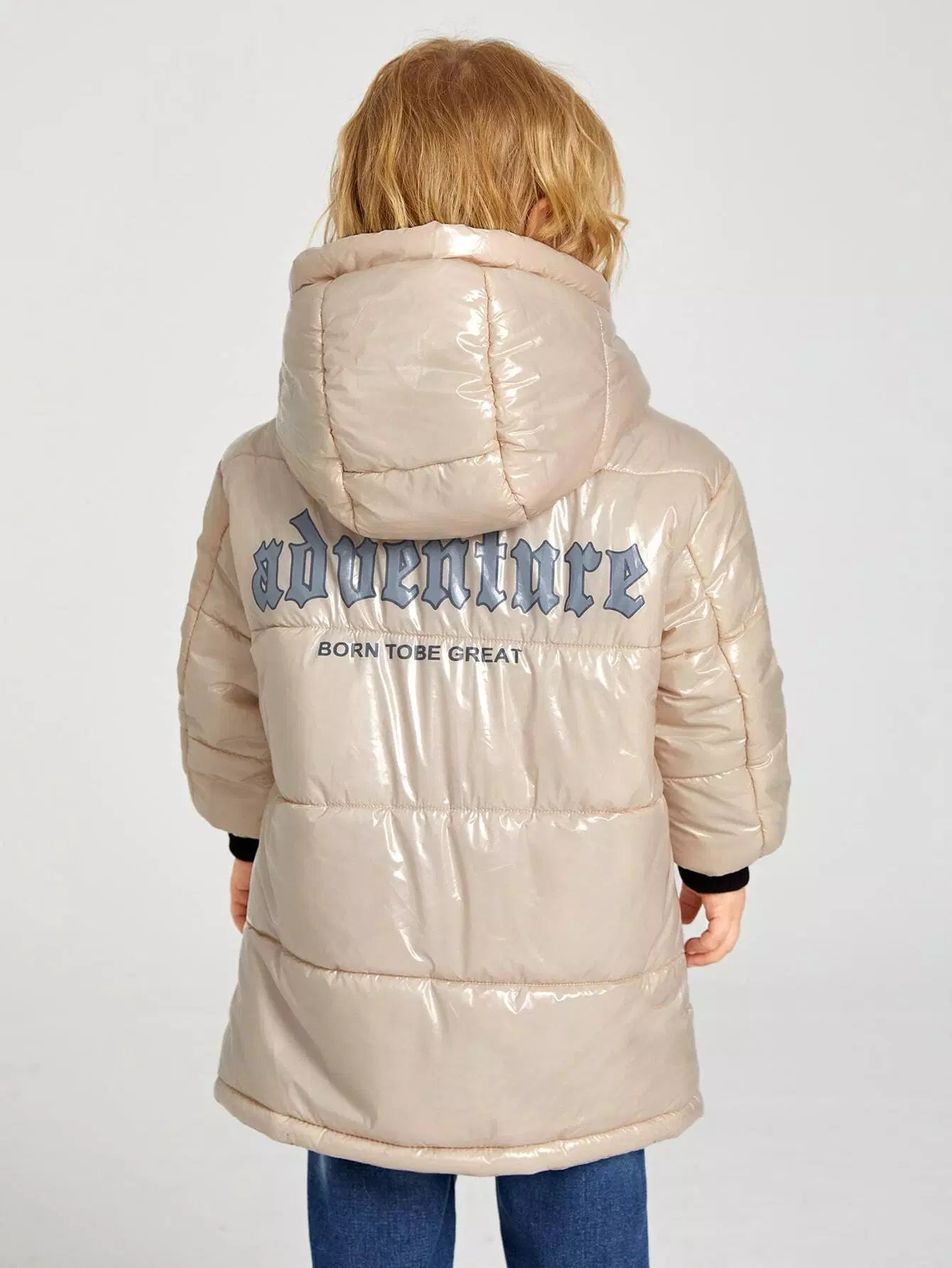 معطف منتفخ بغطاء للرأس ومزين برسومات وتفاصيل مرقعة للأطفال الصغار