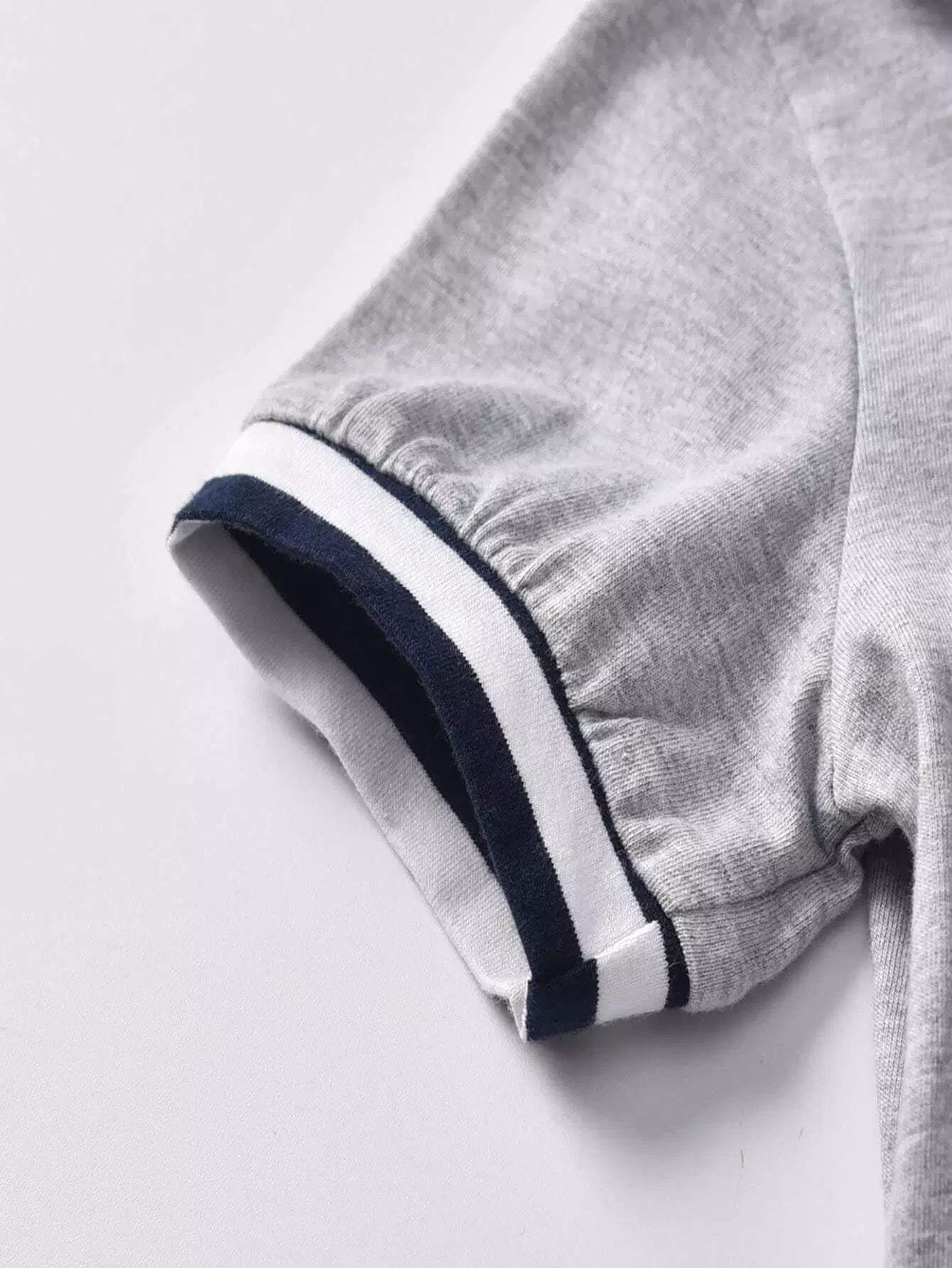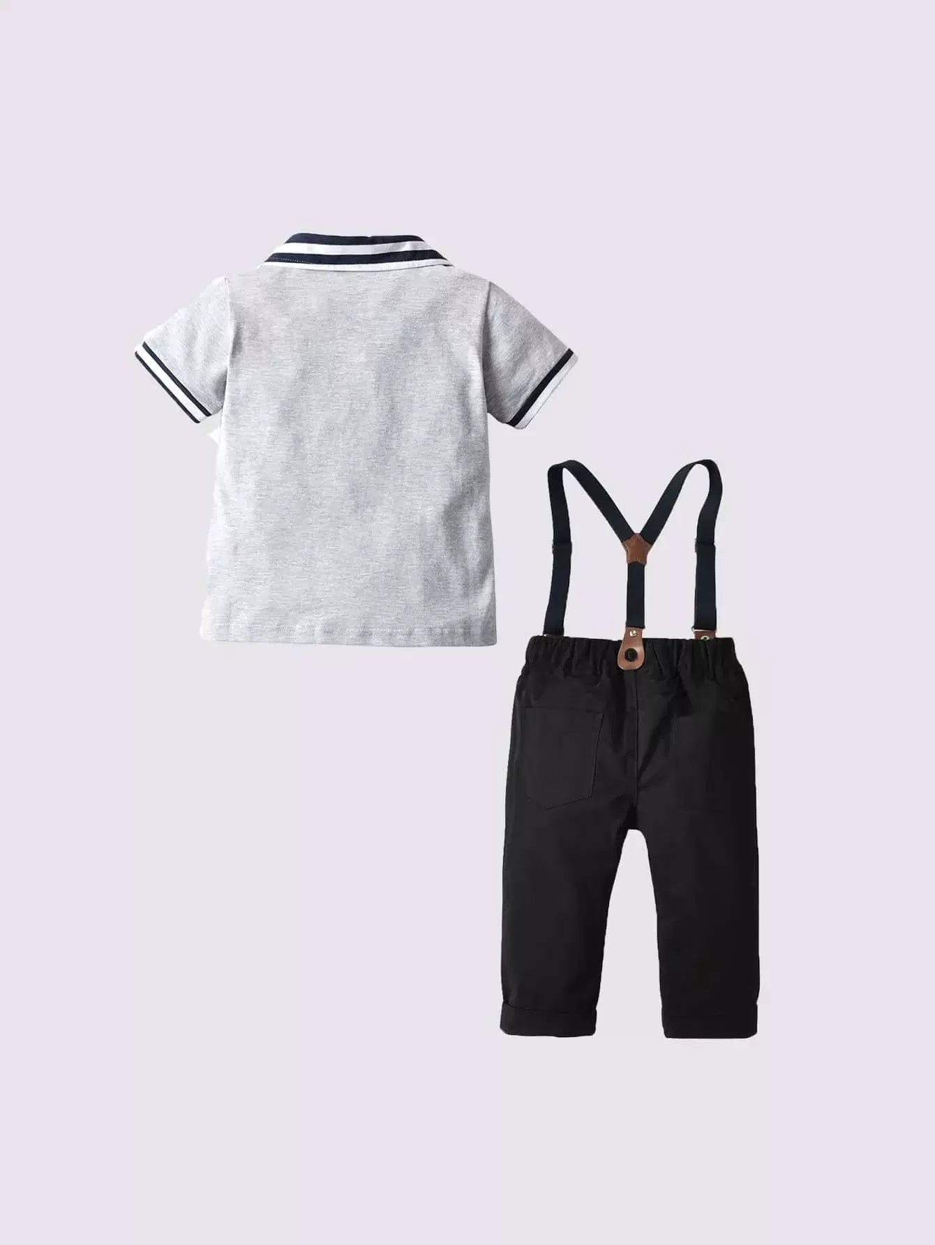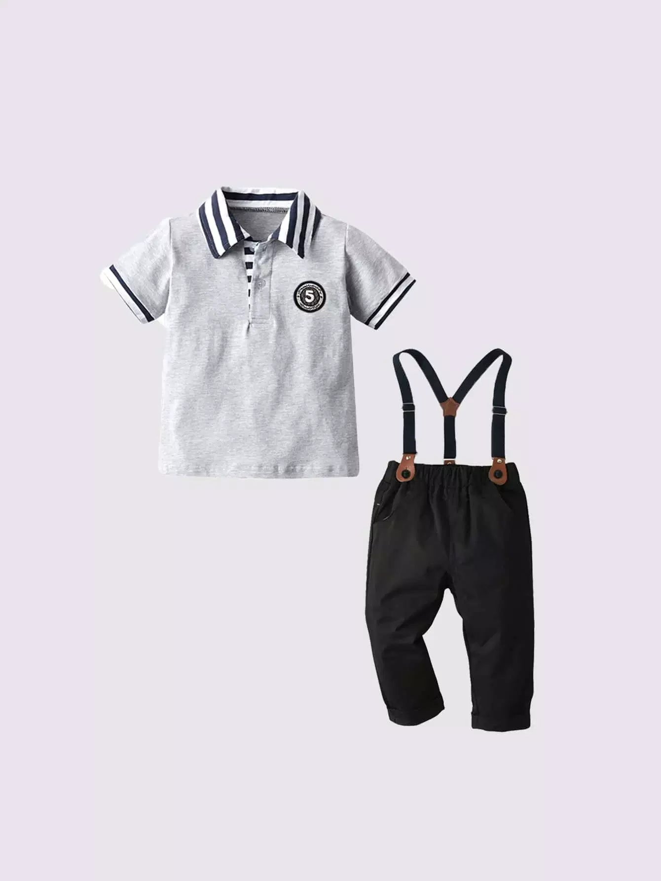 أطفال صغار طقم تي شيرت بولو برسومات حروف للأولاد وبنطال بحمالات