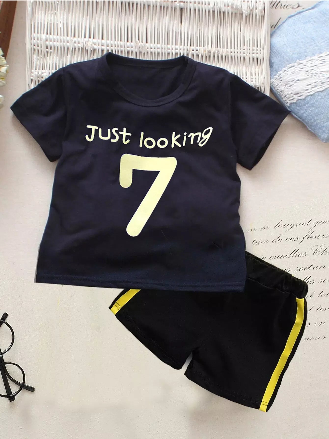 تيشيرت وشورت جرافيك للأطفال الصغار رقم وشعار