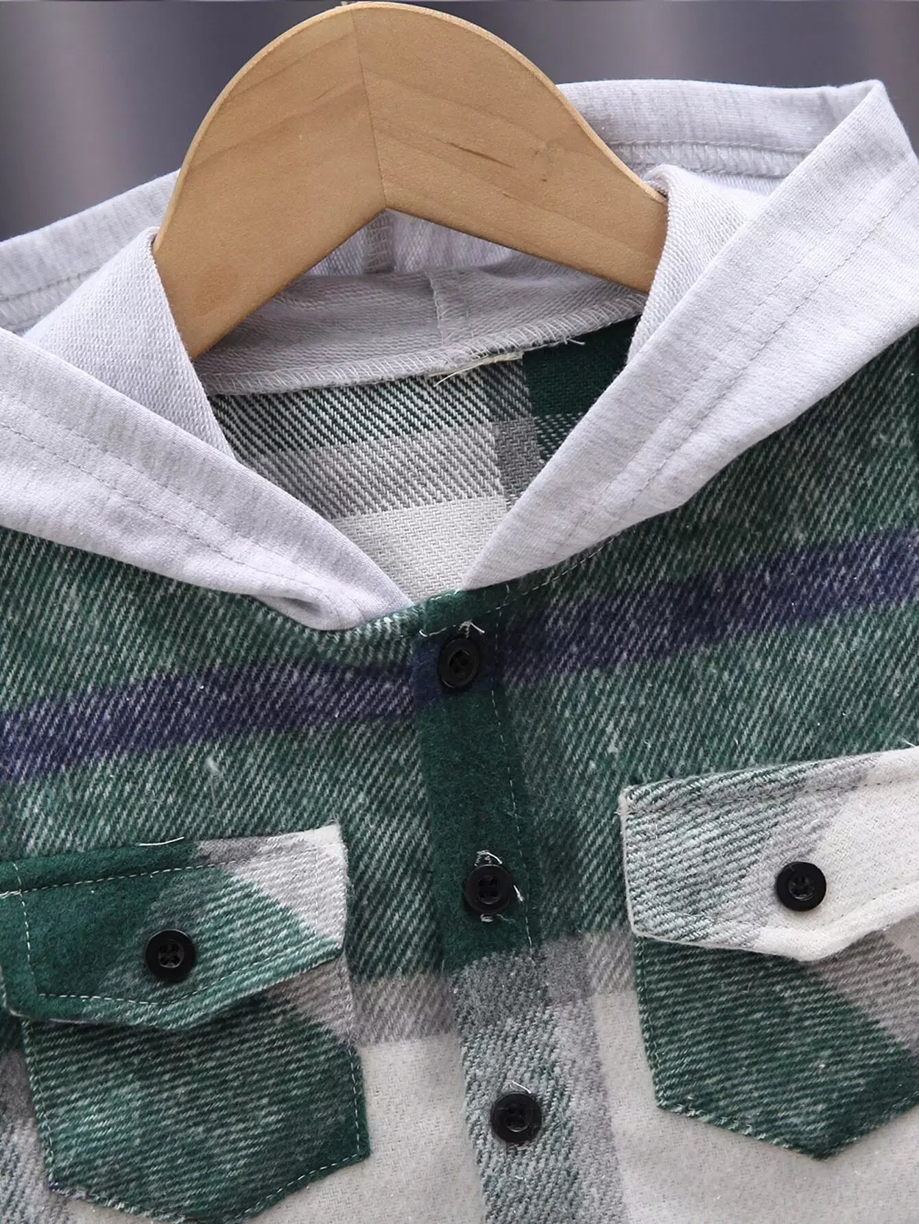 معطف بقبعة بغطاء رأس منقوش بغطاء رأس منقوش للأولاد الصغار