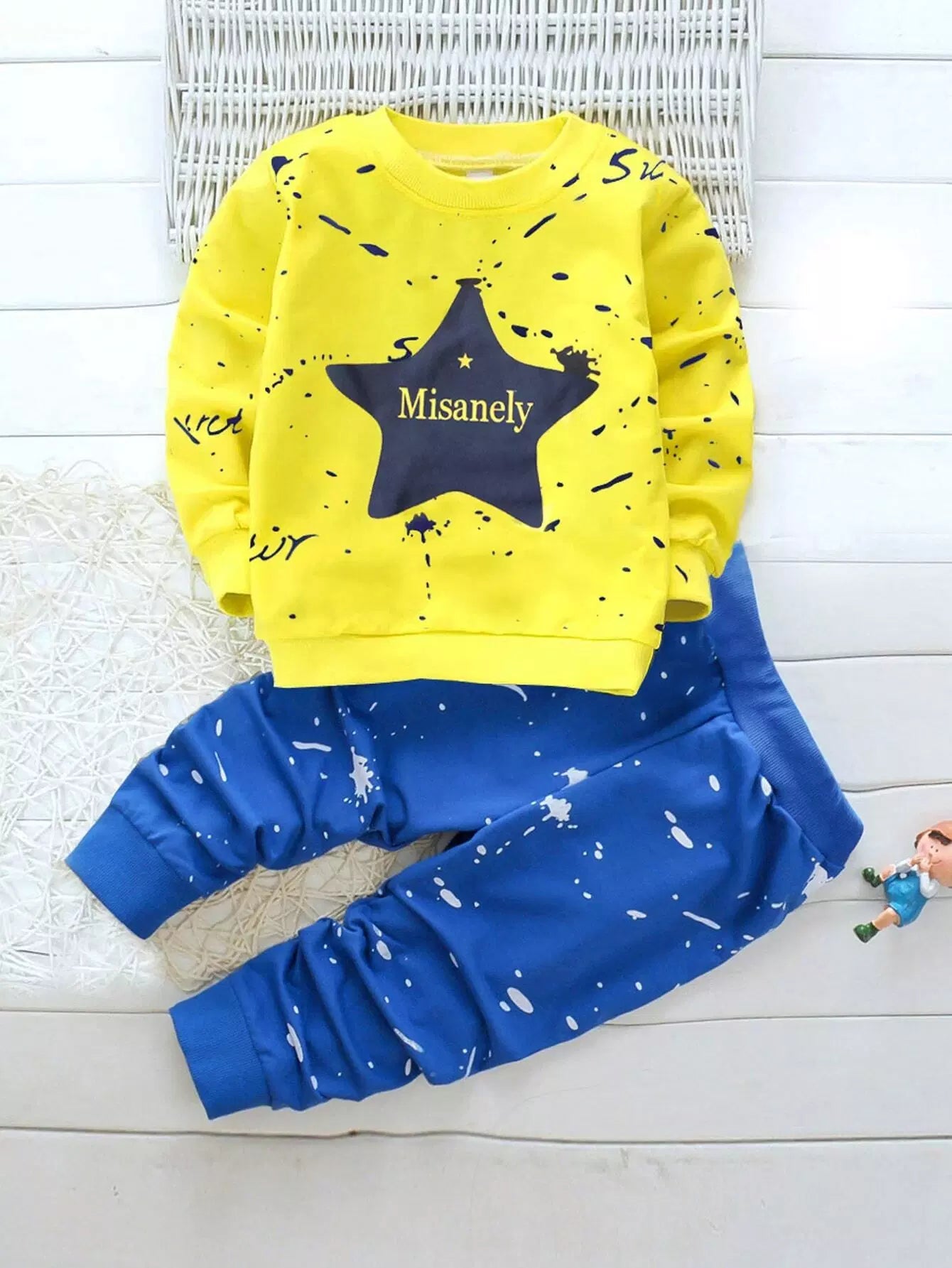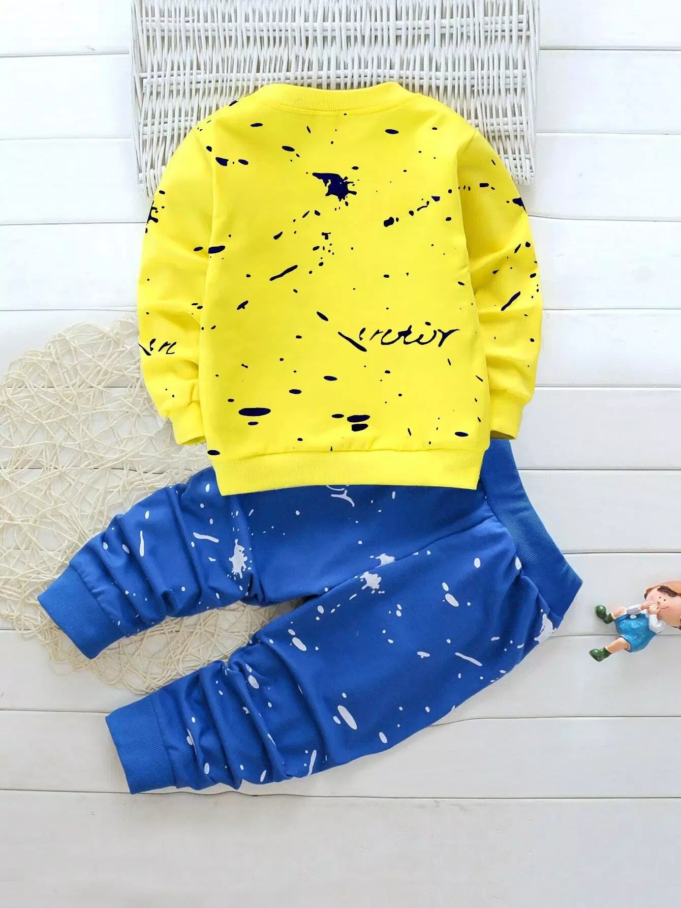 سويت شيرت بنقشة طلاء عشوائية للأولاد الصغار مع بنطال رياضي