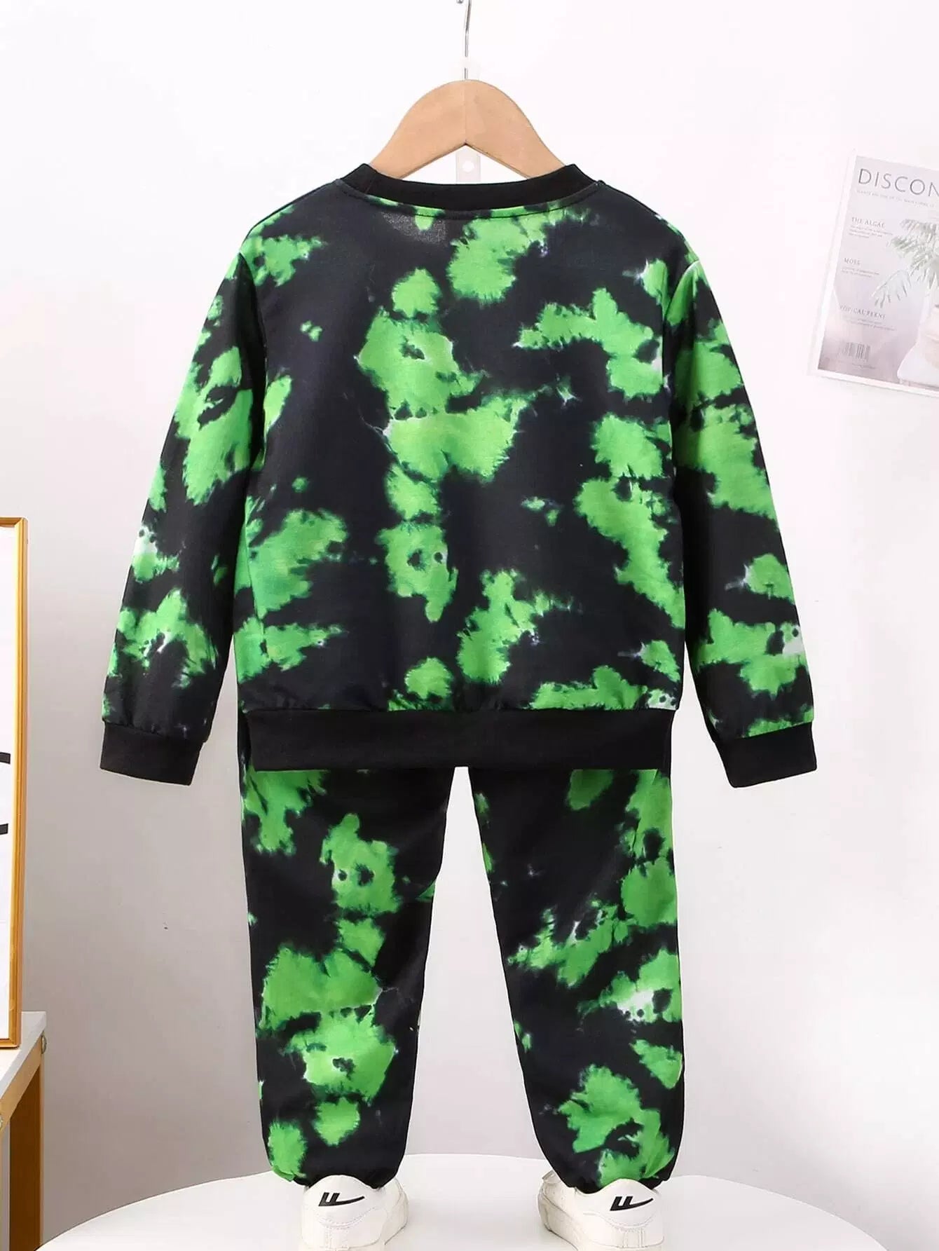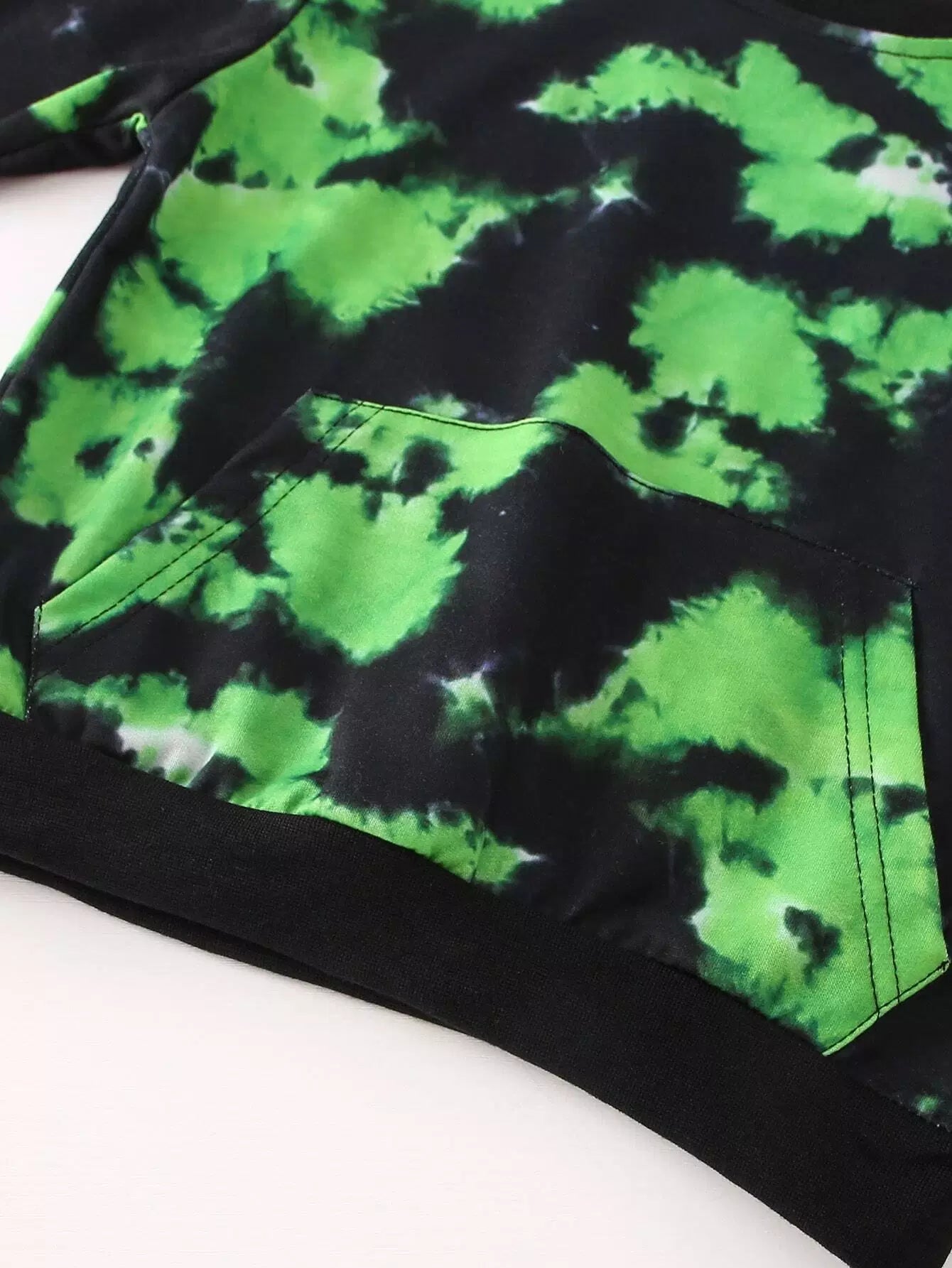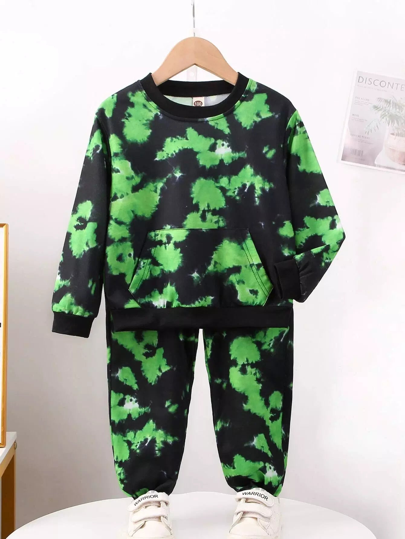 سويت شيرت بجيب كنغرو مصبوغ بربطة عنق للأولاد الصغار مع بنطال رياضي