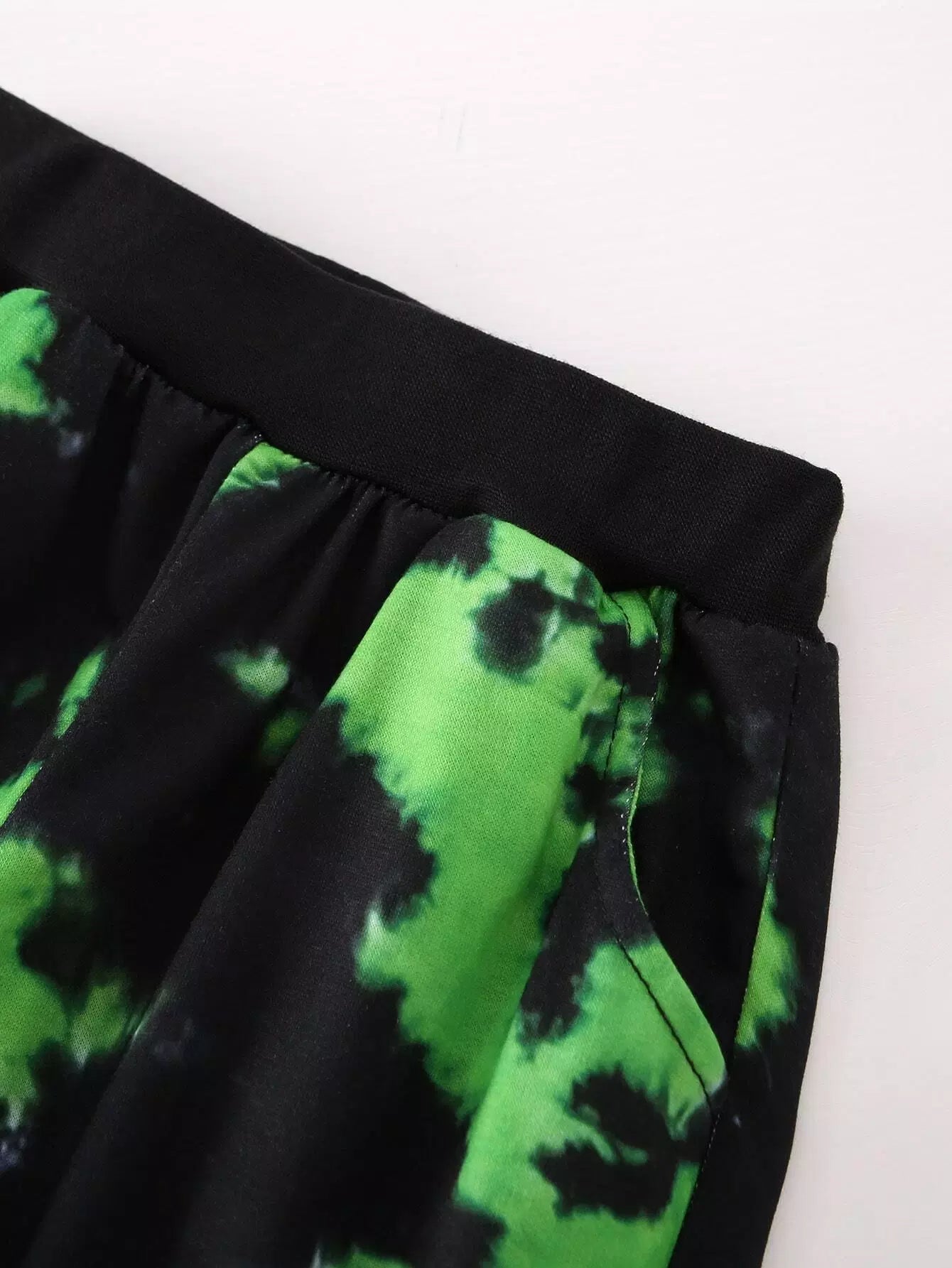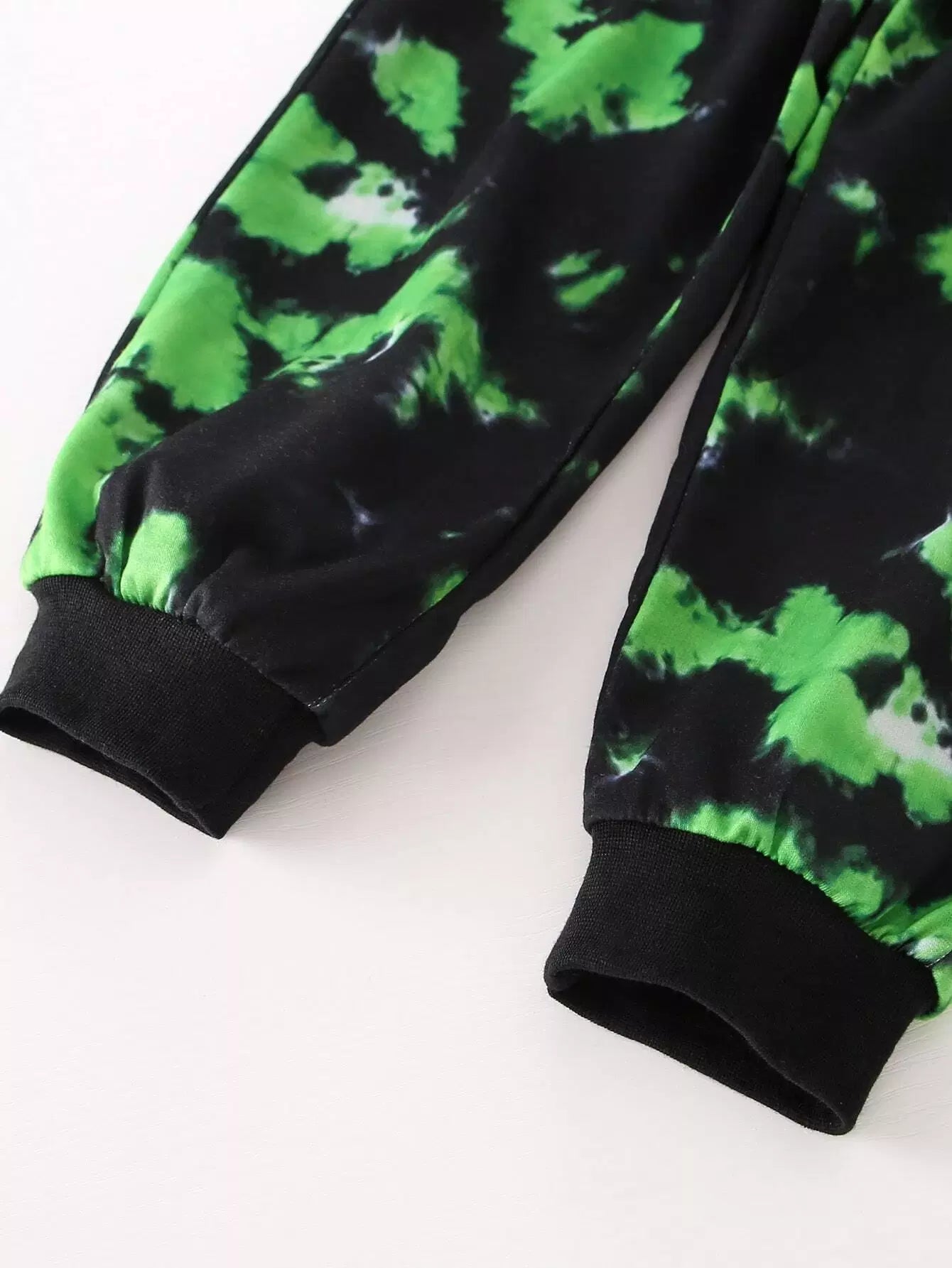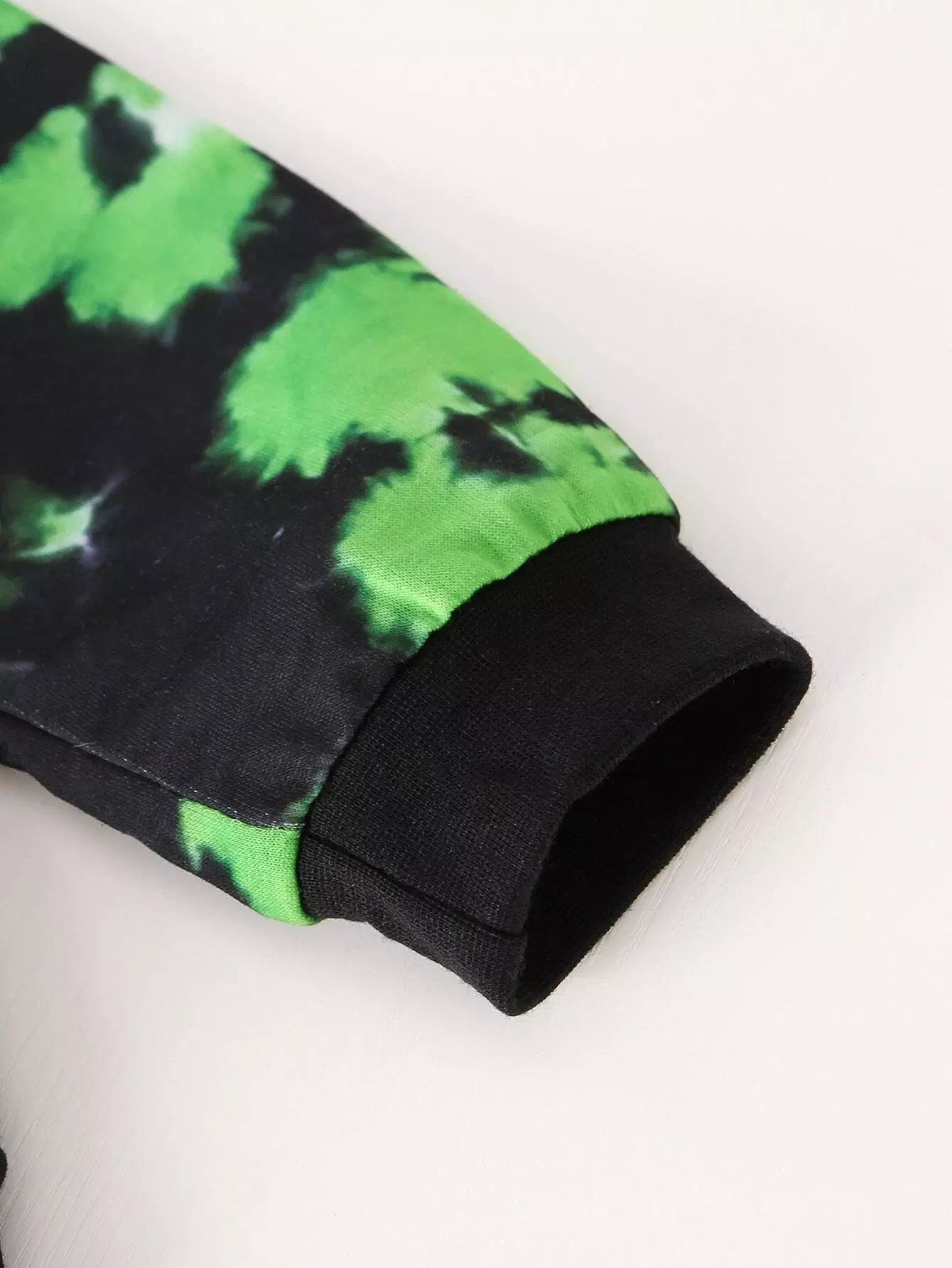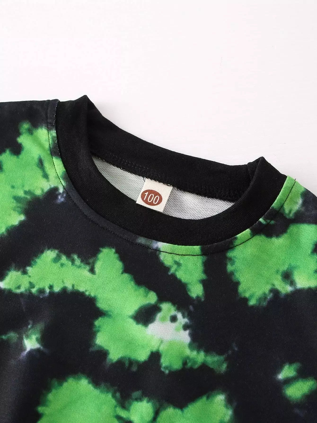 سويت شيرت بجيب كنغرو مصبوغ بربطة عنق للأولاد الصغار مع بنطال رياضي