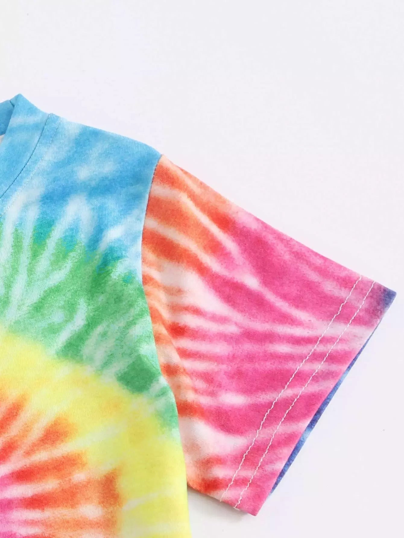 تي شيرت مصبوغ بربطة عنق للأولاد الصغار