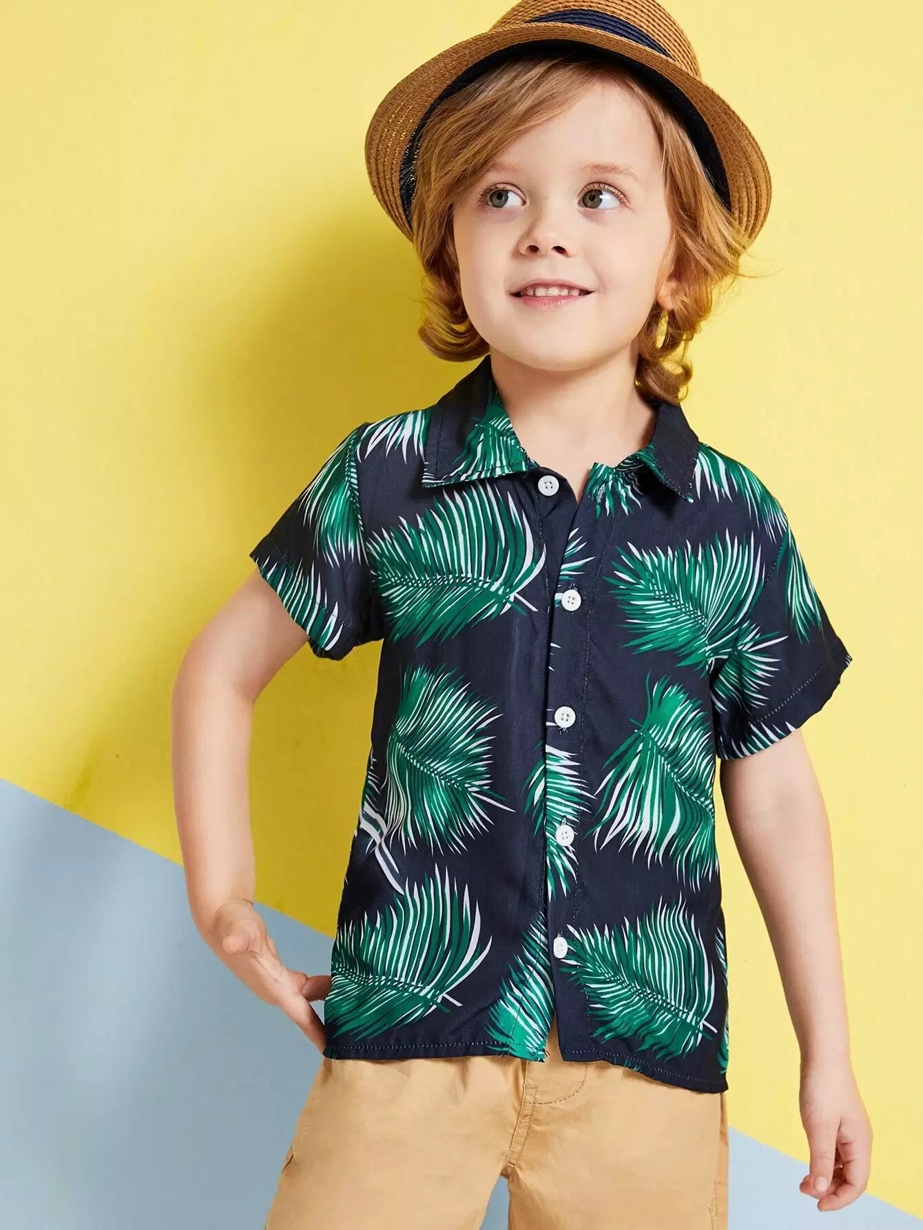 قميص بطبعة استوائية للأولاد الصغار